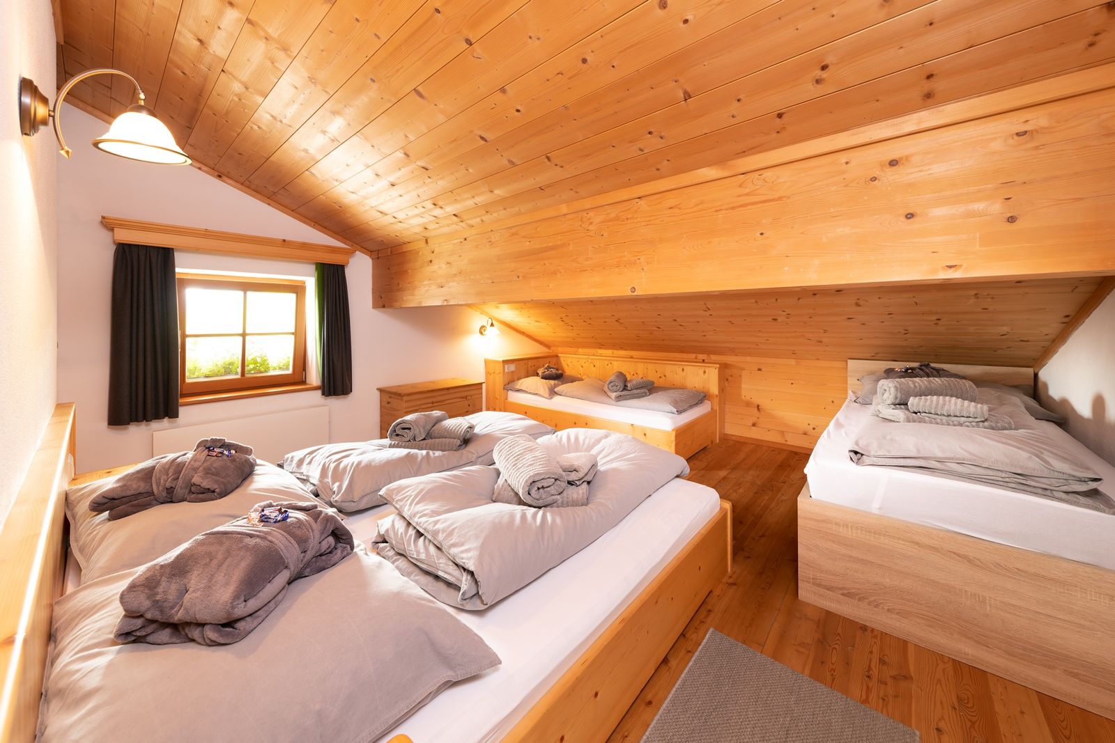 - 2 Schlafzimmer mit jeweils 1 Doppelbett und 2 Einzelbetten (Vierbettzimmer)