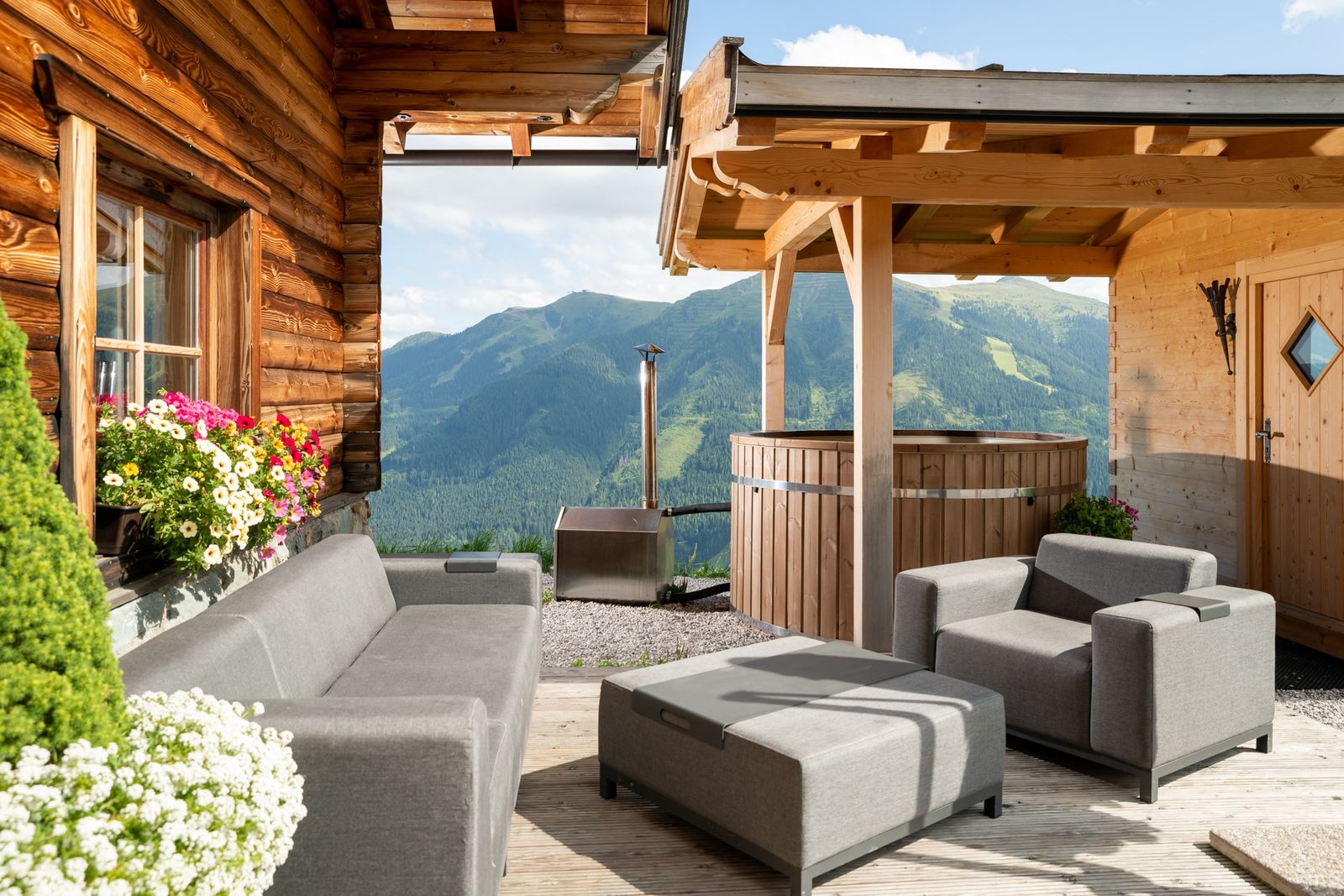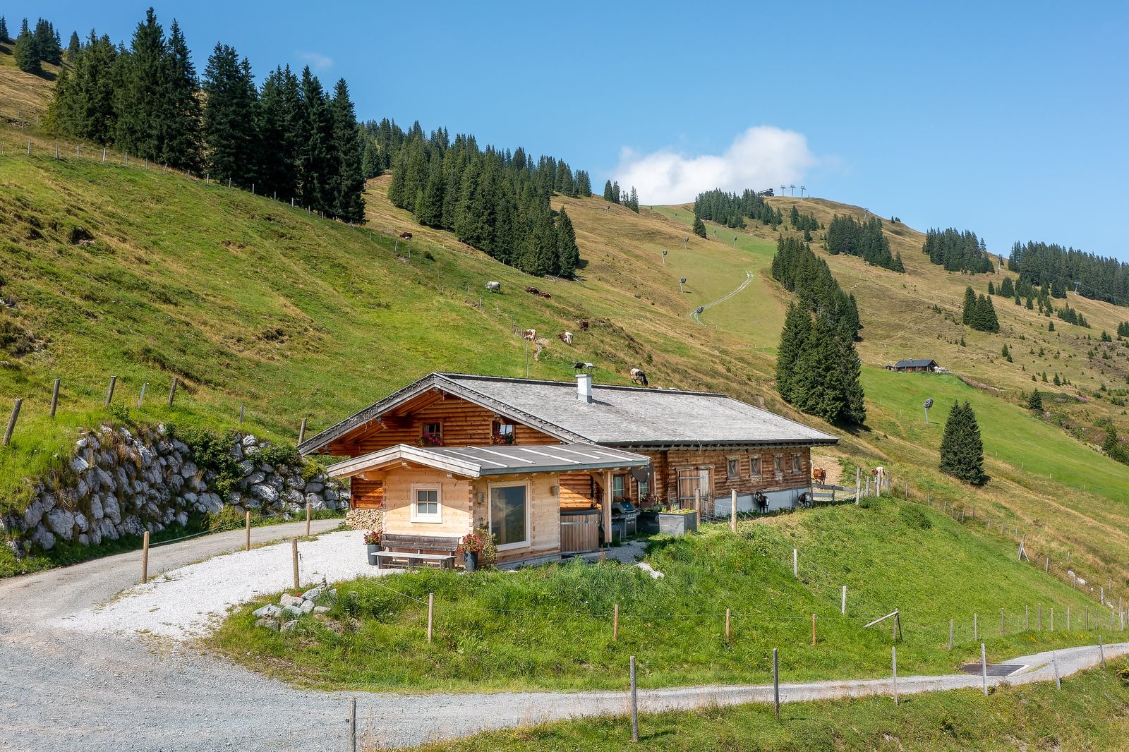 Hochwertig ausgestattet und mit charmantem Hüttenflair bietet die Hasenaualm viel Platz und lässt Sie den Alltag vergessen. Diese Hütte lässt keine Wünsche offen. In ausgezeichneter Lage genießen Sie im Winter das Privileg, direkt ab der Haustüre ins Pistenvergnügen von Saalbach-Hinterglemm zu starten.