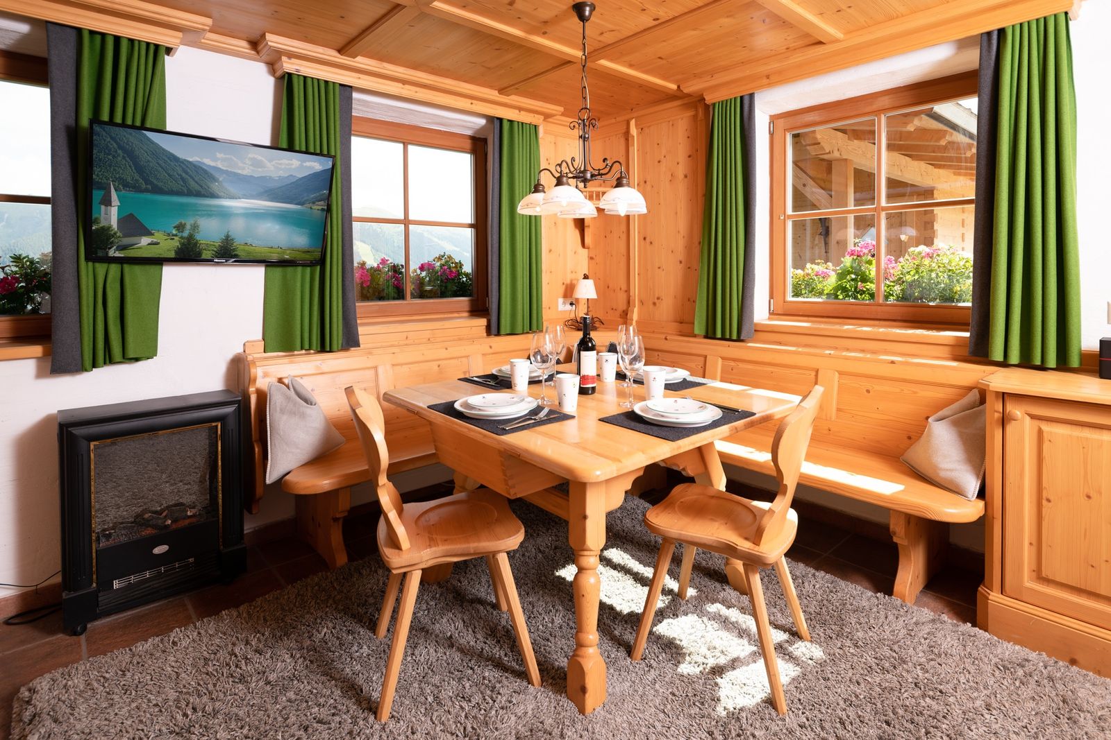 - Die Hütte wird mit Holz und elektrischer Heizung beheizt