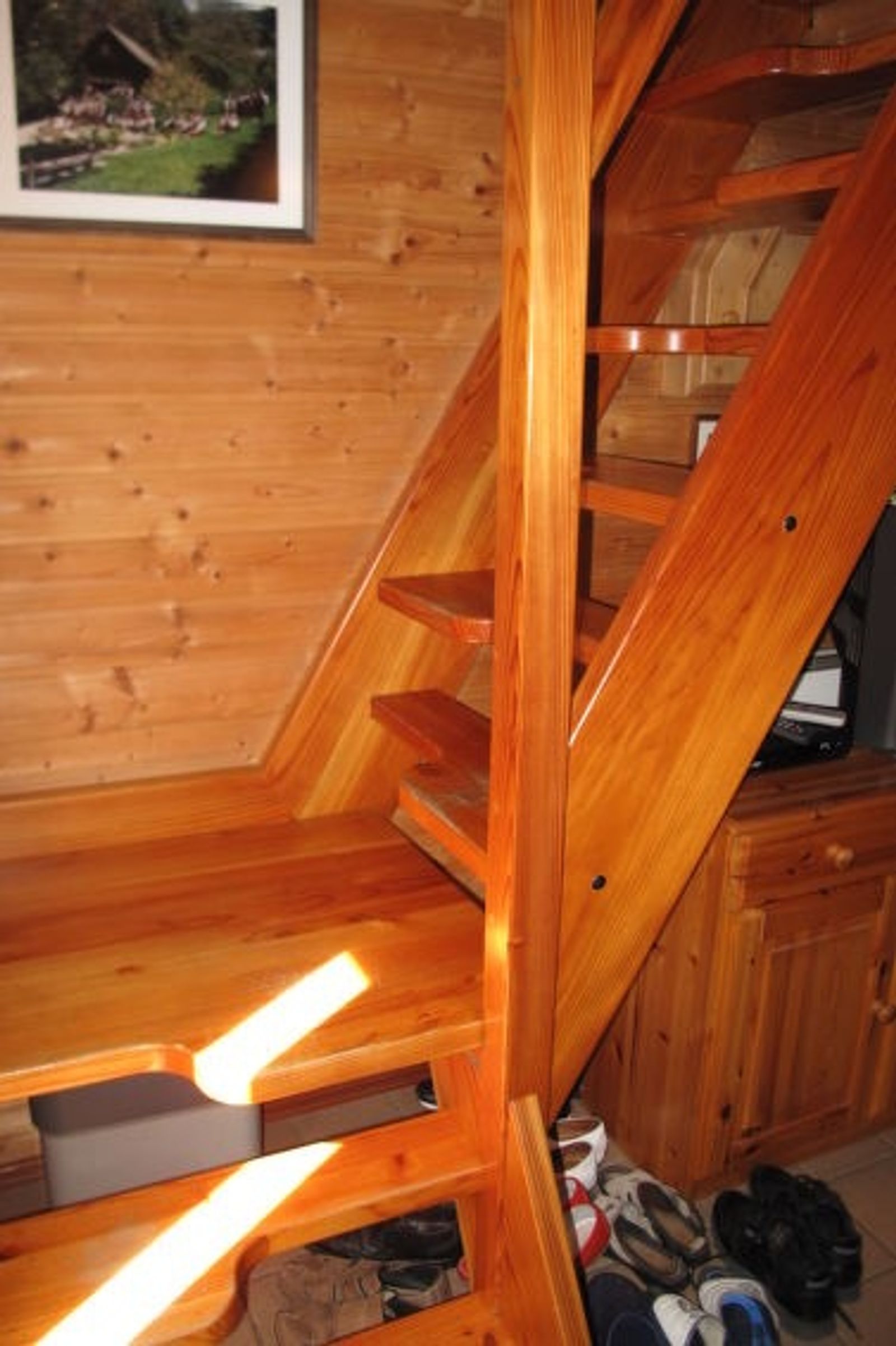 "Kunzhof", 2-Zimmer-Haus 64 m2 auf 2 Stockwerken. Gemütlich und mit viel Holz eingerichtet: Wohn-/Esszimmer mit Esstisch, Sat-TV und Kachelofen. Offene Küche (3 Kochplatten, Backofen, Toaster, Wasserkocher, Mikrowelle, elektrische Kaffeemaschine). Dusche/WC. E-Heizung. Obergeschoss: (steile Treppe) offenes Durchgangszimmer mit 1 Doppelbett. 1 Doppelzimmer. Holzdielenboden. Gartensitzplatz. Zur Verfügung: Kinderhochstuhl, Babybett. Internet (WLAN, gratis). Bitte beachten: Nichtraucher-Unterkunft. Maximal 1 Haustier/Hund erlaubt. Rauchmelder. Vom Wohnraum steile Holztreppe in die 1. Etage zu Flur mit Doppelbett in Schlafnische, von hier Zugang zu Doppelzimmern.
