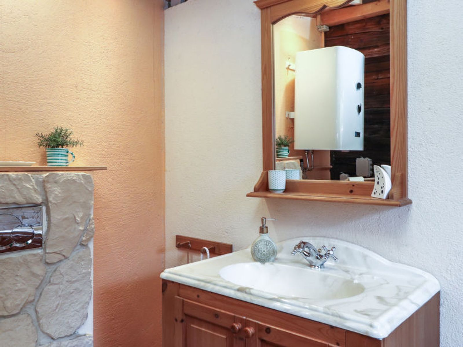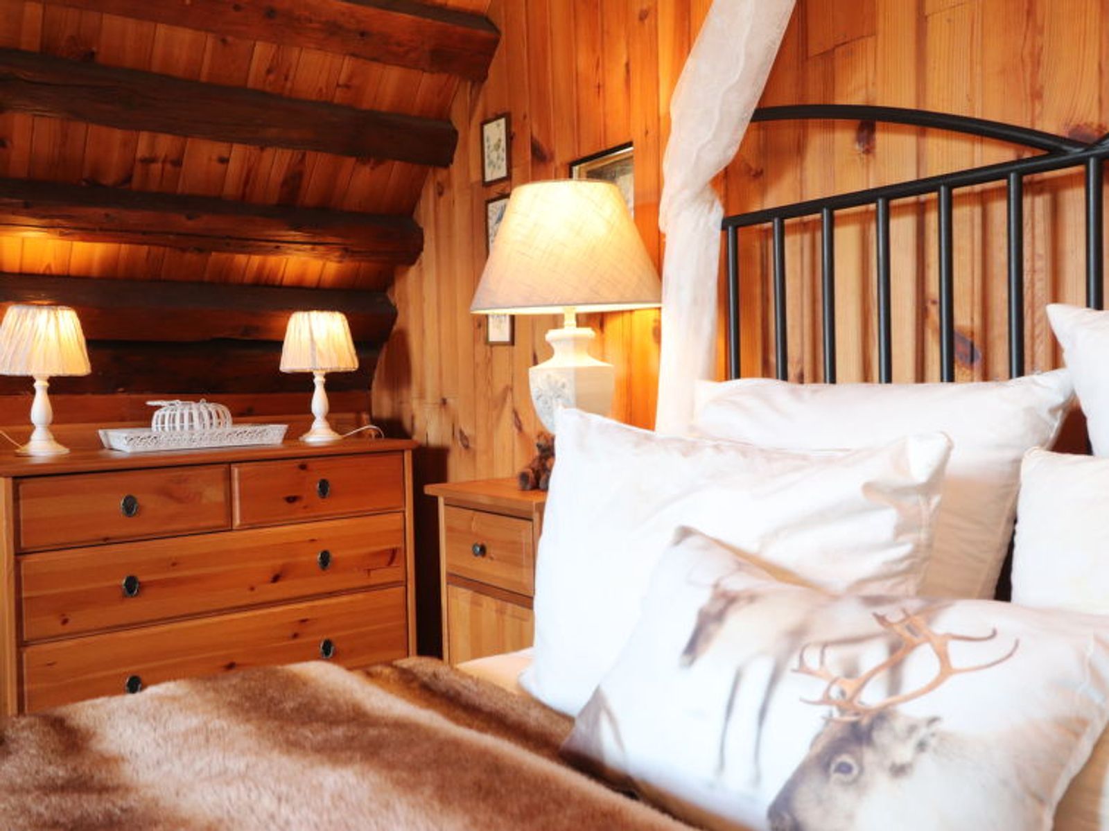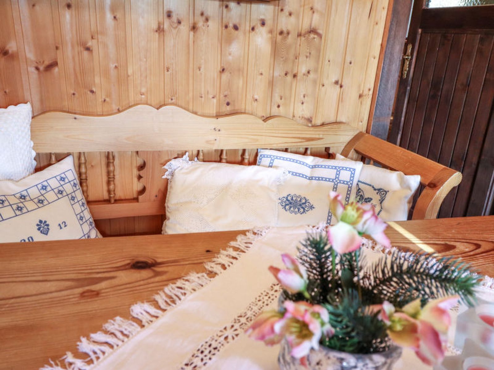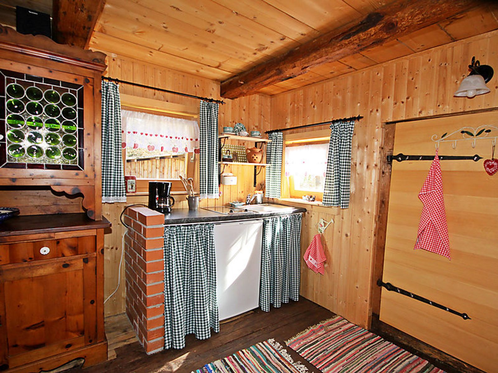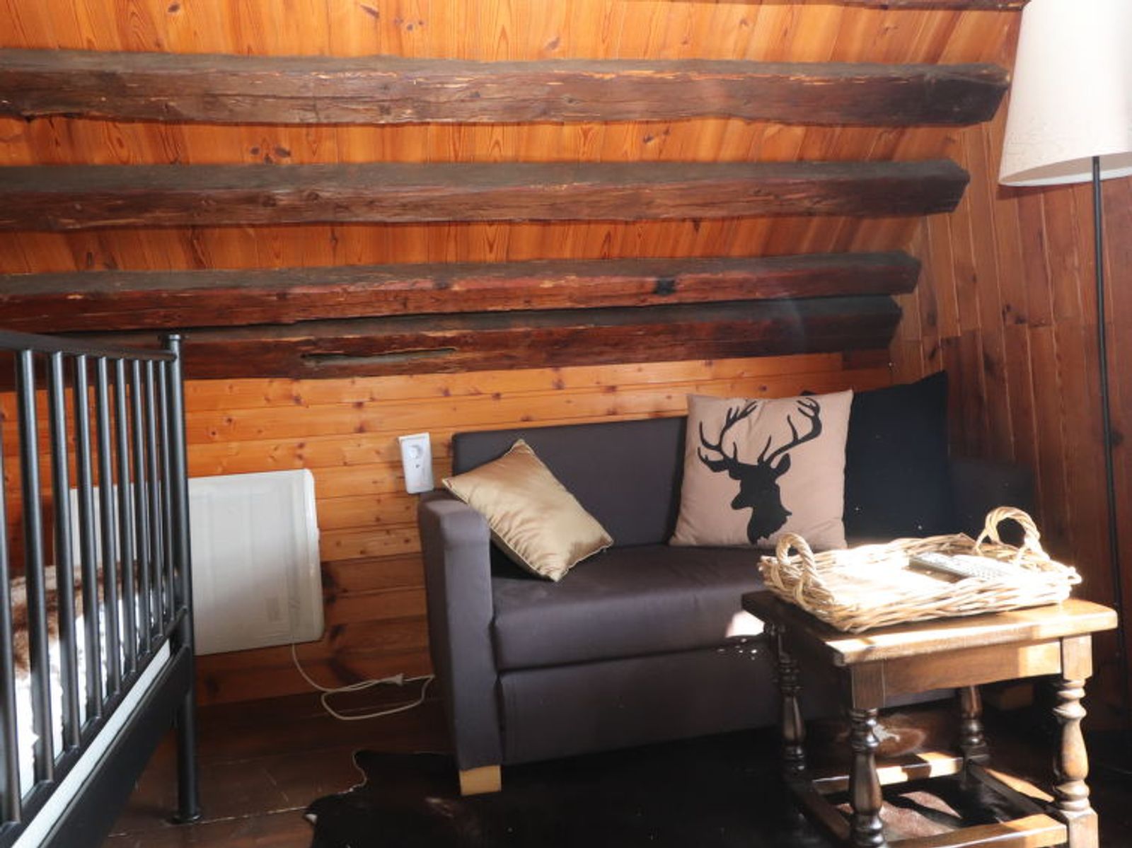 2-Zimmer-Haus 48 m2 auf 2 Stockwerken. Stilvoll und romantisch eingerichtet: Wohn-/Esszimmer mit Essecke, Stereoanlage und E-Heizofen. Ausgang zur Terrasse. Kleine Kochnische (2 Glaskeramikplatten, elektrische Kaffeemaschine). Bad/WC. Obergeschoss: (steile Treppe) 1 abgeschrägtes Zimmer, Deckenhöhe 100 - 330 cm mit 1 franz. Bett (140 cm, Länge 200 cm), Sat-TV. Schöne Sicht auf die Landschaft. Zur Verfügung: Internet (WLAN, gratis). Bitte beachten: für Kleinkinder nicht geeignet. Nichtraucher-Haus. Maximal 1 Haustier/Hund erlaubt. Rauchmelder, Feuerlöscher. Den Schlafraum erreicht man über eine steile Holzstiege, die im Schlafraum mit einer Gittertüre gesichert ist.