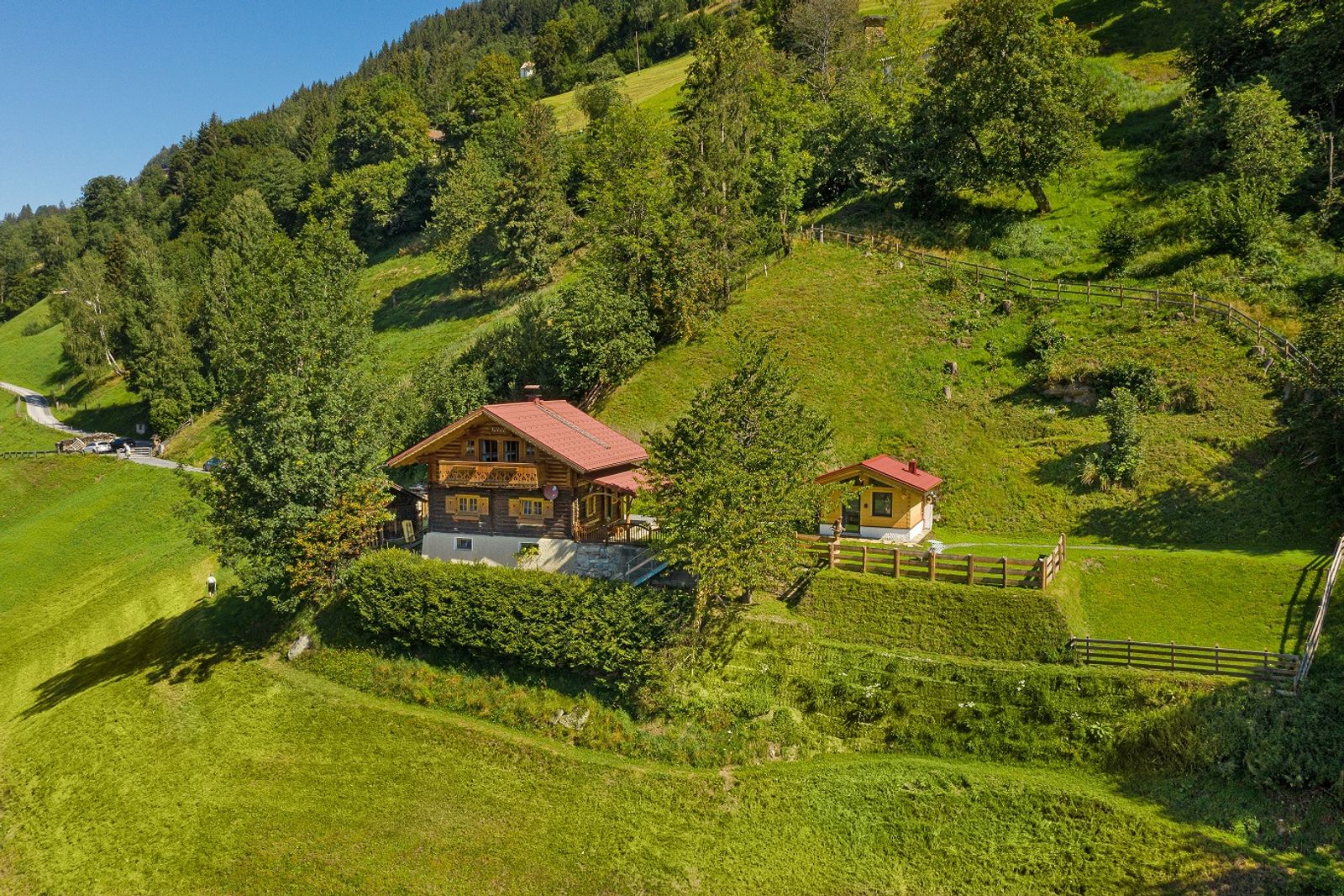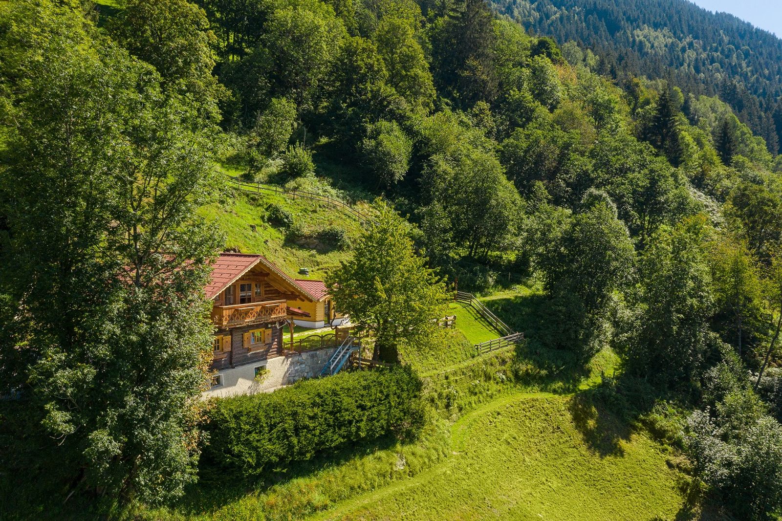 Das Jaga Häusl liegt in Alleinlage an einem sonnigen Berghang nahe Bad Hofgastein im Salzburger Land. Durch die Hanglage bietet die Hütte den Gästen einen traumhaften Ausblick in das Gasteiner Tal. Das viele Naturholz macht das Jaga Häusl zu einer gemütlichen Urlaubshütte. In der angrenzenden Wellnesshütte befindet sich das Badezimmer mit Doppelwaschbecken einer Regendusche und einer neuen Infrarotkabine. Die Ortschaft Bad Hofgastein ist nur fünf Kilometer von der Hütte entfernt. Bad Hofgastein ist ein beliebtes Urlaubsziel und wird gerne von Urlauber besucht. Im Ortskern befindet sich eine Therme und es gibt zahlreiche Geschäfte, Restaurants, Cafés und Supermärkte.