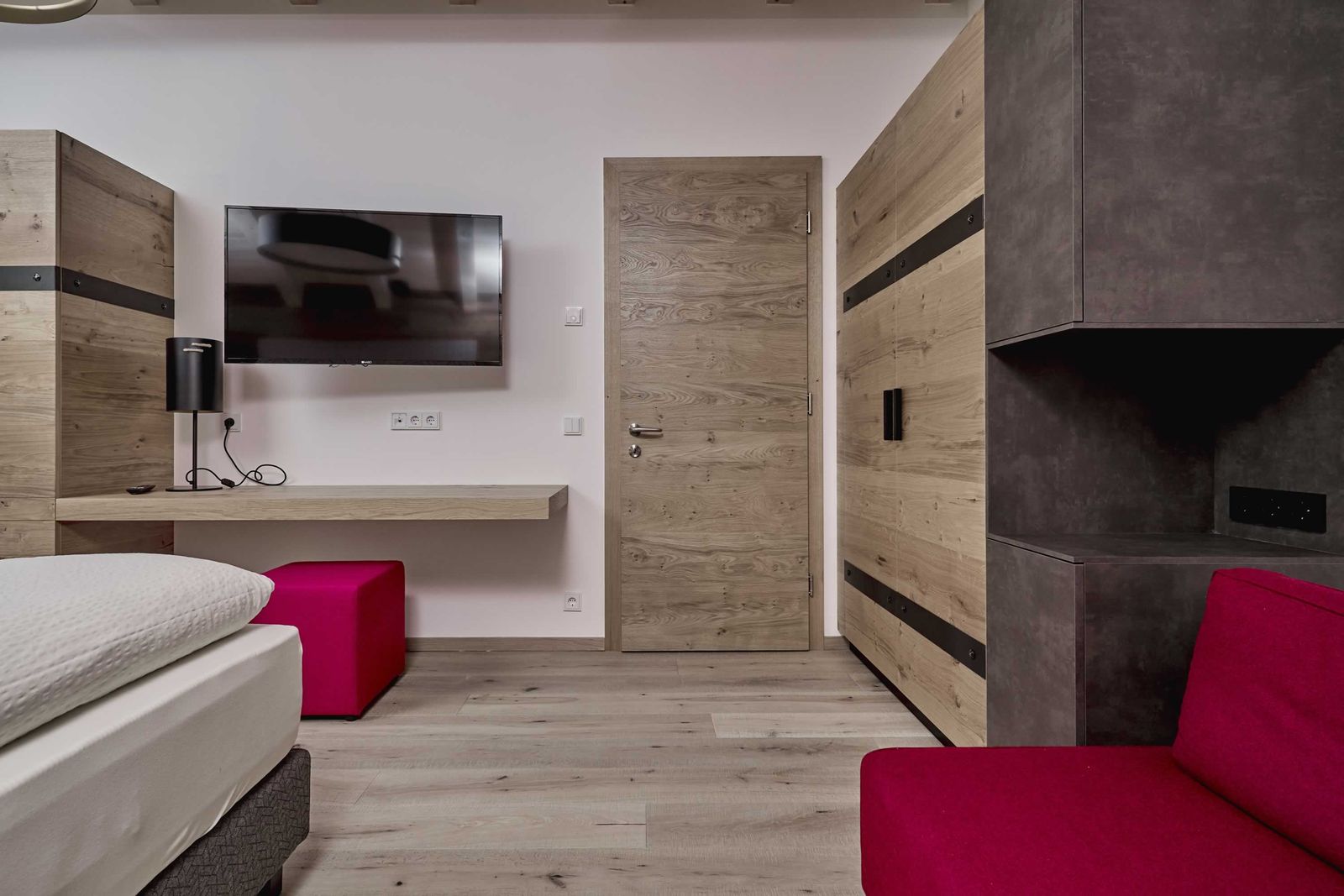 - Doppelbettzimmer mit Boxspringbett und Sofa sowie Flatscreen SAT-TV