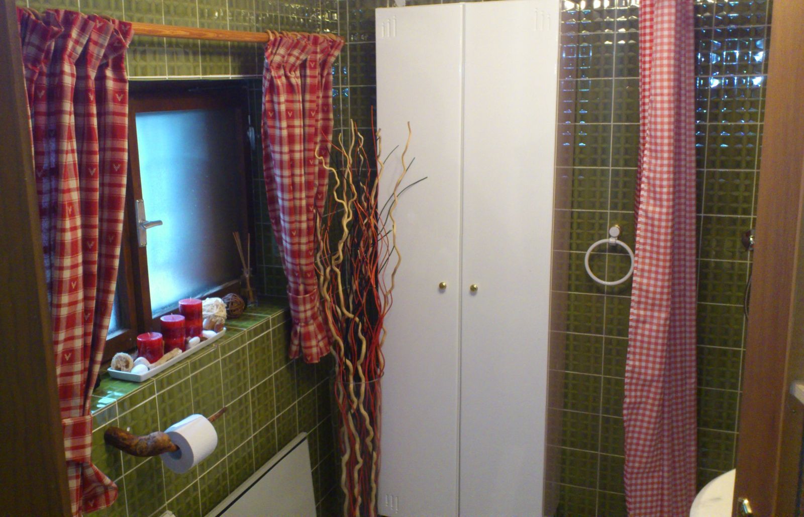 - Holzofen und elektrische Heizung im Badezimmer