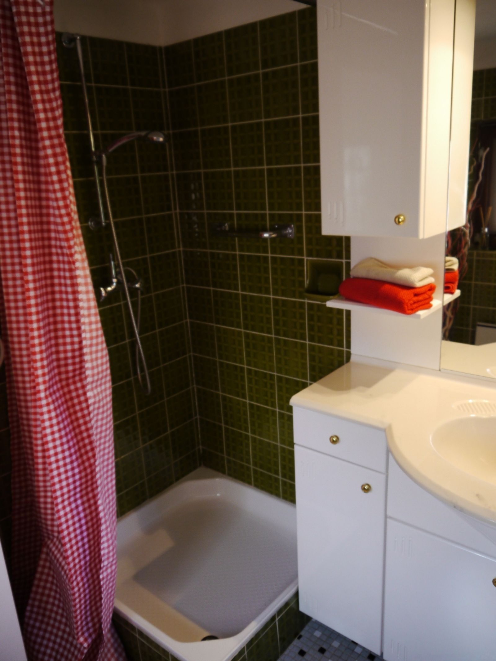 - 1 Badezimmer mit Dusche, Waschbecken und WC