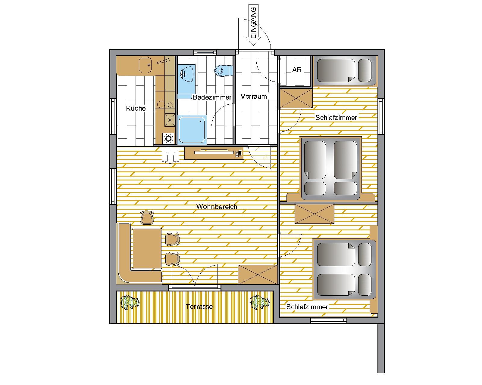- Wohnfläche von 57 m² für 6 Personen