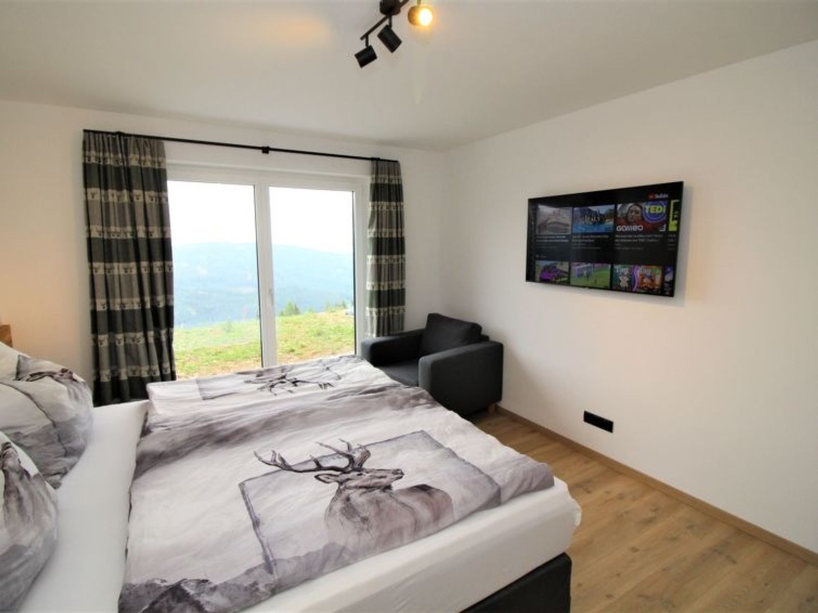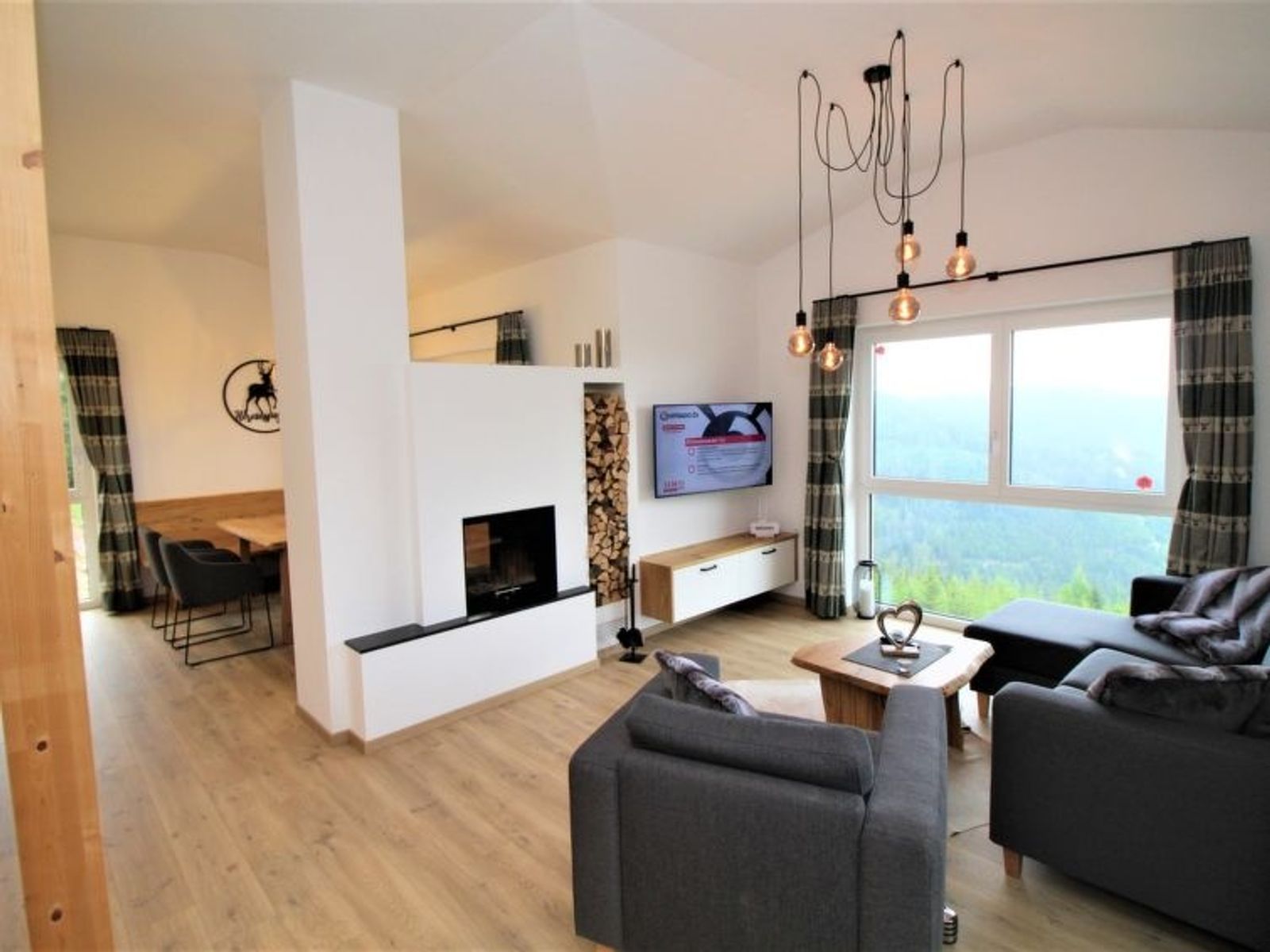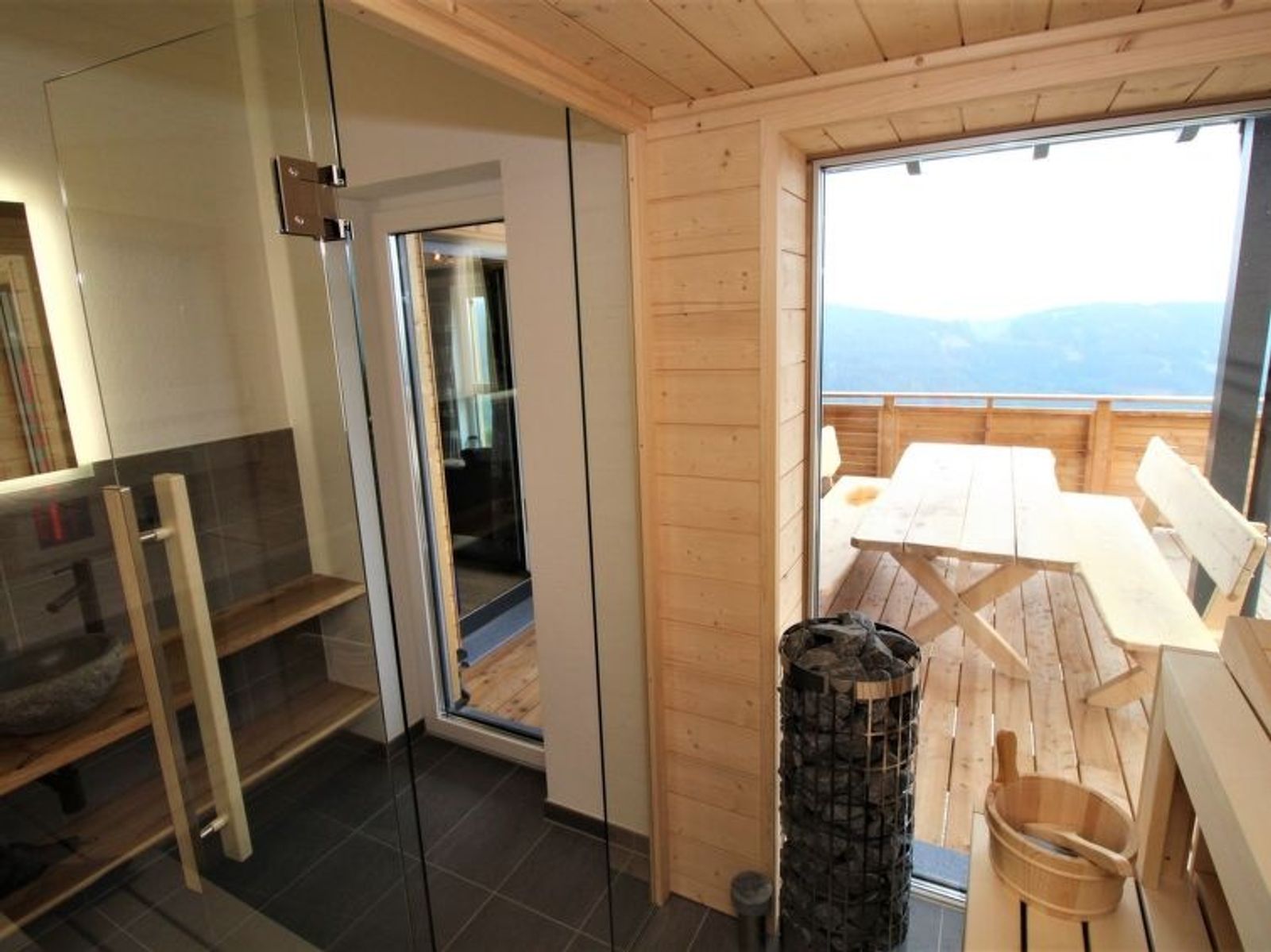4-Zimmer-Chalet 120 m2 auf 2 Stockwerken. Objekt geeignet für 6 Erwachsene. Geräumig, modern und mit viel Holz eingerichtet: Eingang. Wohnzimmer mit offenem Kamin, Sat-TV, Internationale TV-Sender und Flachbildschirm. Ausgang zur Terrasse. Grosses Esszimmer. Grosse, offene Küche (Backofen, 4 Glaskeramikplatten, Toaster, Wasserkocher, elektrische Kaffeemaschine, Kochinsel). Bad/Dusche/WC, Sauna. Unteres Geschoss: 3 Doppelzimmer, jedes Zimmer mit 1 Doppelbett, Kabel-TV, Internationale TV-Sender und Flachbildschirm. Bad oder Dusche/WC, Doppelwaschbecken. Grosse Terrasse 20 m2. Terrassenmöbel. Herrliche Fernsicht auf die Berge. Zur Verfügung: Waschmaschine, Wäschetrockner, Sauna, Bügeleisen, Kinderhochstuhl, Babybett, Holz (gratis). Internet (Wireless LAN, gratis). Parkplatz (6 Autos). E-Ladestation. Bitte beachten: Rauchmelder, Feuerlöscher. Separater Gasgrill im Außenbereich. Finnische Trockensauna mit herrlicher Panoramasicht. Nicht inkludiert: Aufgussöle/Düfte.