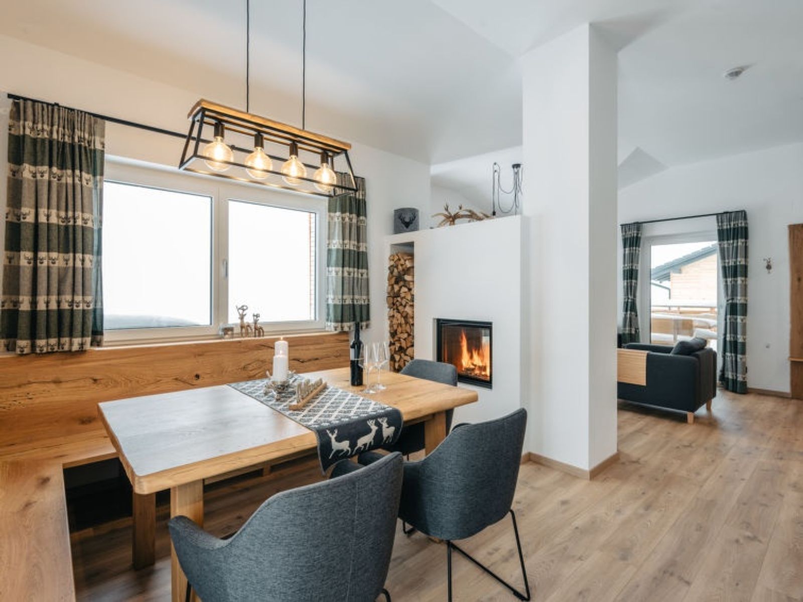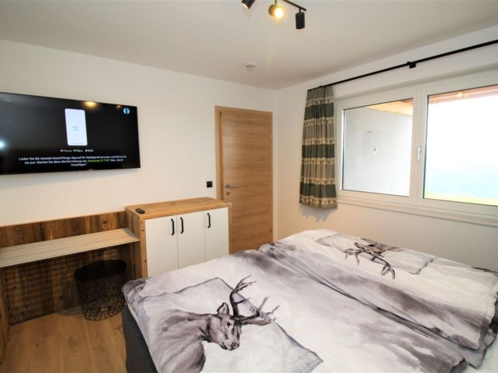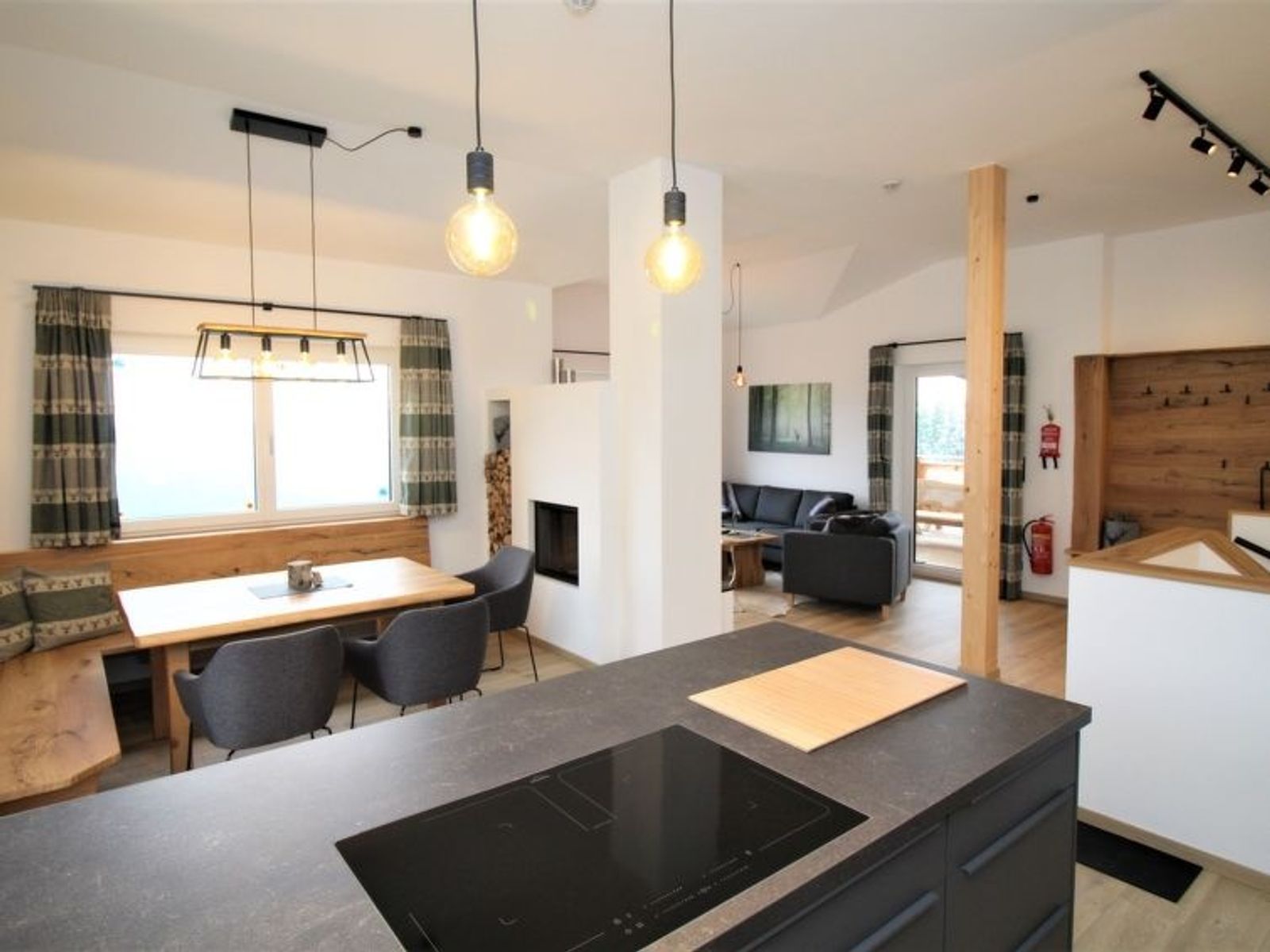 4-Zimmer-Chalet 120 m2 auf 2 Stockwerken. Objekt geeignet für 6 Erwachsene. Geräumig, modern und mit viel Holz eingerichtet: Eingang. Wohnzimmer mit offenem Kamin, Sat-TV, Internationale TV-Sender und Flachbildschirm. Ausgang zur Terrasse. Grosses Esszimmer. Grosse, offene Küche (Backofen, 4 Glaskeramikplatten, Toaster, Wasserkocher, elektrische Kaffeemaschine, Kochinsel). Bad/Dusche/WC, Sauna. Unteres Geschoss: 3 Doppelzimmer, jedes Zimmer mit 1 Doppelbett, Kabel-TV, Internationale TV-Sender und Flachbildschirm. Bad oder Dusche/WC, Doppelwaschbecken. Grosse Terrasse 20 m2. Terrassenmöbel. Herrliche Fernsicht auf die Berge. Zur Verfügung: Waschmaschine, Wäschetrockner, Sauna, Bügeleisen, Kinderhochstuhl, Babybett, Holz (gratis). Internet (Wireless LAN, gratis). Parkplatz (6 Autos). E-Ladestation. Bitte beachten: Rauchmelder, Feuerlöscher. Separater Gasgrill im Außenbereich. Finnische Trockensauna mit herrlicher Panoramasicht. Nicht inkludiert: Aufgussöle/Düfte.