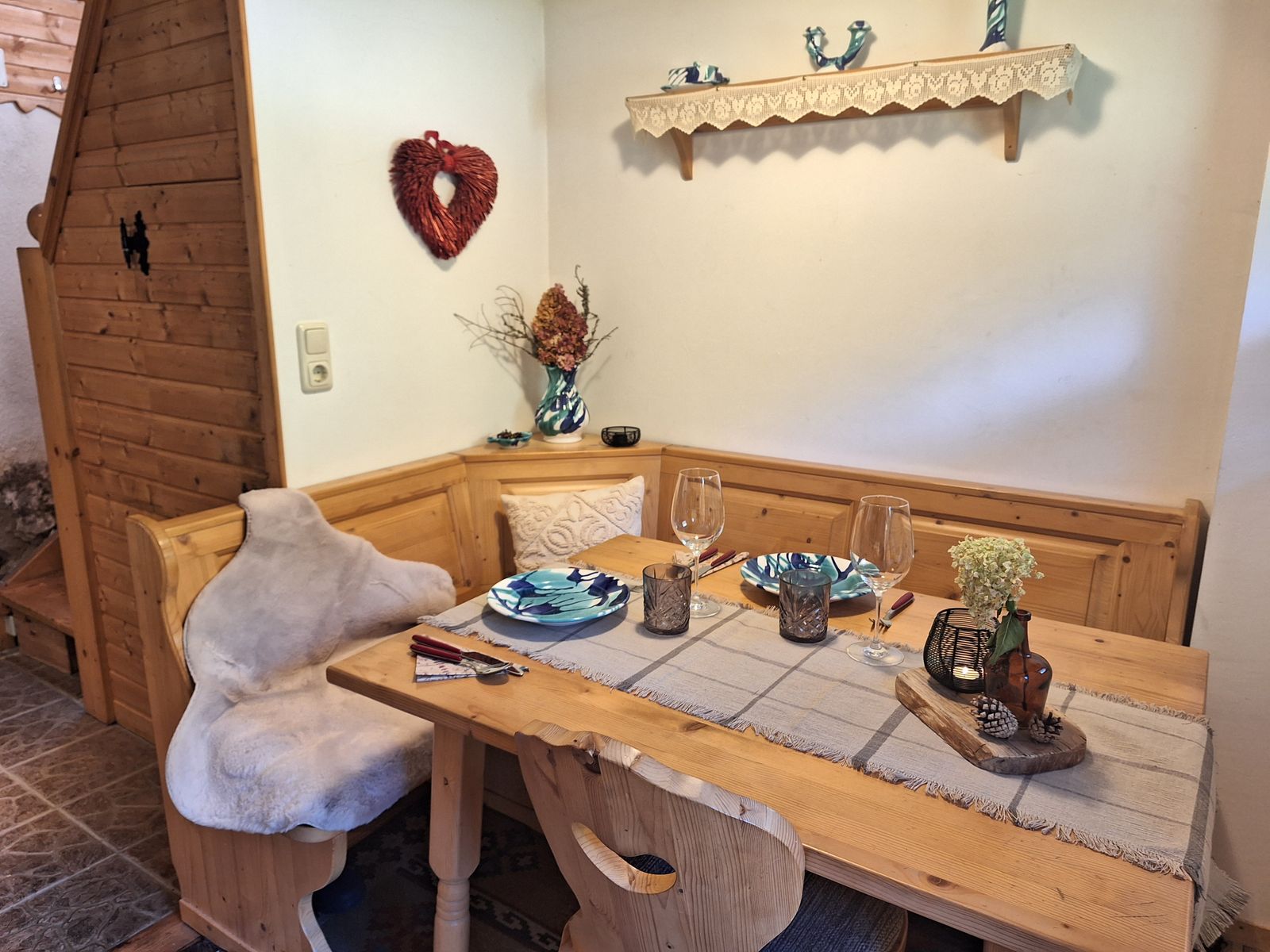 Fließendes Wasser z.B. zum Kochen kann im OG oder beim Brunnen vor der Hütte geholt werden.