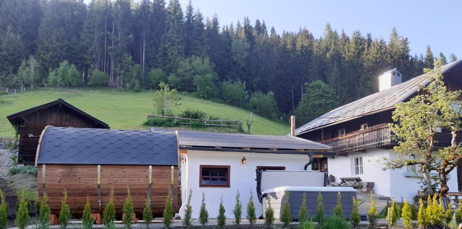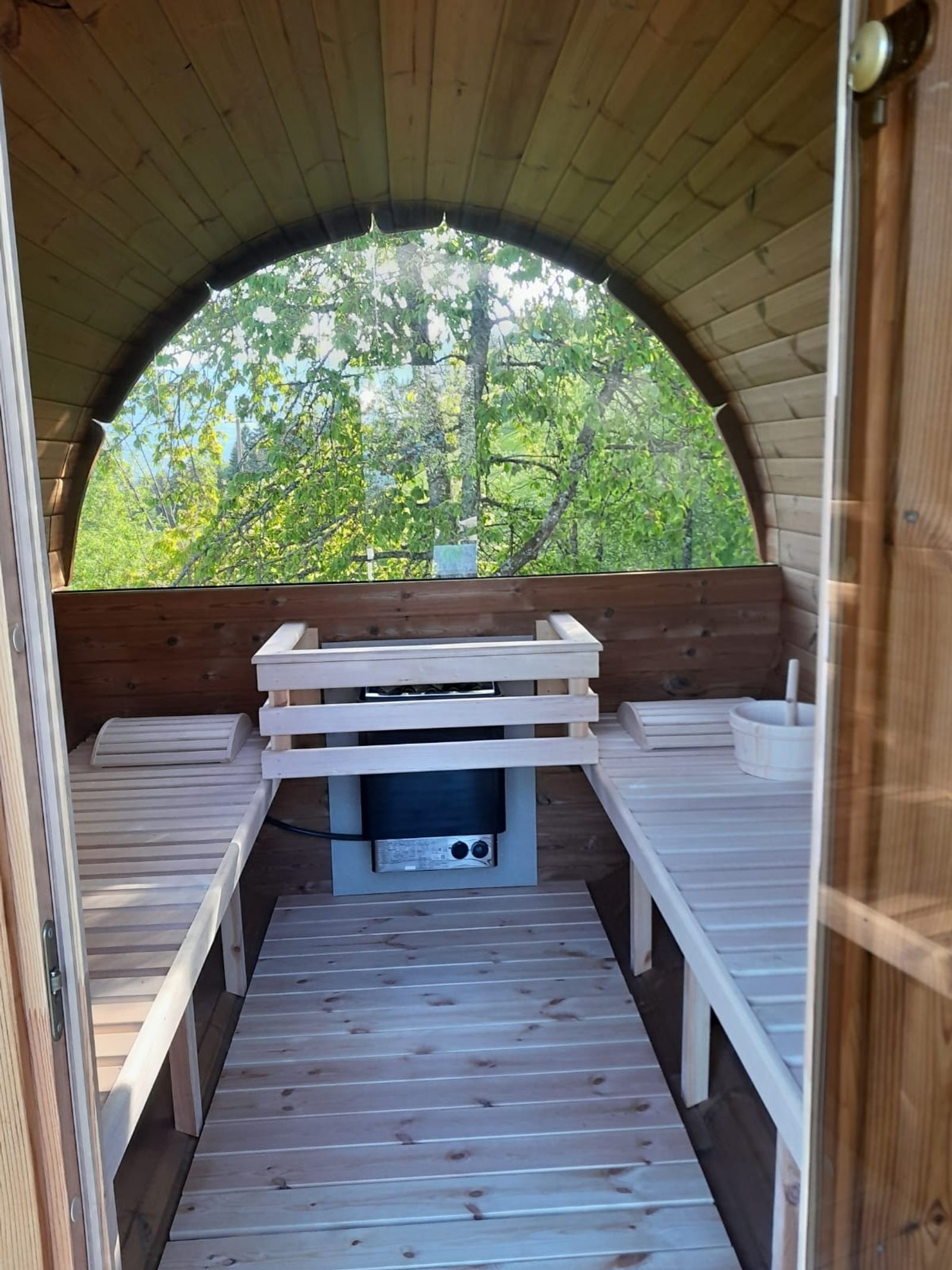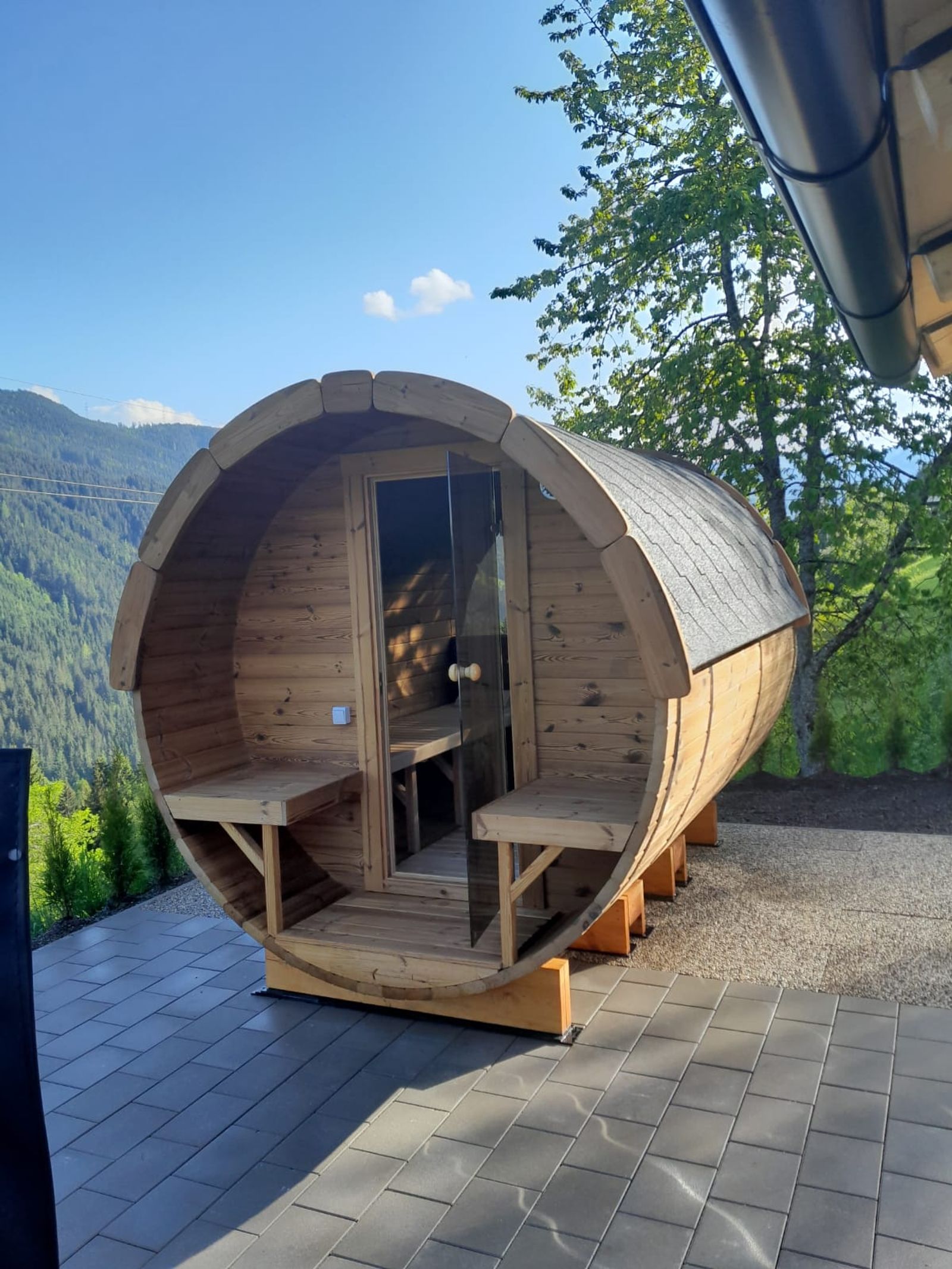 Fass-Sauna im Garten vorhanden
