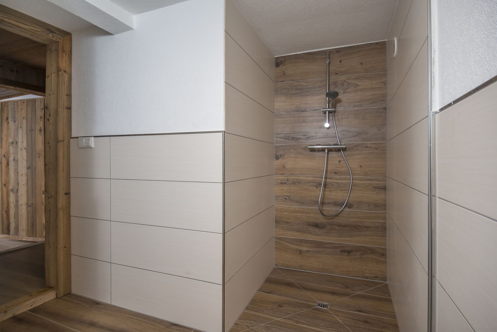 - 1 Badezimmer mit Dusche, Waschbecken und Fussbodenheizung