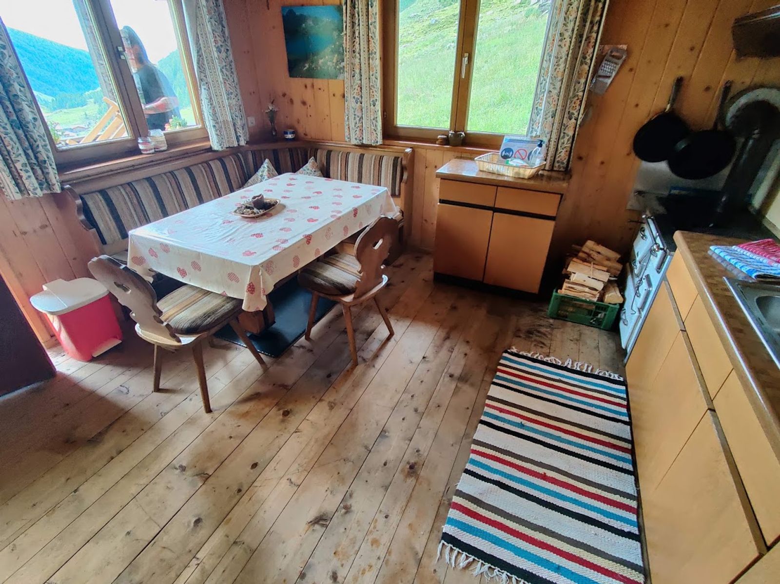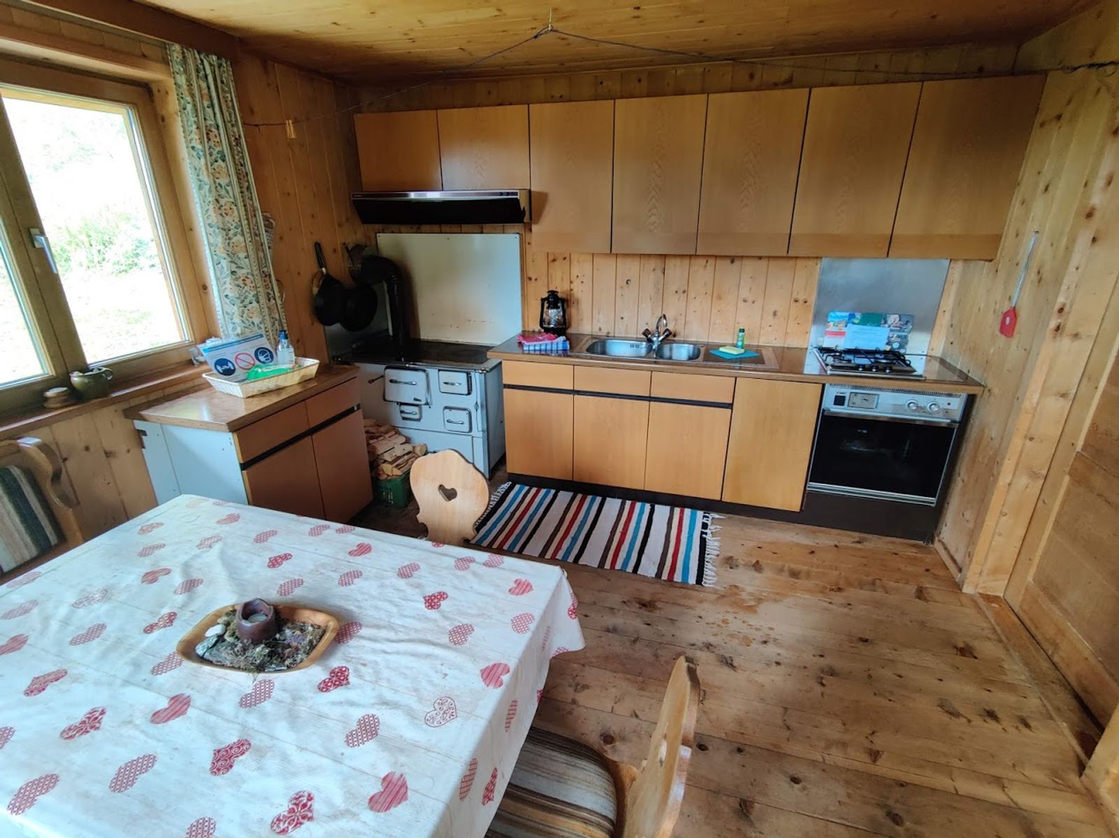 - gemütliche Wohnküche mit Holzofenherd und Gasherd