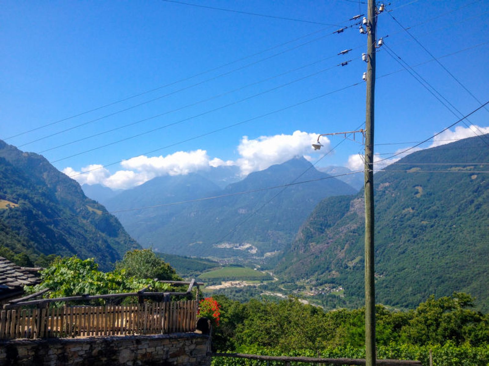 "Rustico Ca' di Garoi", 3-Zimmer-Haus 75 m2 auf 3 Stockwerken. Geräumig und hell, teilweise abgeschrägt, komfortabel und gemütlich eingerichtet: grosse, offene Küche (Backofen, Geschirrspüler, 4 Glaskeramikplatten, elektrische Kaffeemaschine, Kapseln für die Kaffeemaschine (NESPRESSO) extra, Racletteofen, Fondue Set (Käse)) mit Esstisch und Holzofen. Ausgang zur Terrasse. Dusche/WC. Ölheizung. Unteres Geschoss: 1 Doppelzimmer mit 1 Doppelbett (160 cm, Länge 200 cm). Obergeschoss: abgeschrägtes, offenes Wohn-/Schlafzimmer mit 1 Diwanbett (140 cm, Länge 200 cm), Sat-TV und Flachbildschirm. Kleine Terrasse teilweise überdacht. Terrassenmöbel, Gartengrill (mobil). Panoramasicht auf die Berge, das Tal, die Landschaft und die Ortschaft. Zur Verfügung: Waschmaschine, Kinderhochstuhl, Babybett bis 2 Jahre (extra), Haartrockner. Internet (WLAN, gratis). Bitte beachten: Nichtraucher-Haus. Maximal 1 Haustier/Hund erlaubt. NL-00001801
