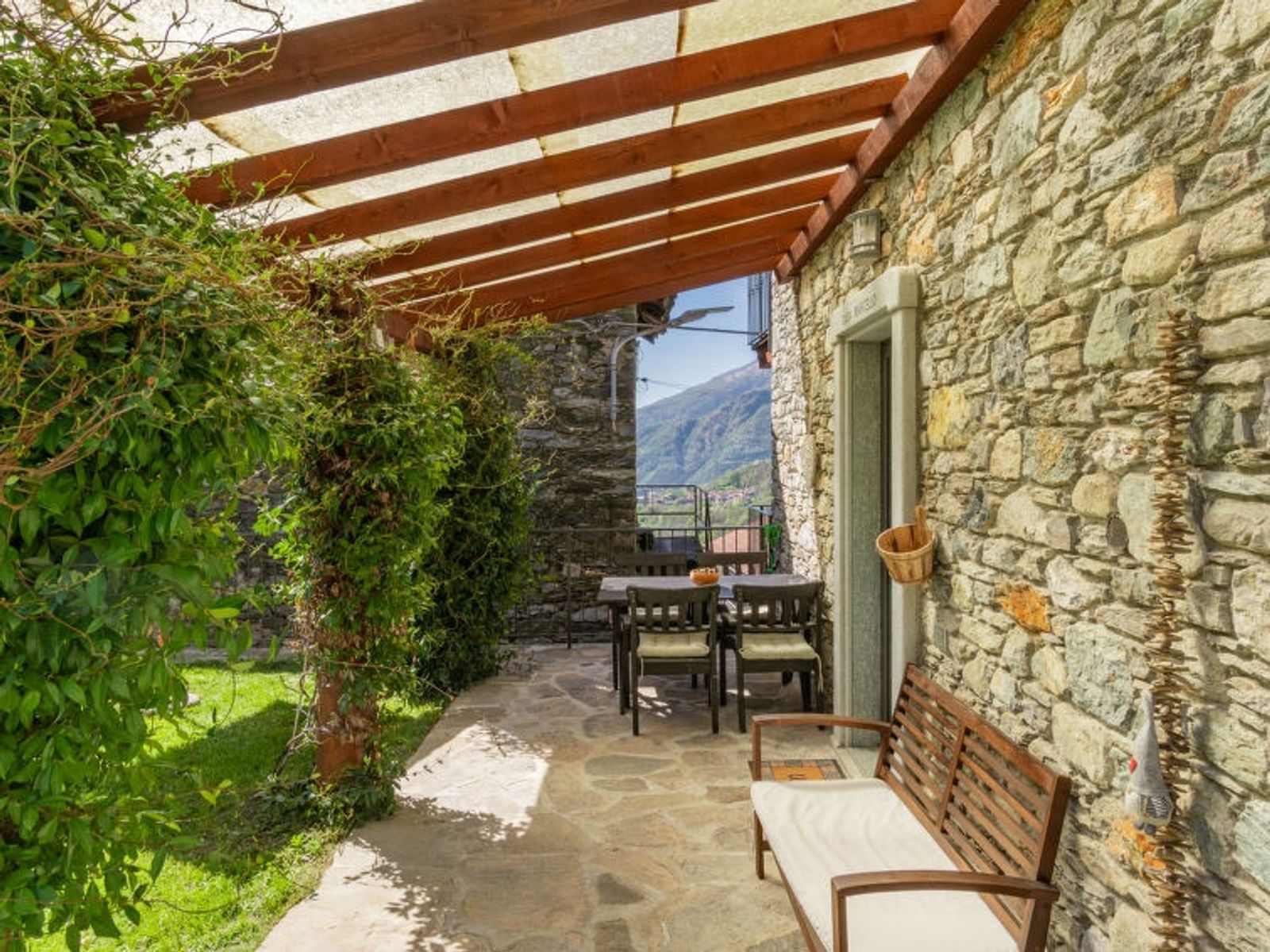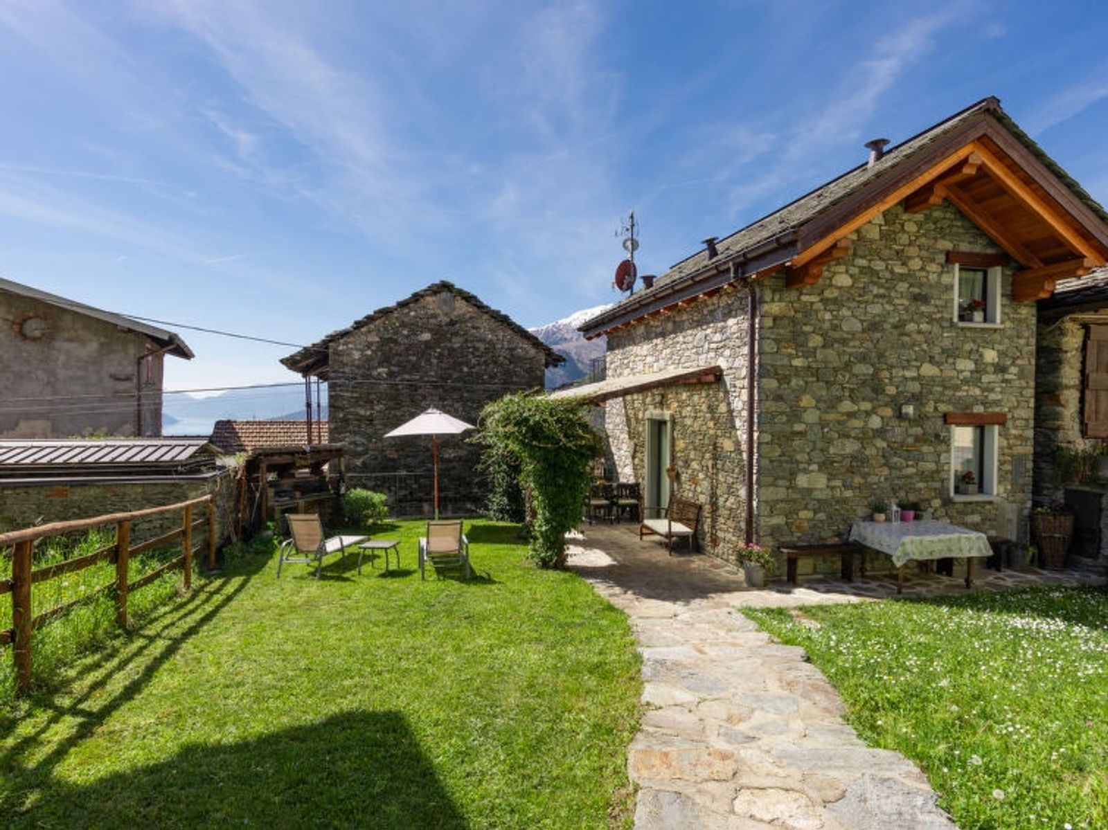 Schönes Rustico "Marcello", 650 m.ü.M., Baujahr 2018. Peglio, im Ortsteil, 6.5 km vom Zentrum von Gravedona, am Ortsrand, 54 km vom Zentrum von Como, 58 km vom Zentrum von Lecco, am Hang, 6.5 km vom See. Zur Alleinbenutzung: Grundstück (eingezäunt), terrassierter Garten, 200 m2 (eingezäunt) mit Wiese. 6 km lange Zufahrt (Bergstrasse). 50 m Fussweg bis zum Haus. Parkplatz in 100 m. Lebensmittelgeschäft 500 m, Supermarkt 7 km, Restaurant 250 m, Bushaltestelle 130 m, Bahnstation "Como" 54 km, Fähre "Gravedona" 6.5 km, Kieselstrand "Gravedona" 7 km, Freibad 7 km. Jacht-Hafen 6.5 km, Golfplatz (18 Loch) 29 km, Radweg 6.5 km. Nahe gelegene Sehenswürdigkeiten: Chiesa di Sant'Eusebio 500 m, Lake Como Adventure Park 17 km, Chiesa Santa Maria del Tiglio 5.5 km. Bekannte Skigebiete sind gut erreichbar: Madesimo 56 km. Bekannte Seen in der Umgebung sind gut erreichbar: Lago di Mezzola 19 km. Wandergebiete: Monte Duria, Alpe Motta.