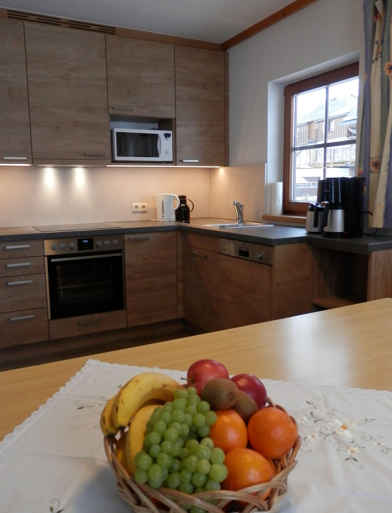 - Küche: E-Herd, Backofen, Mikrowelle, Geschirrspüler, Kaffeemaschine, Aufschnittmaschine und Kühlschrank
