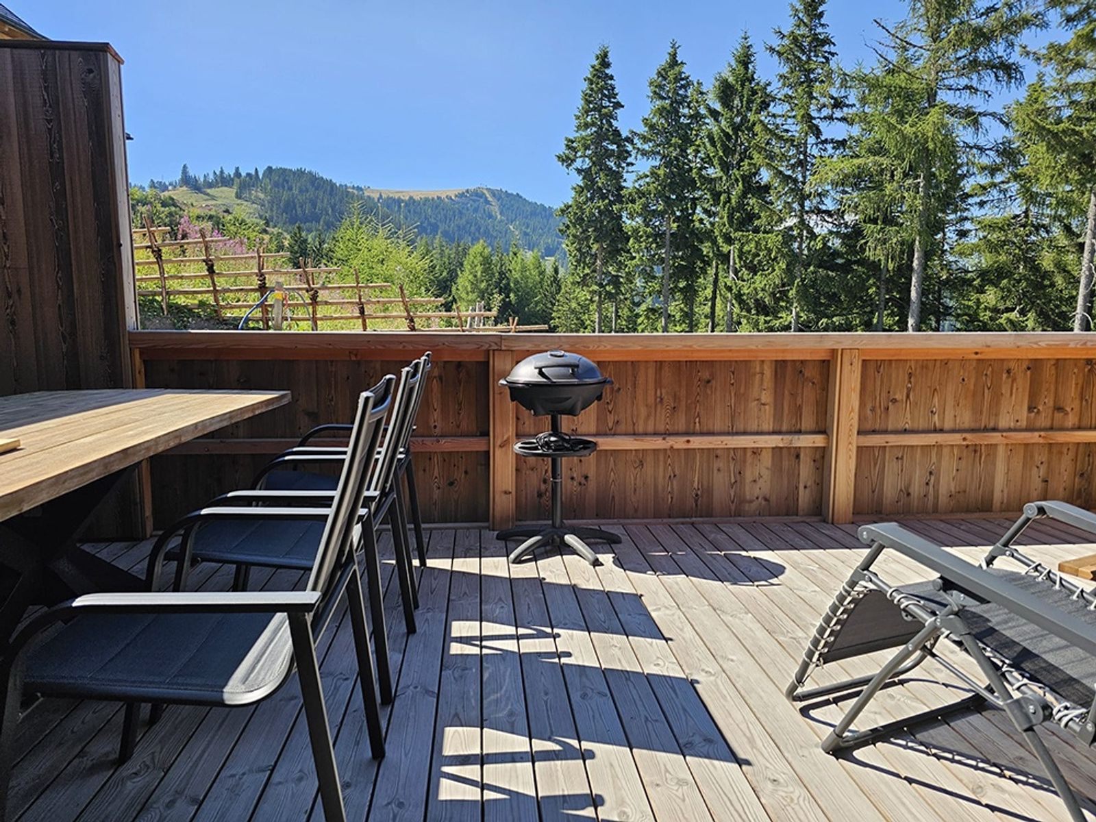 - große Sonnenterrasse mit Gartenmöbel, elektrischen BBQ Griller und Liegestühlen