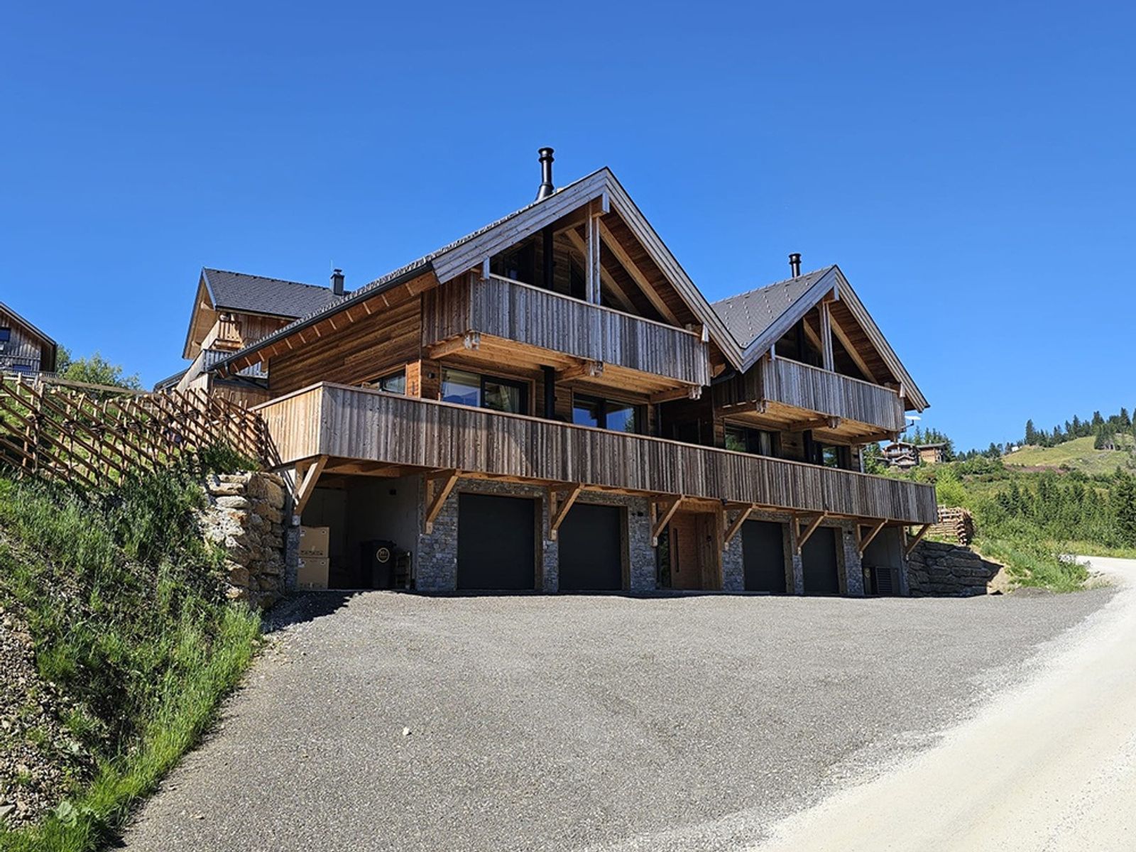 - je Chalet eine Doppelgarage mit knapp 43m², weiterer Parkplatz mit ca. 200m² vorhanden