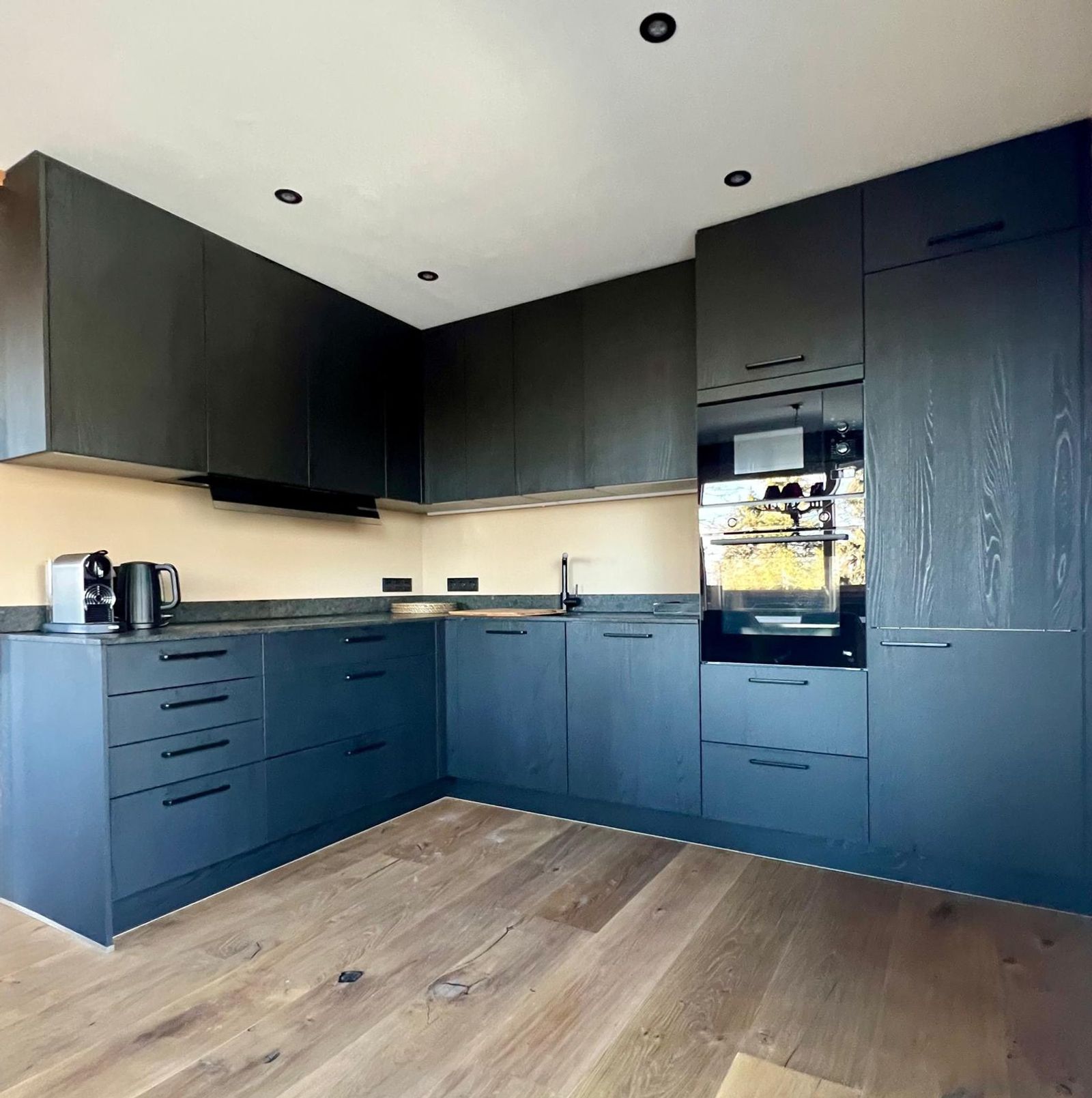 - Wohnküche mit Induktionskochfeld, Dunstabzug, Backofen, großer Kühlschrank mit Gefrierfach, Nespresso Maschine, Geschirrspüler, Eierkocher, Wasserkocher, Toaster und Mikrowelle
