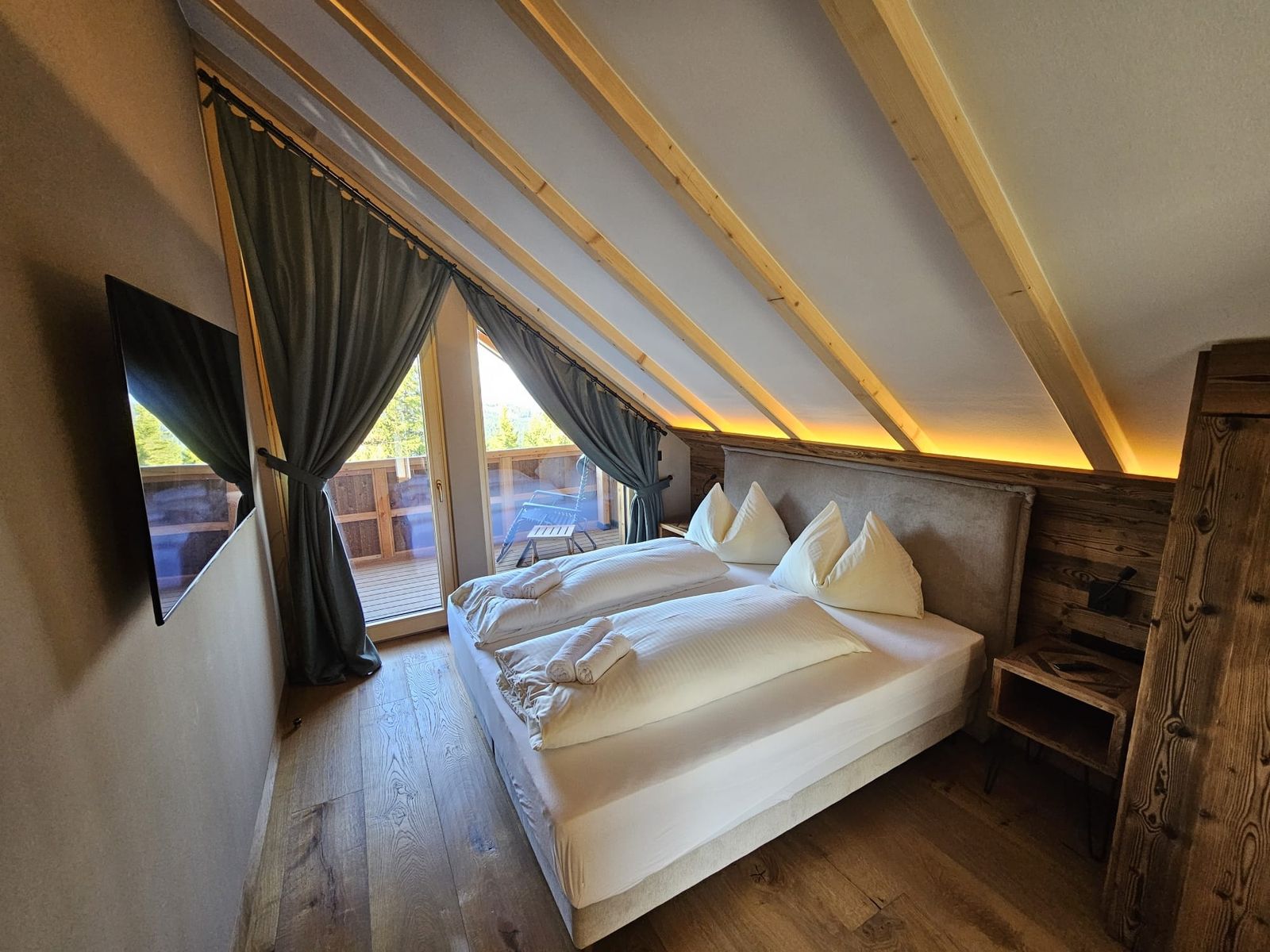 - jedes Chalet verfügt über eine grße Panorama Sauna mit Farblichttherapie
