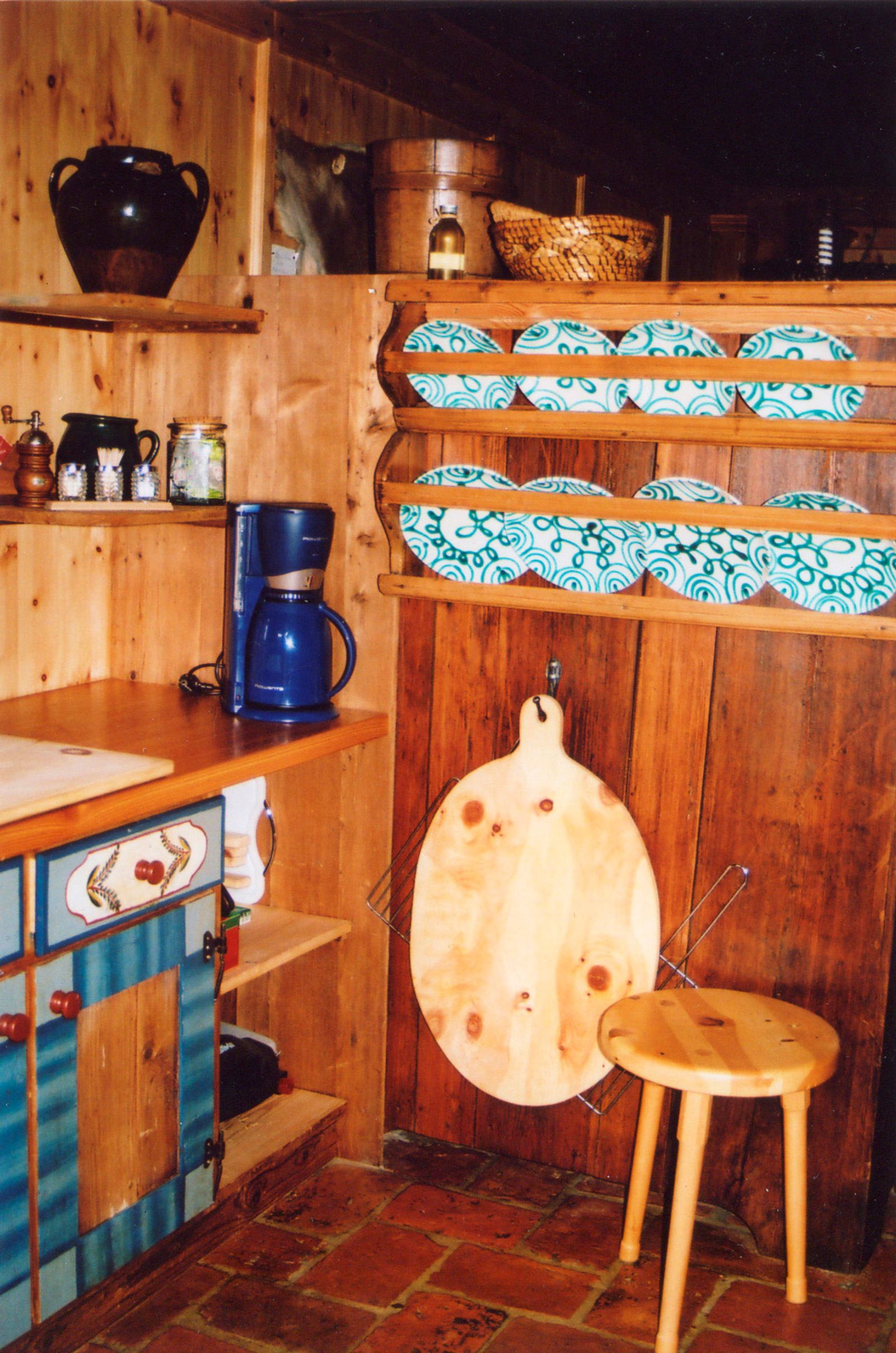 - Küche: Gasherd, Kaffeemaschine, Toaster und Holzherd