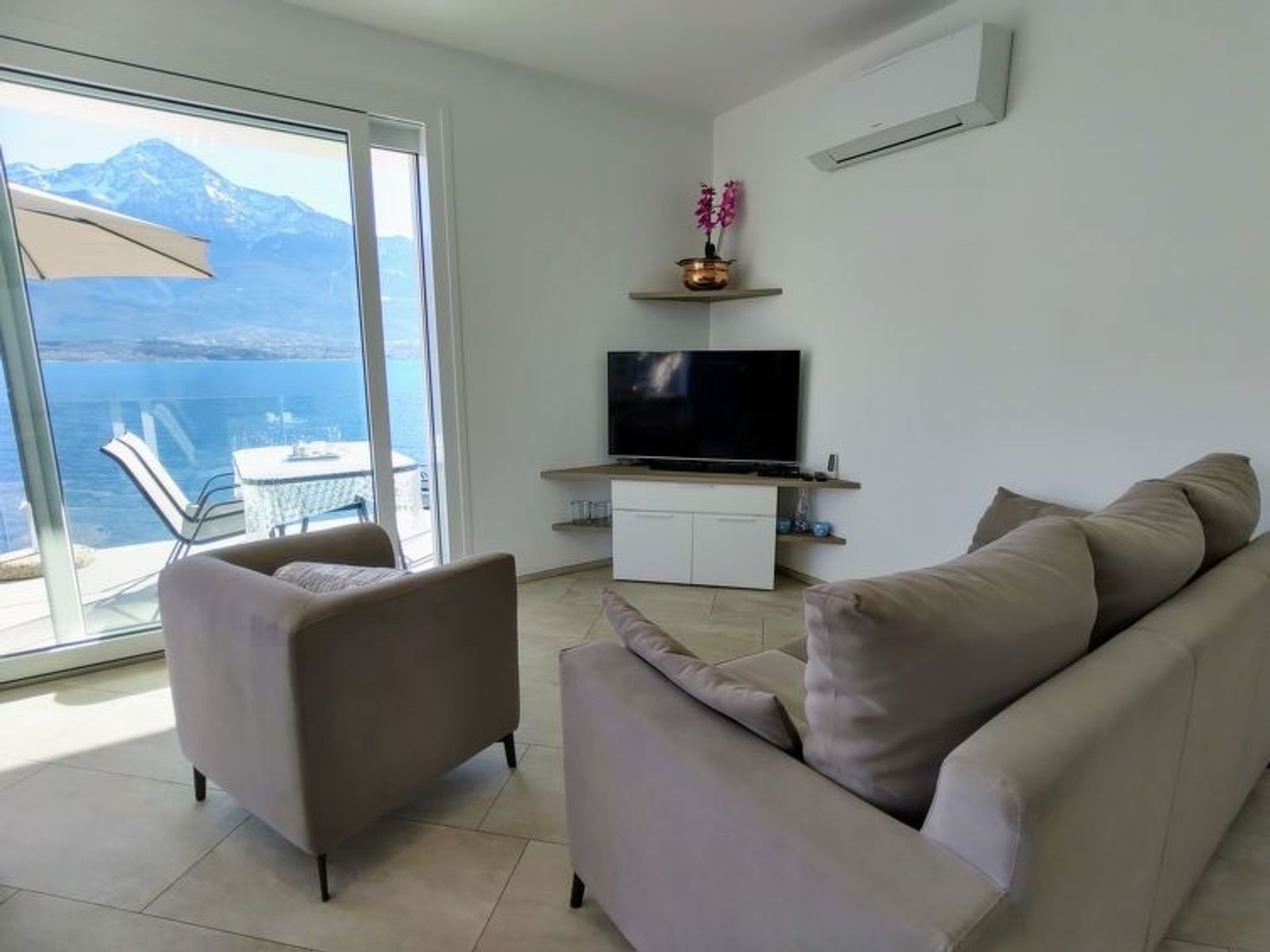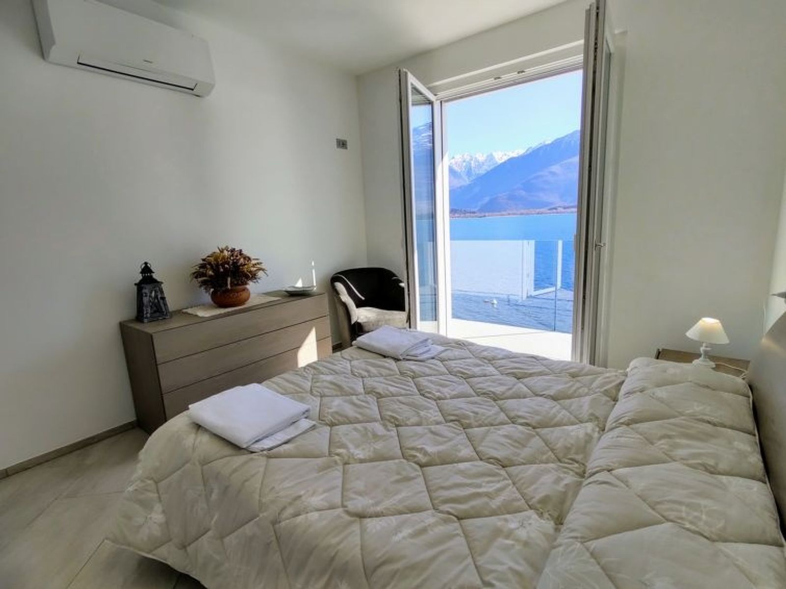 "Gelsomino (GLA125)", 3-Zimmer-Haus 65 m2. Modern und geschmackvoll eingerichtet: Wohn-/Esszimmer mit Esstisch und Sat-TV. Ausgang zur Terrasse. 1 Zimmer mit 1 franz. Bett (160 cm). Ausgang zum Balkon. 1 Zimmer mit 2 Betten. Ausgang zum Balkon. Offene Küche (Backofen, Geschirrspüler, 4 Induktionskochplatten, Toaster, Wasserkocher, Mikrowelle, Tiefkühler, elektrische Kaffeemaschine). Dusche/WC. E-Heizung, Klimaanlage, Fussbodenheizung. Balkon, Terrasse teilweise überdacht. Terrassenmöbel, Liegestühle (2). Herrliche Sicht auf den See, die Berge und Monte Legnone (2609 m). Zur Verfügung: Waschmaschine. Internet (Wireless LAN, gratis). Bitte beachten: Nichtraucher-Unterkunft. IT013107C2F5EM5G5E