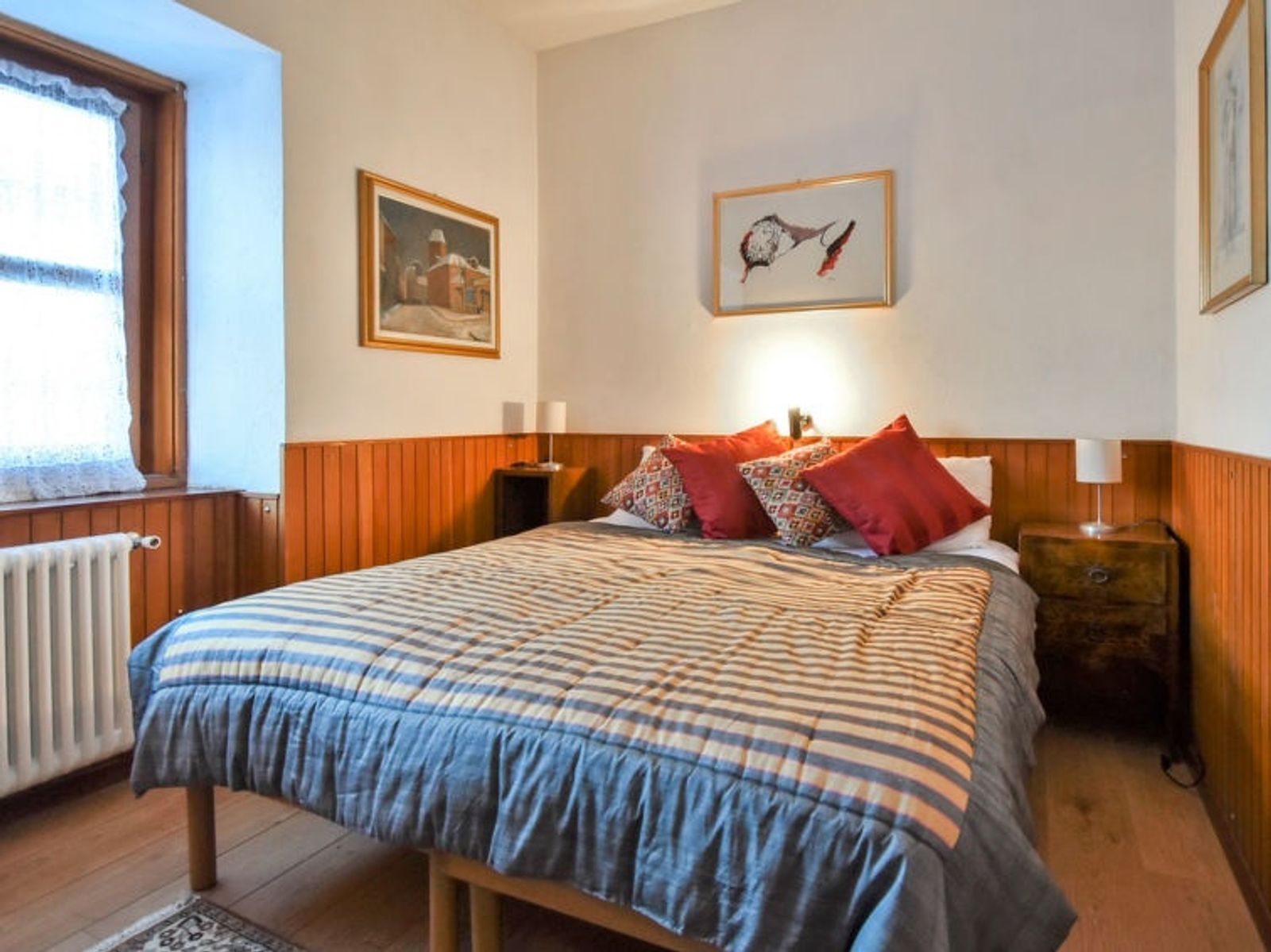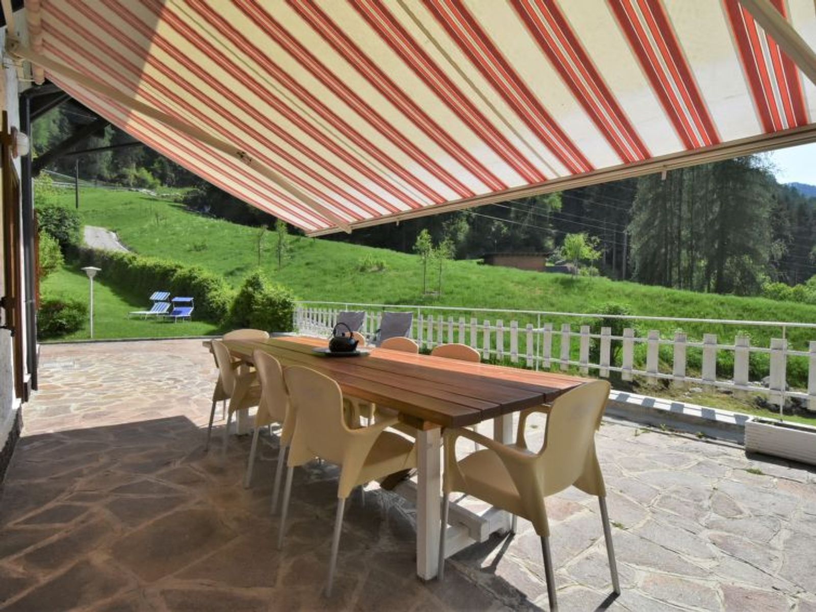 5-Zimmer-Villa 180 m2, im erhöhten Erdgeschoss, Nordostlage. Hell, komfortabel eingerichtet: offenes grosses Wohn-/Esszimmer mit Panoramafenster mit offenem Kamin (nur Deko), Esstisch und TV (Flachbildschirm), Heimkino. Ausgang zur Terrasse. 1 Doppelzimmer. 1 Zimmer mit 2 Betten. 1 Doppelzimmer mit Radio, CD und Stereoanlage. 1 Zimmer mit 2 Betten und TV (Flachbildschirm). Grosse, offene Küche (Backofen, 4 Induktionskochplatten, Toaster, Wasserkocher, Mikrowelle, Tiefkühler, elektrische Kaffeemaschine) mit Esstisch. 2 Duschen/Bidet/WC. Heizung. Grosse Terrasse 100 m2. Terrassenmöbel, Gartengrill, Liegestühle (4). Schöne Panoramasicht auf die Berge und das Tal. Zur Verfügung: Waschmaschine, Bügeleisen, Haartrockner. Internet (WLAN, gratis). Bitte beachten: Nichtraucher-Unterkunft. Maximal 1 Haustier/Hund erlaubt. Eigener Eingang, Feuerlöscher. Bei Belegung mit weniger Personen als der maximalen Personenzahl stehen nicht alle Schlafzimmer zur Verfügung. Es werden keine zusätzlichen Gebühren vor Ort fällig, ausgenommen der örtlichen Kurtaxe. IT022137C2Q4WGFJPL