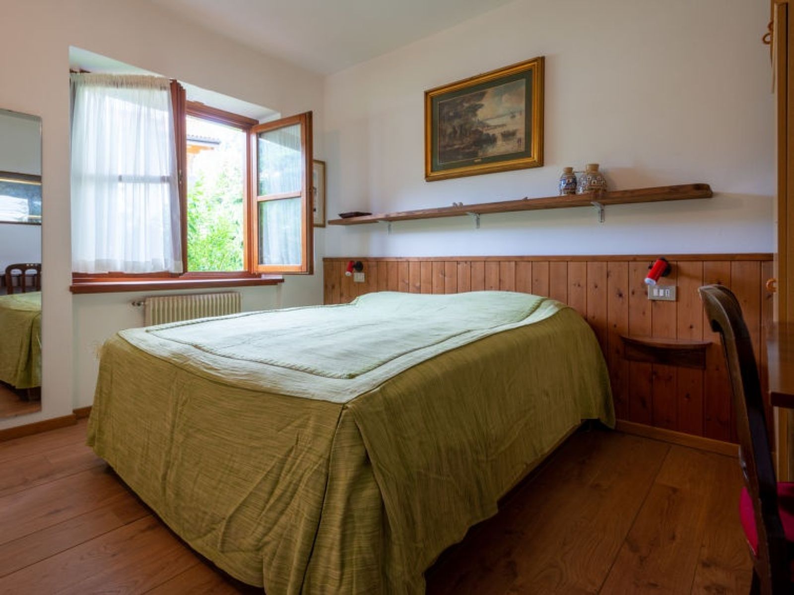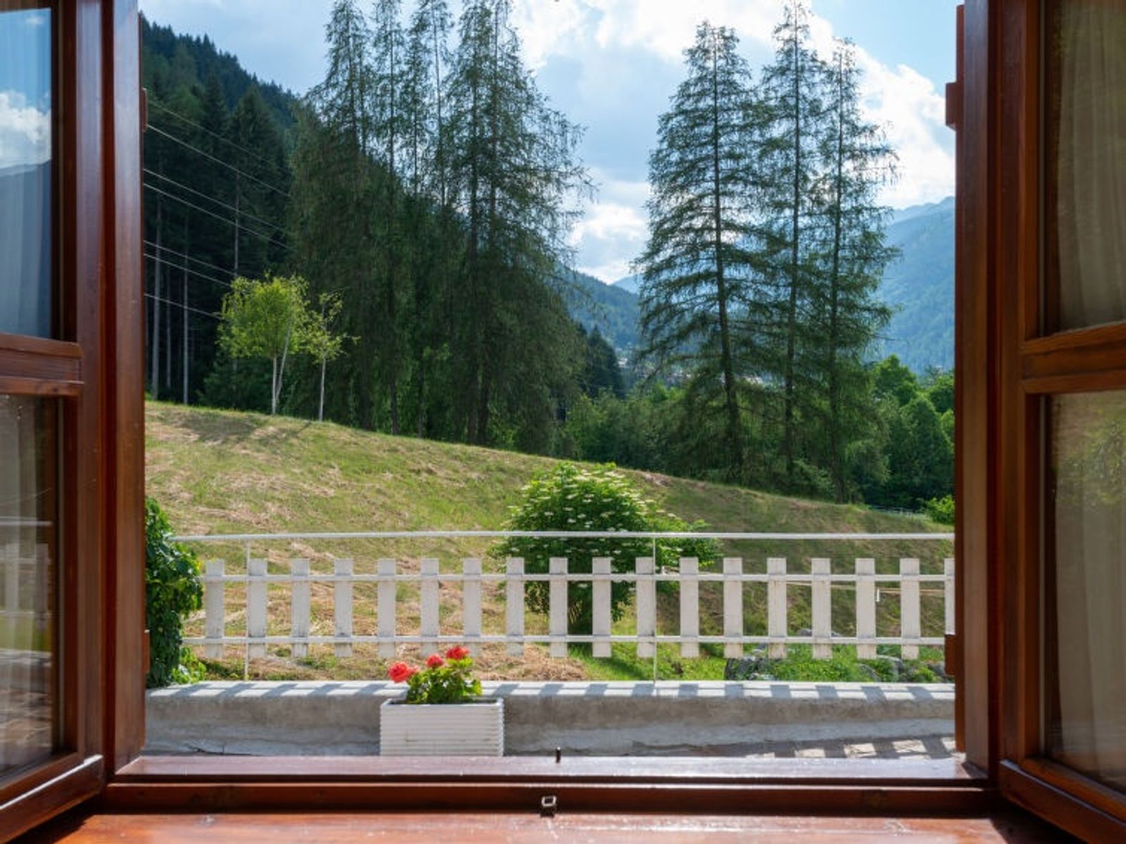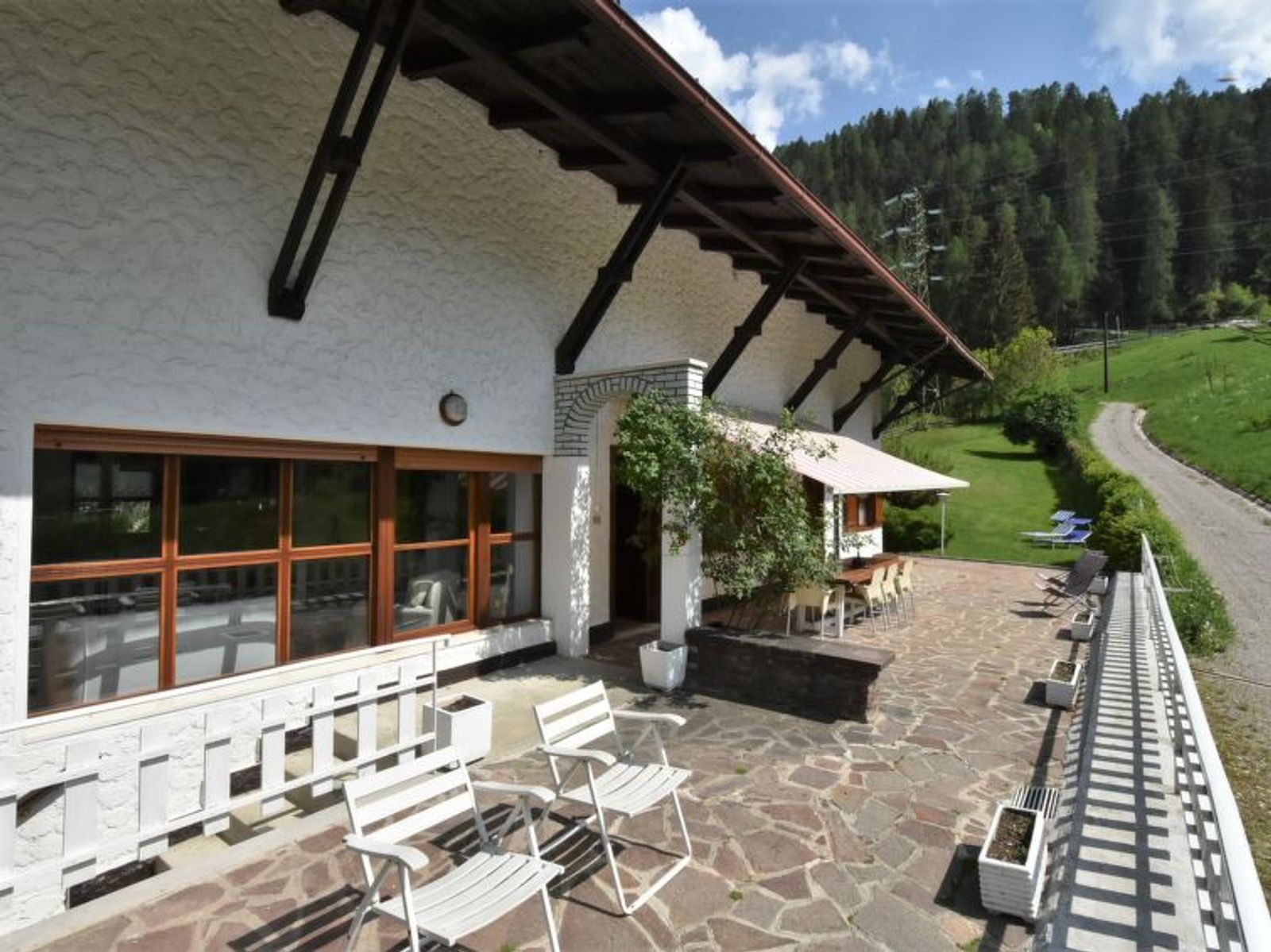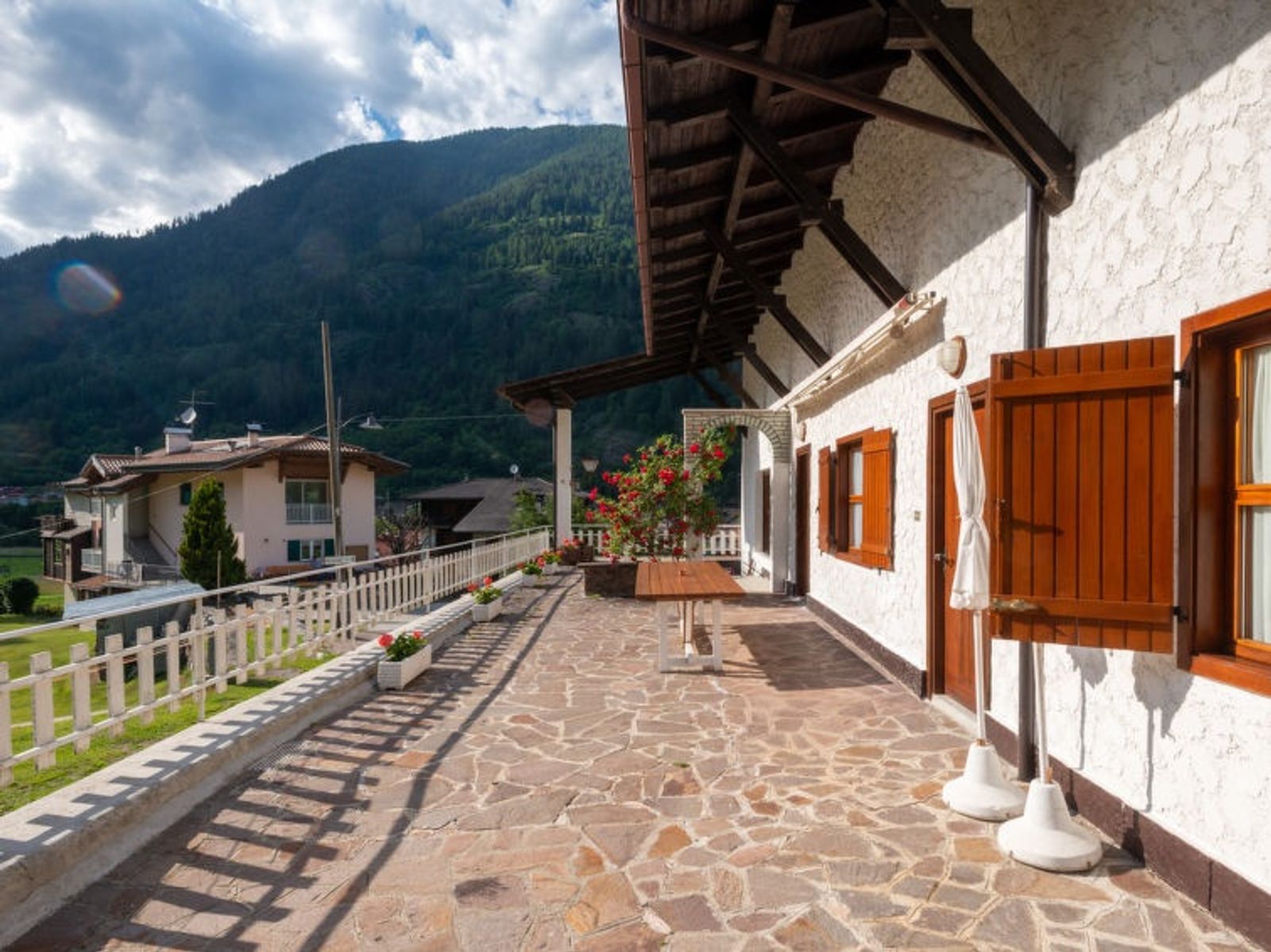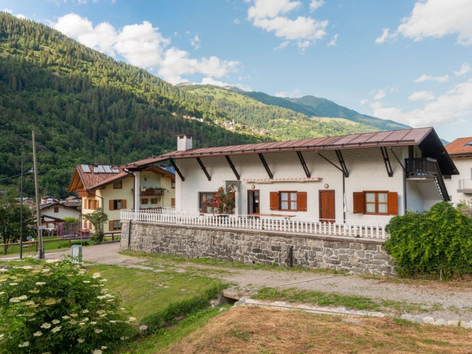 Schöne, komfortable Villa "Villa Lucia", 937 m.ü.M., auf 2 Stockwerken, einseitig angebaut, Baujahr 1960, umgeben von Bäumen und Wiesen. 300 m vom Zentrum von Pellizzano, ruhige Lage im Villenviertel, direkt am Waldrand, 4.5 km vom Skigebiet. Zur Alleinbenutzung: Garten 3'000 m2 (nicht eingezäunt) mit Rasen und Bäumen. Terrasse (100 m2), Grill. Im Hause: Einstellraum für Fahrräder, Sonnenterrasse, Skiraum. Im Winter bitte Schneeketten mitbringen. Treppenweg (14 Stufen) bis zum Haus. Parkplatz (für 2 Autos) beim Haus, öffentliche Parkplätze 100 m auf der Strasse. Supermarkt 500 m, Restaurant, Bar, Café 300 m, Bushaltestelle "Pellizzano" 300 m. Nahe gelegene Sehenswürdigkeiten: Marilleva 900/ Marilleva 1400 4.5 km, Passo del Tonale 17 km, Madonna di Campiglio 25 km, Rafting/Canoe/Outdoor Center-Val di Sole 1.5 km. Wandergebiete: Lago di Pian Palu', sentiero degli Gnomi, Lago dei Caprioli, Sass Pisador. Bitte beachten: Der Besitzer wohnt auf dem gleichen Grundstück.