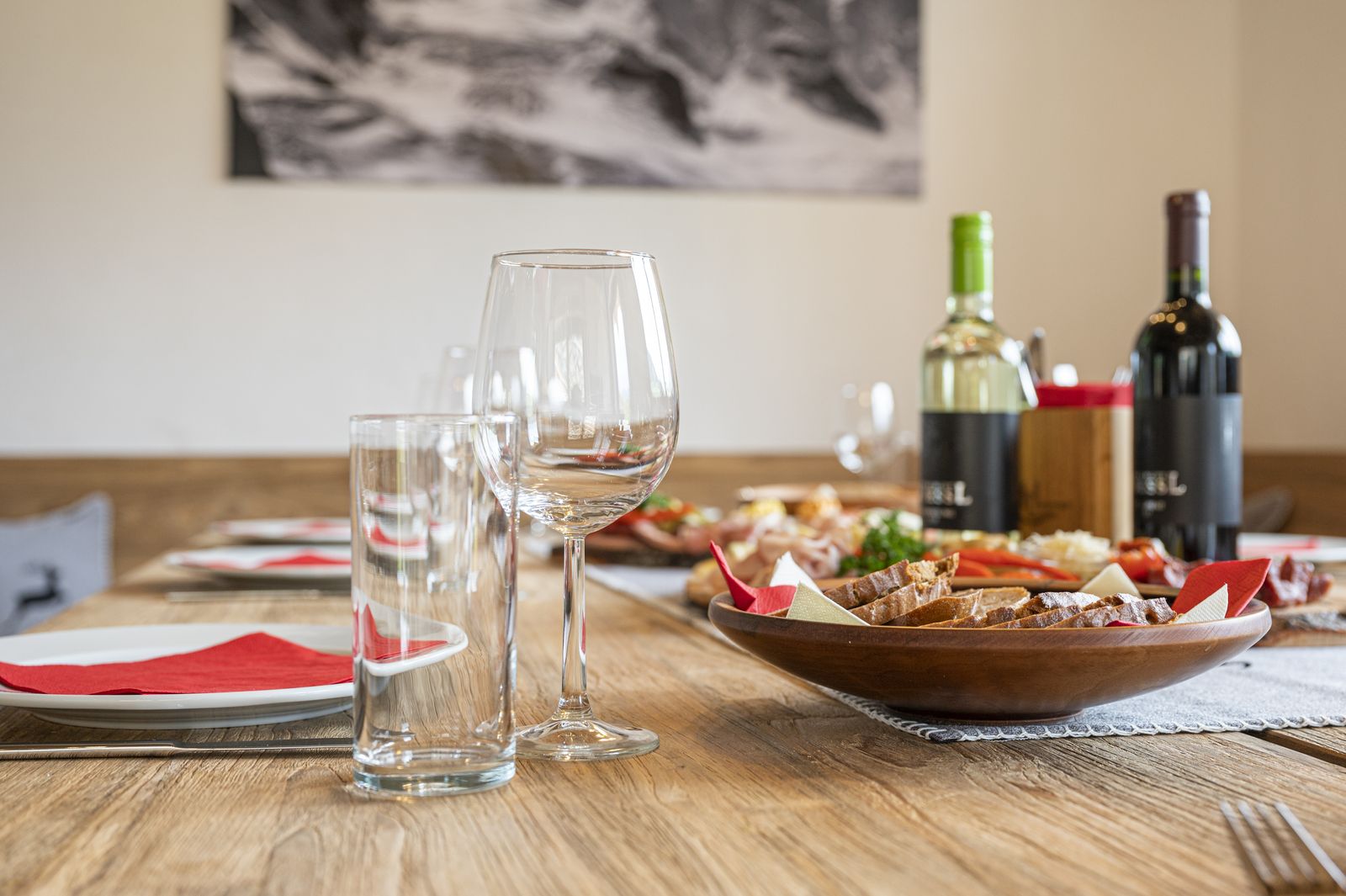 The modern kitchen leaves nothing to be desired, even for professional chefs. In addition to an induction hob, there is an oven, a refrigerator and freezer as well as all sorts of electrical appliances. The large dining table with corner bench by the stove offers all guests enough space. The living area leads to the furnished terrace, which offers a fantastic view of the surrounding mountains.
