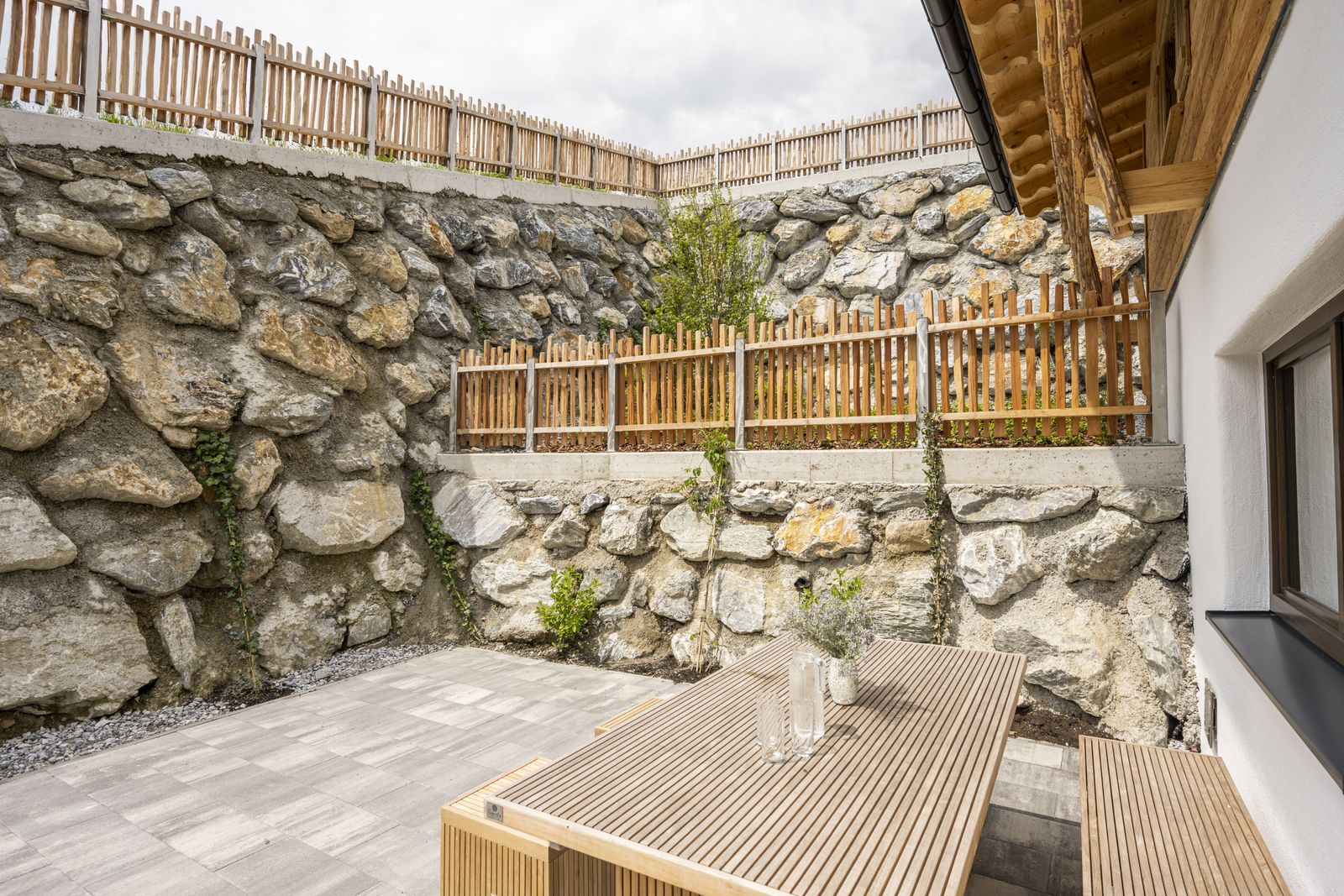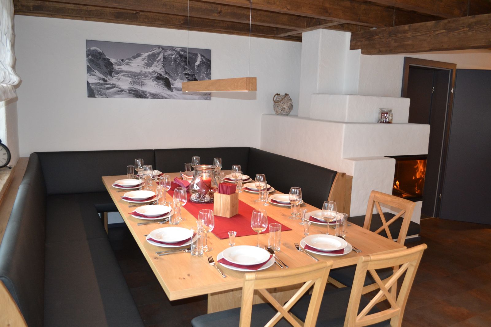 The modern kitchen leaves nothing to be desired, even for professional chefs. In addition to an induction hob, there is an oven, a refrigerator and freezer as well as all sorts of electrical appliances. The large dining table with corner bench by the stove offers all guests enough space. The living area leads to the furnished terrace, which offers a fantastic view of the surrounding mountains.