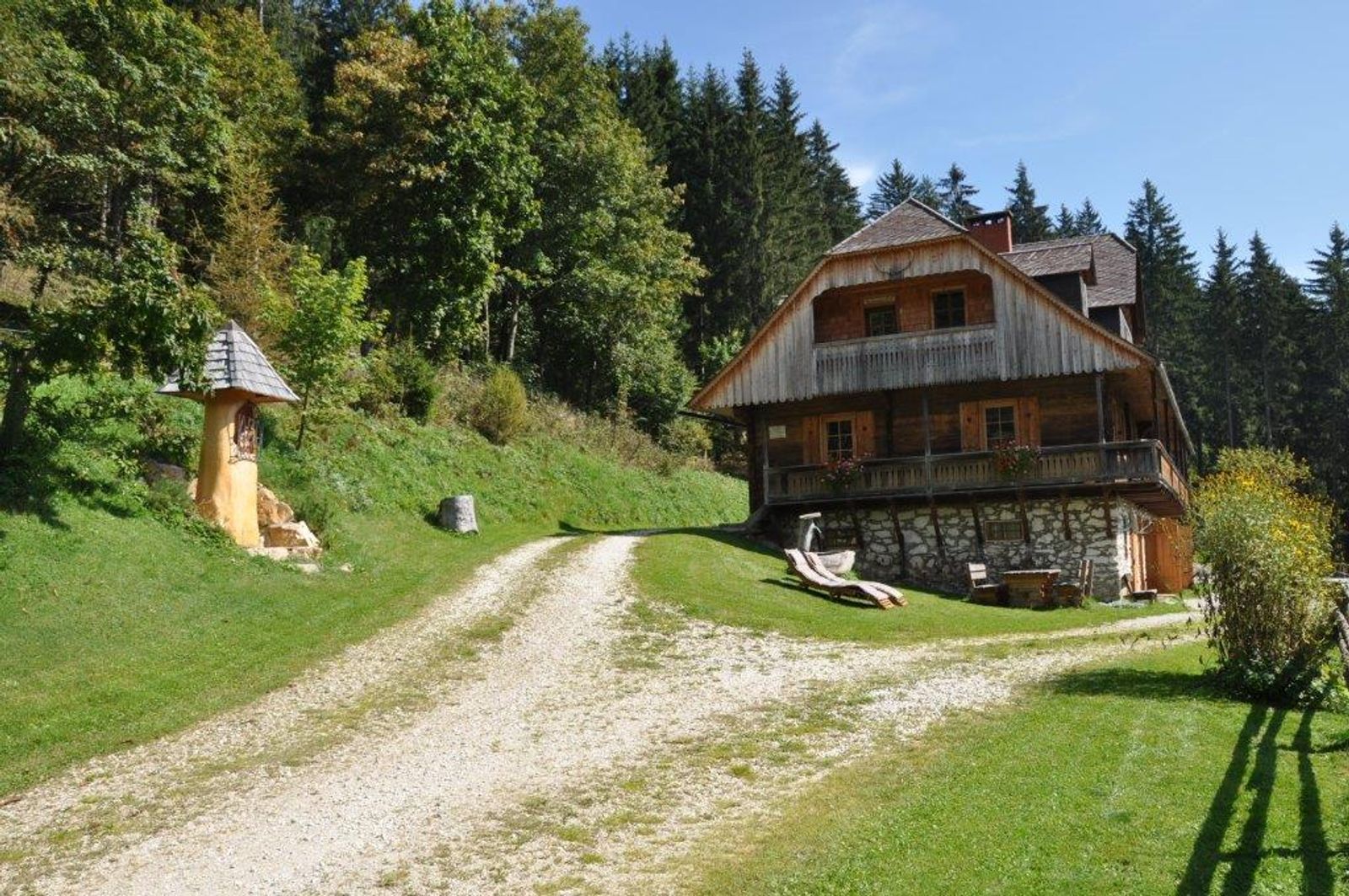 The Almhütte Kuhgrabenl is in a sunny and quiet secluded location on a forest clearing. In summer, numerous hikes can be made directly from the hut and in winter you can reach the ski area in a few minutes. The ground floor of the almost 100-year-old farmhouse has been lovingly restored and equipped with many modern amenities. The new sauna with a small relaxation area offers relaxation and recreation. Several managed huts and restaurants are located in the vicinity. In Bad St. Leonhard, distance about 14 km, there are shops are for a small shopping trip and supermarkets. The Almhütte Kuhgraben can be reached by car all year round. Parking is directly at the cottage. One pet is welcome in summer.
