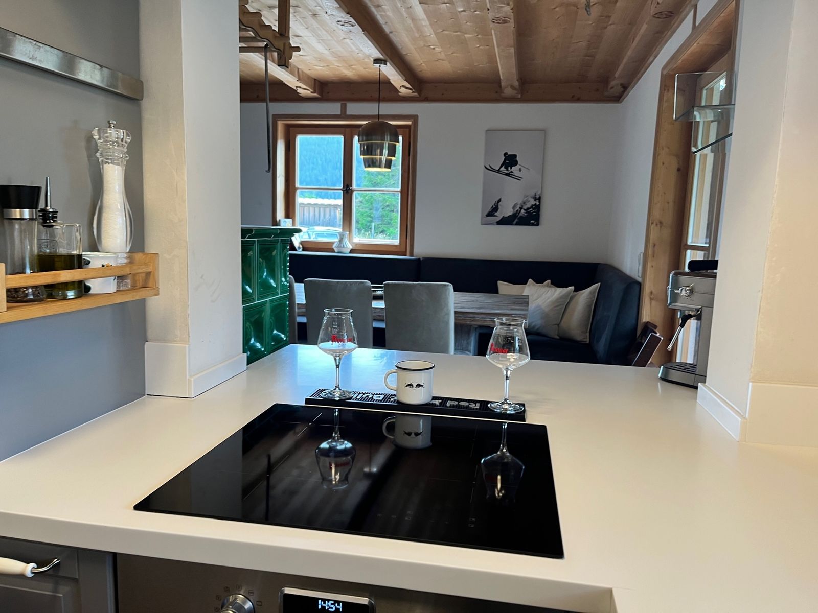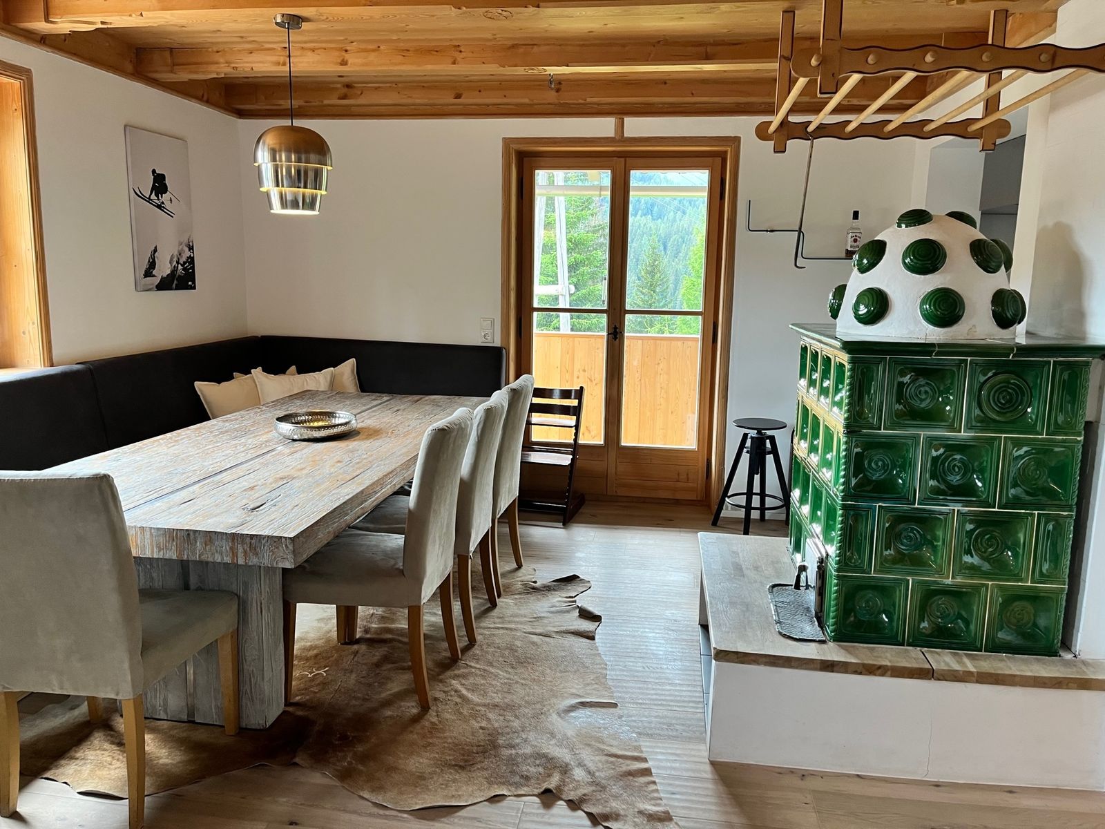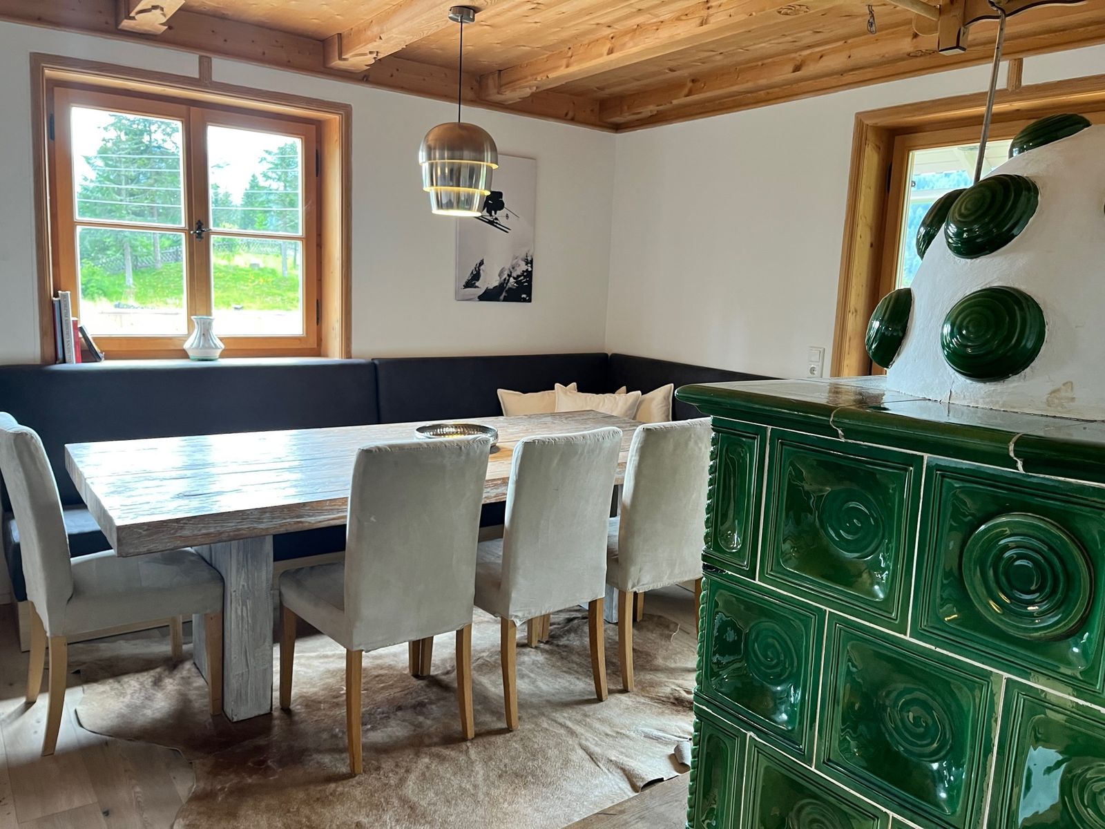 - Cozy dining area with tiled stove