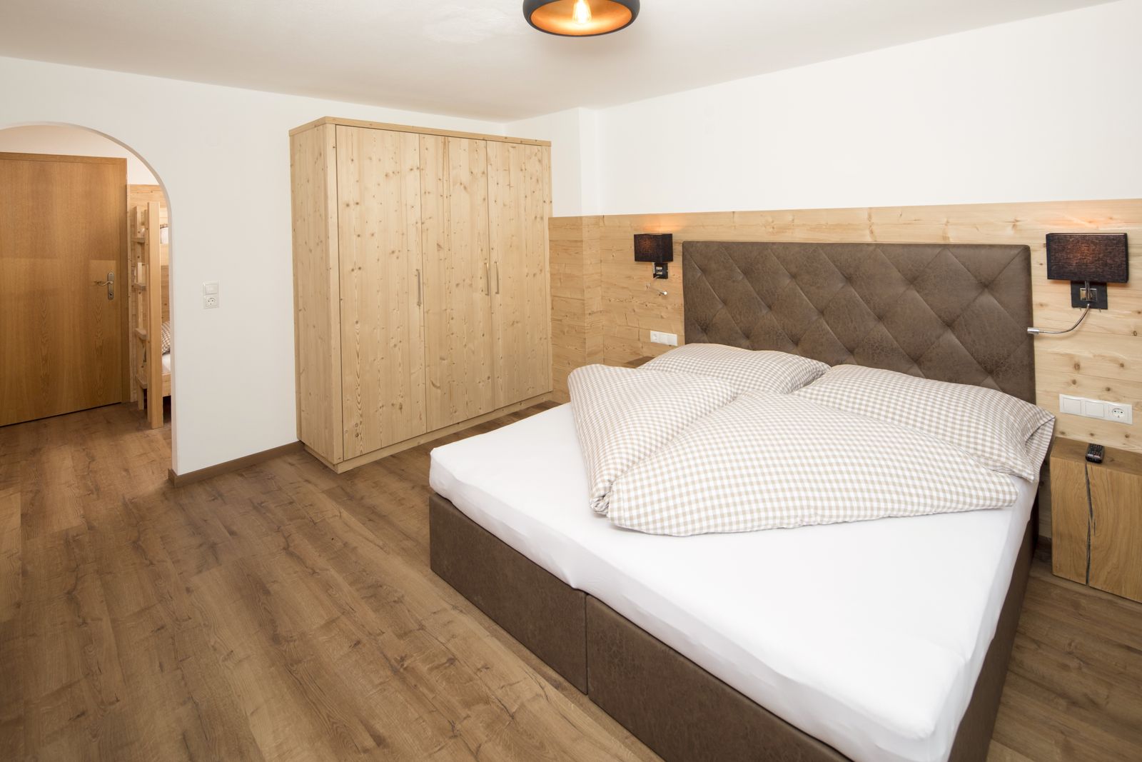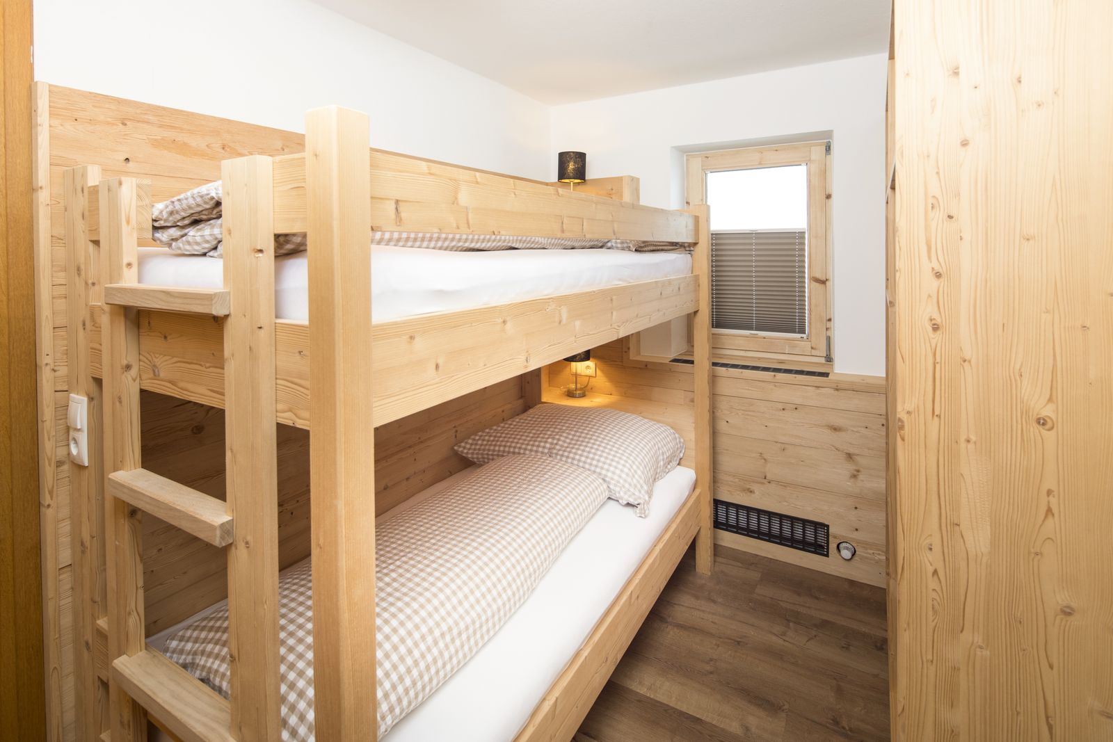 - 1 bedroom with double bed and bunk bed on the upper floor