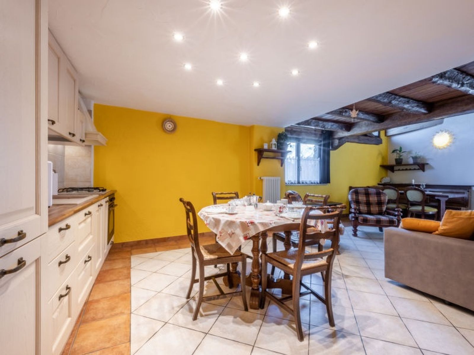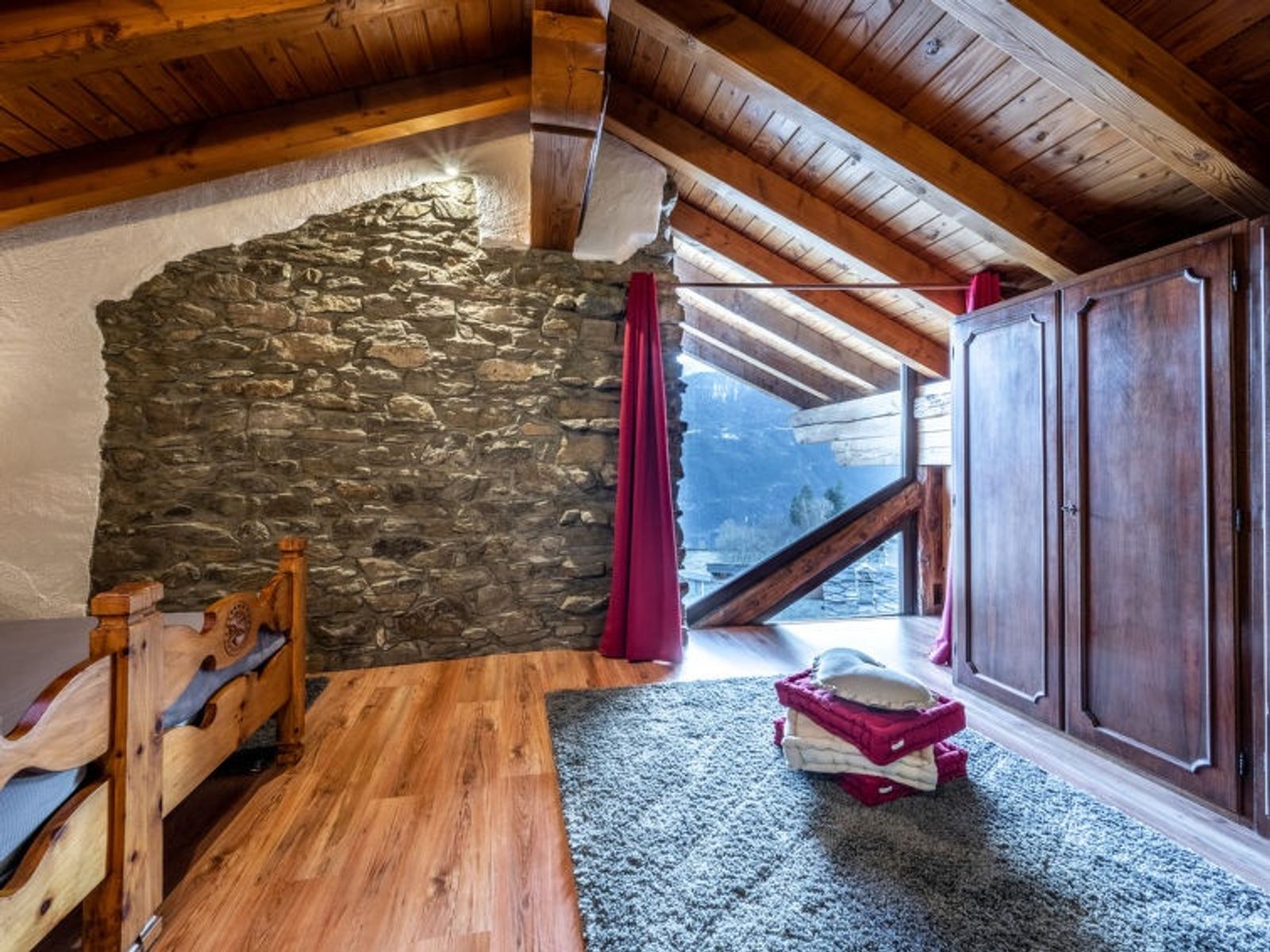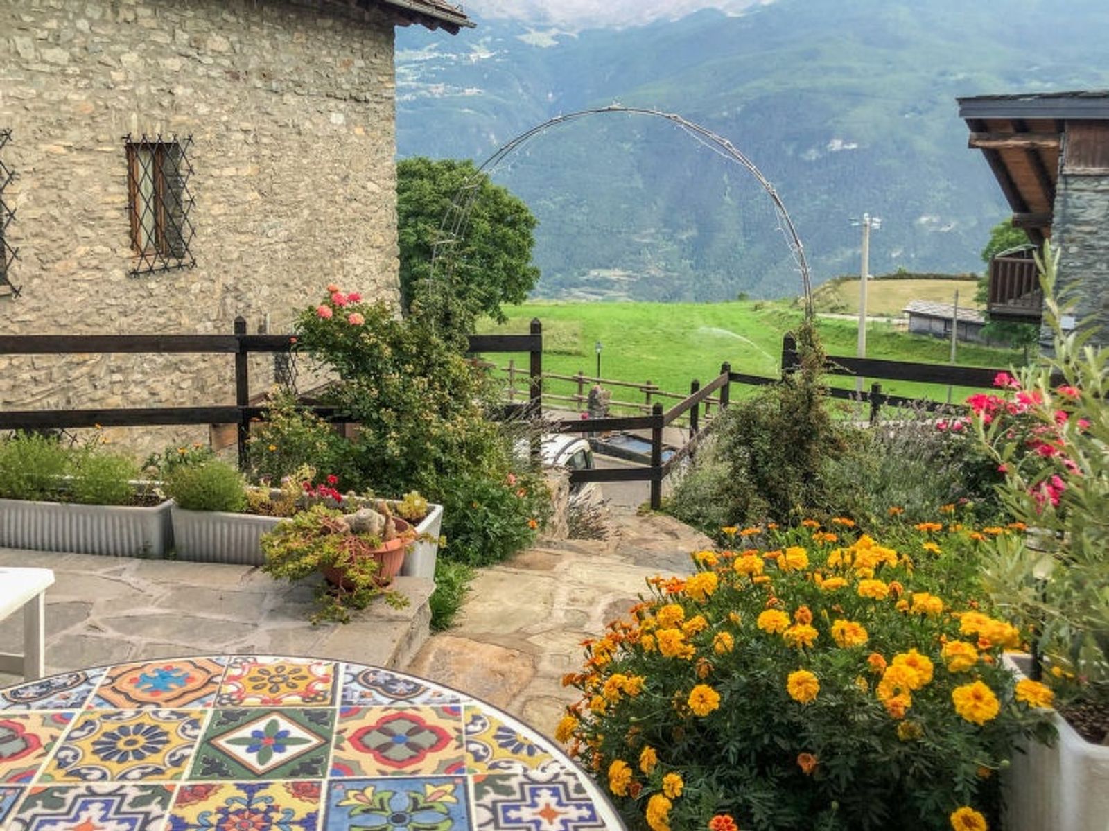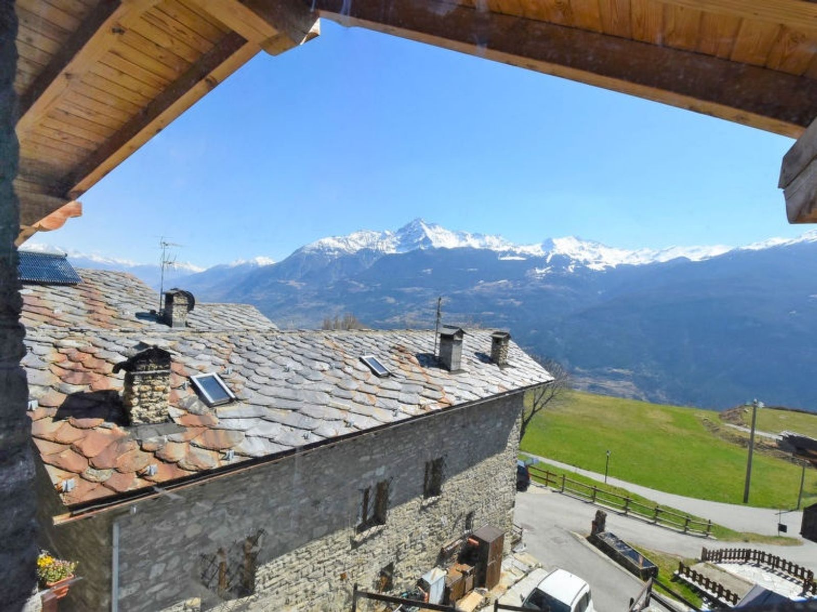 Rustic, historical 2-family house "Maison Chez Nous", 1'200 m a.s.l., 2 storeys. In the hamlet Caillod-Ville sur Sarre 8 km from the centre of Sarre, in a quiet, sunny position, south-east facing position. For shared use: garden 10 m2 (fenced). Garden furniture, public parking on the road. Supermarket 8 km, restaurant 8 km, bar 8 km, bus stop "Sarre" 8 km, thermal baths "Pre'-Saint-Didier" 36 km. Nearby attractions: Ovovia Aosta-Pila 13 km, Courmayeur Mont Blanc 36 km. Please note: car recommended.