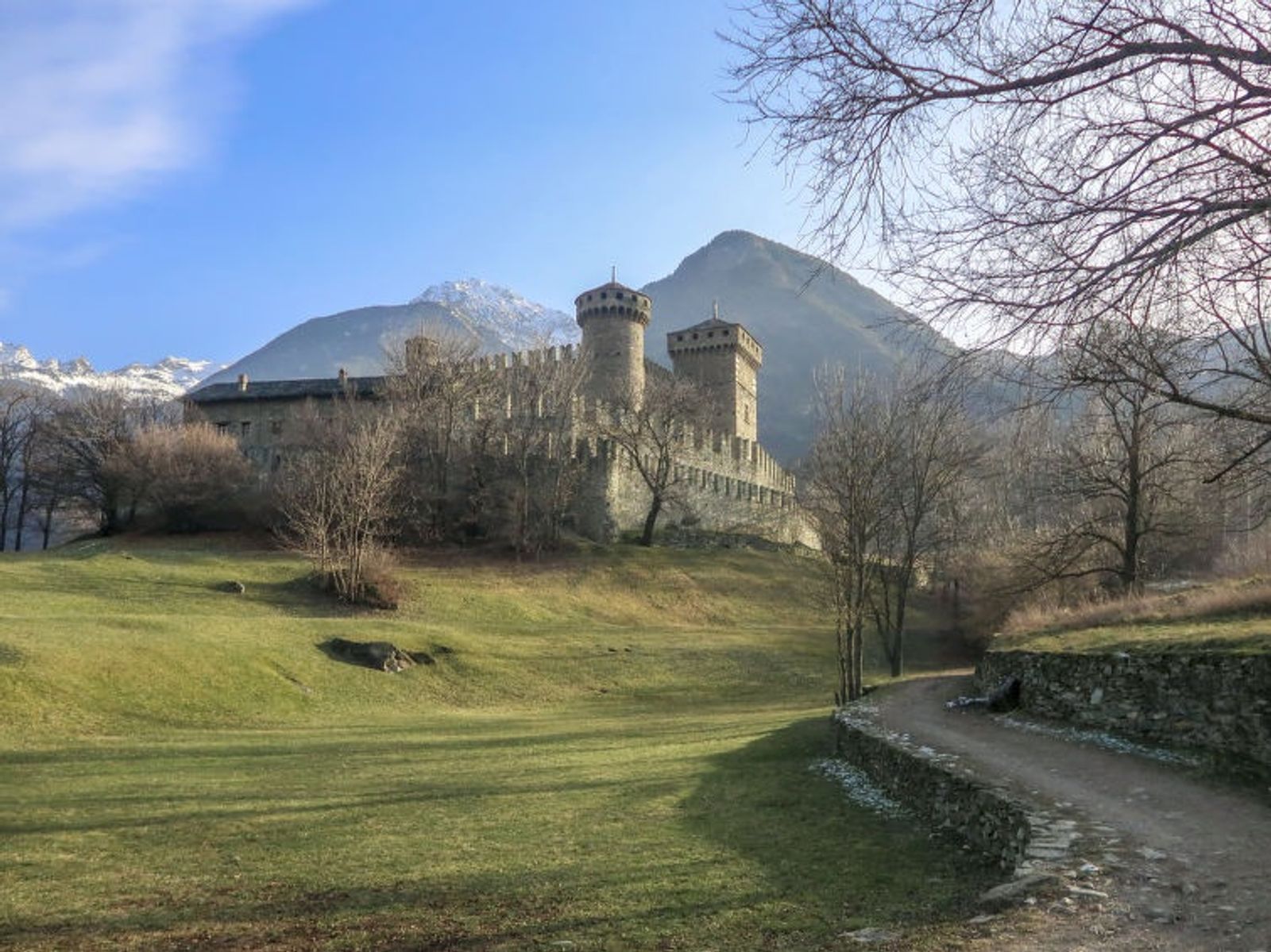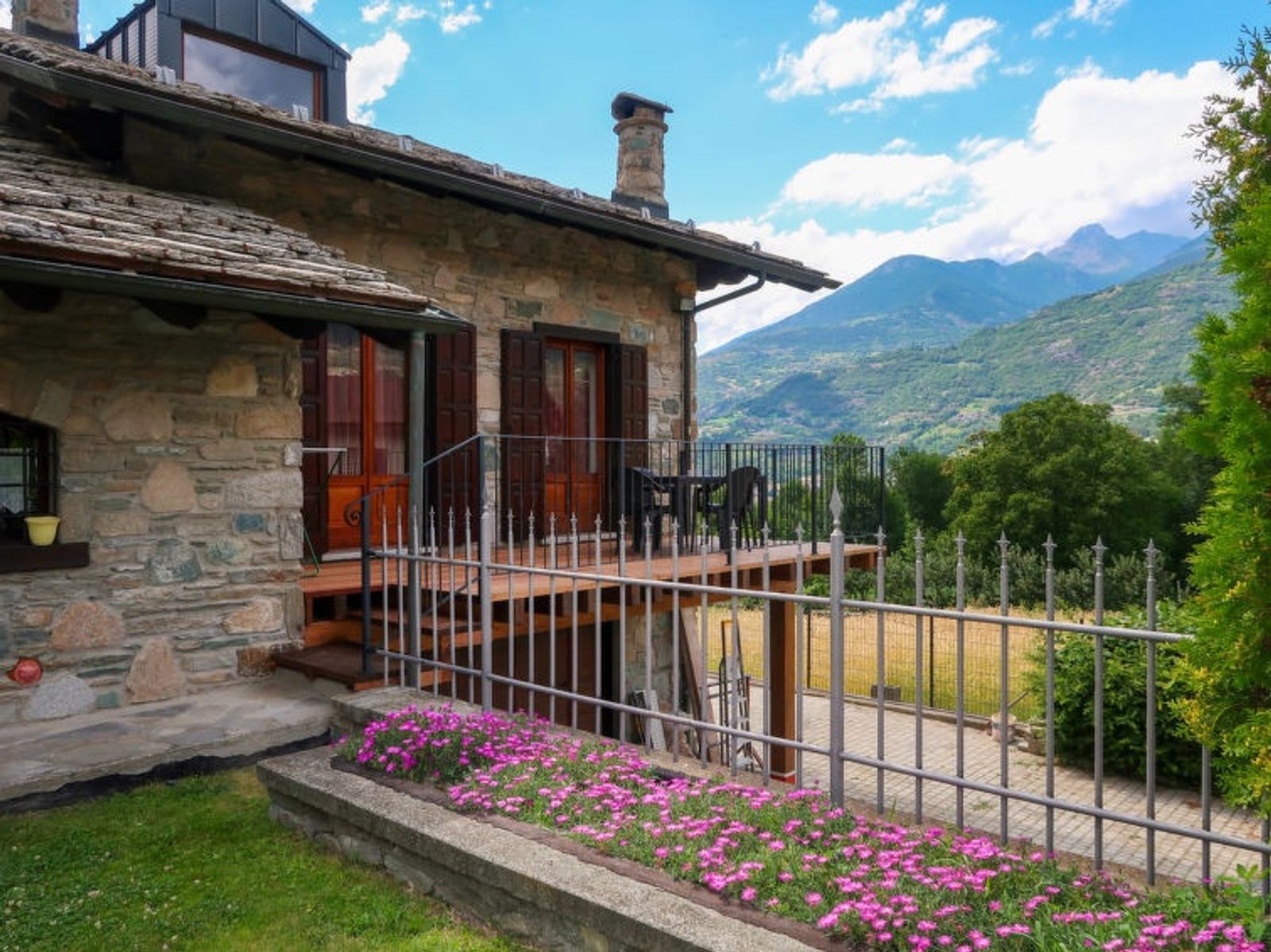 Rustic, comfortable apartment house "Maison Pro de Solari", 540 m a.s.l., renovated in 2019. In the centre of Fenis 16 km from the centre of Aosta, in a quiet, sunny position. For shared use: garden 200 m2 (fenced) with lawn for sunbathing, swimming pool (9 x 3 m, depth 140 - 140 cm, seasonal availability: 01.Jun. - 30.Sep.) with shutter cover. Garden furniture, barbecue, barbecue house. In the house: storage room for bicycles, storage room for skis, central heating system. In Winter: please take snow chains. Parking at the house. Restaurant, bus stop 50 m, railway station 3 km. Golf course (18 hole) 5 km, riding stable 800 m, children's playground 500 m. Nearby attractions: ovovia Aosta-Pila 18 km. Well-known ski regions can easily be reached: Pila 34 km, Cervinia 35 km. Please note: the owner lives in the same residence.