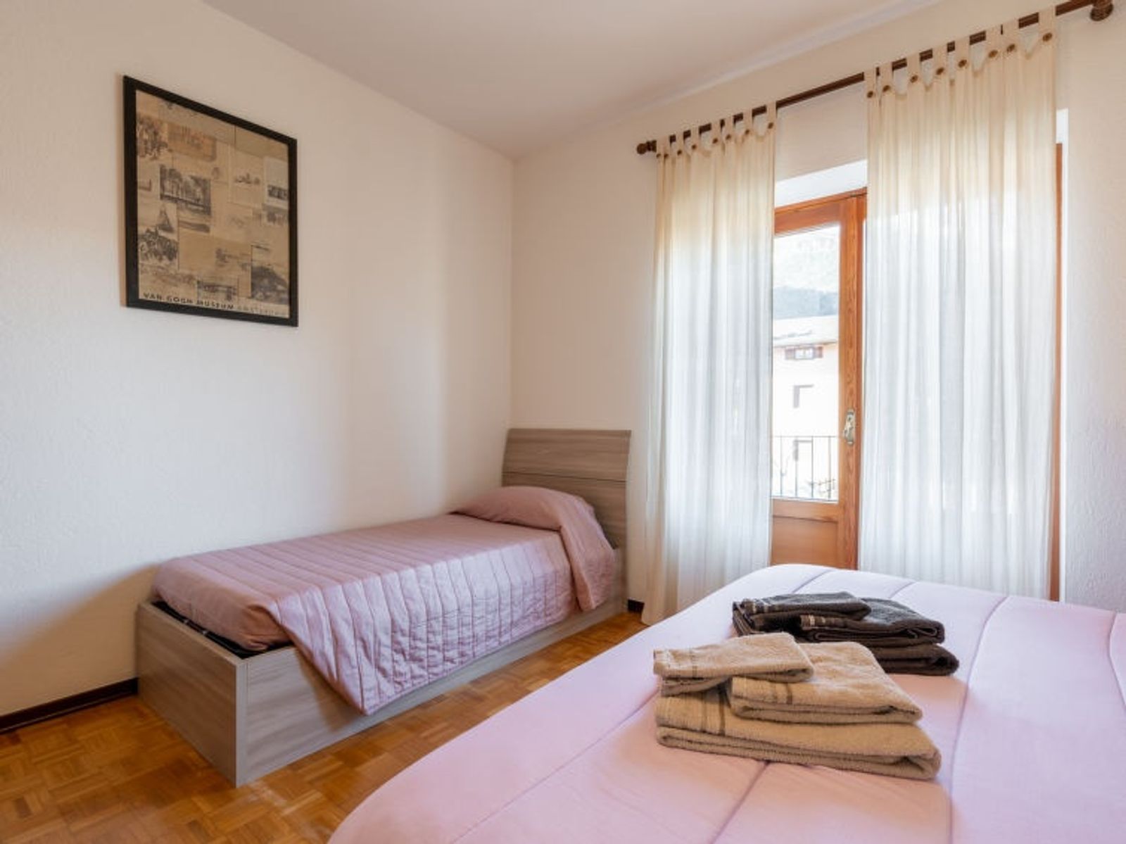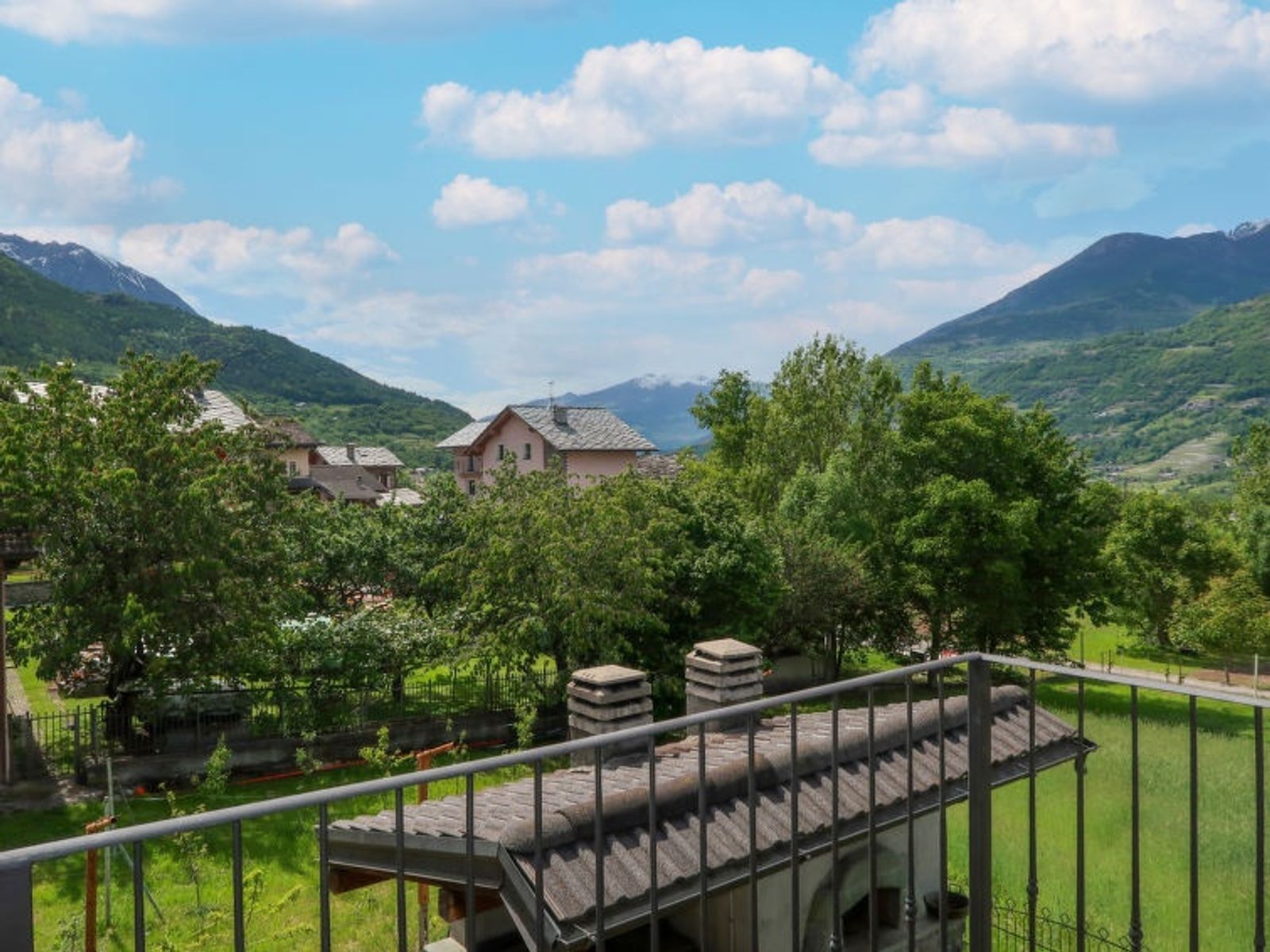 3-room apartment 58 m2 on 1st floor. Bright, renovated in 2020, practical and comfortable furnishings: living/dining room with TV (flat screen), heating stove. Exit to the balcony. 2 double bedrooms. Exit to the balcony, to the terrace. Kitchenette (oven, dishwasher, 5 gas rings, toaster, kettle, freezer) with dining table. Exit to the terrace. Shower/bidet/WC. Heating. Deck chairs (3). View of the mountains and the valley. Facilities: washing machine, children's high chair, baby cot, logs (free). Internet (WiFi, free). Please note: suitable for families. Non-smoking house. Maximum 1 pet/ dog allowed. Private entrance. IT007027C2VC7M3AAX