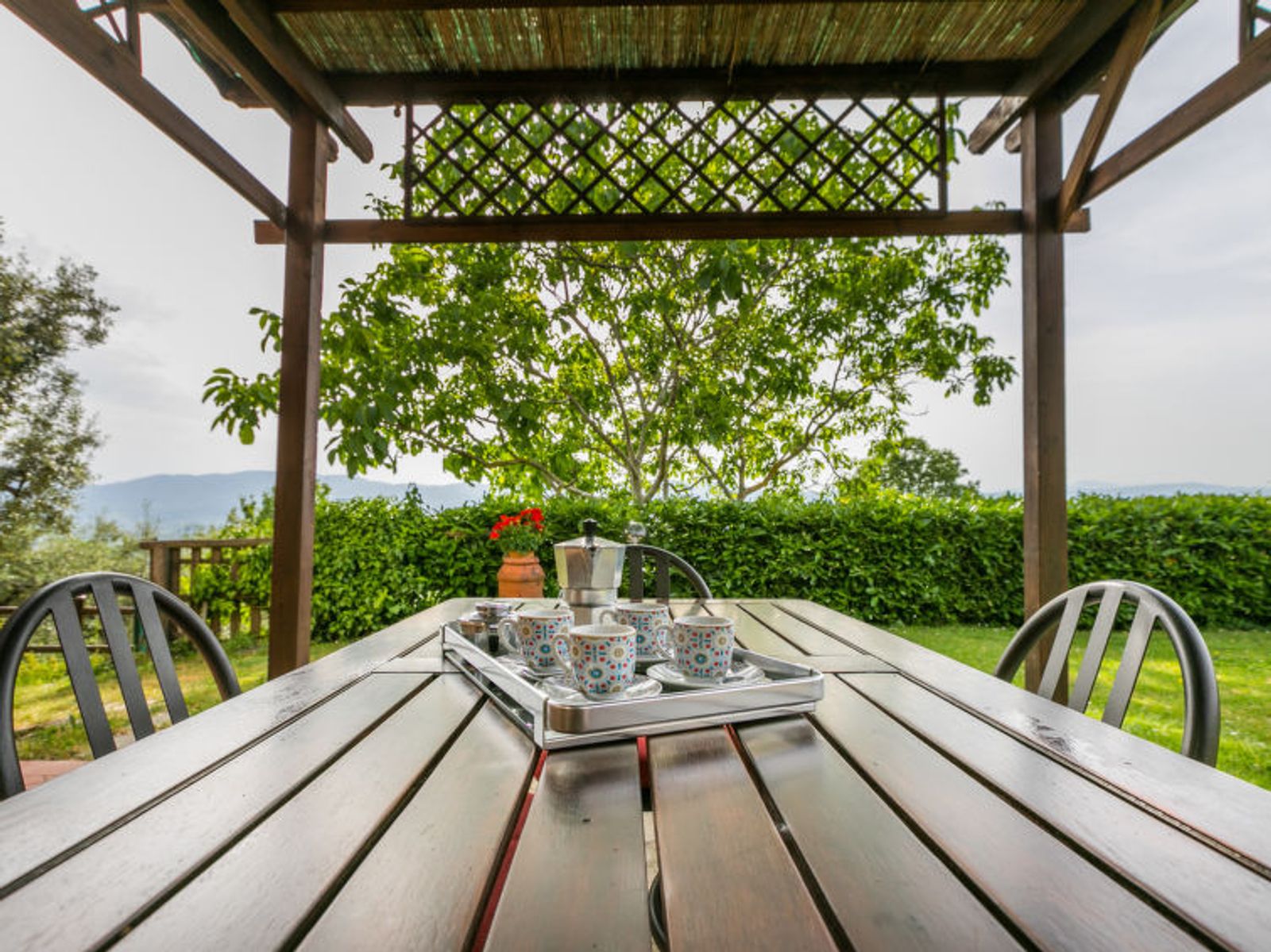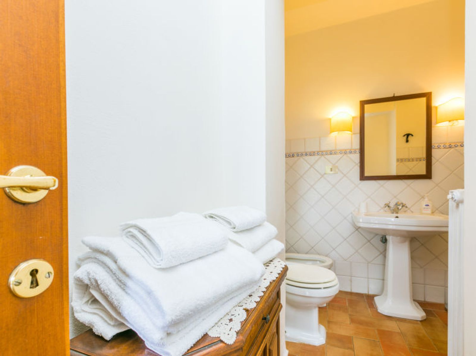 Podere Berrettino is divided by two property units, one of which the owners live. Our marketing also includes the possibility of being able to book the entire house for ten people with private use of the pool (our reference IT5262.866.1). Country house "Podere Berrettino", 450 m a.s.l.. 2 apartments in the property. Above Reggello 2 km from the centre of Reggello, 30 km from the centre of Firenze, 35 km from the centre of Arezzo, in a sunny, elevated position, in the countryside. For shared use: property 1 ha, natural garden, swimming pool (5 x 10 m, depth 150 cm, seasonal availability: 27.Apr. - 28.Sep.). Outdoor shower, pergola, garden furniture, barbecue, children's playground. In the complex: WiFi, washing machine (for shared use), heating to be paid on the spot, heating available only from 01.Nov. - 07.Apr.. Parking at the house. Shop, supermarket 500 m, bus stop 500 m, railway station "Figline Valdarno" 10 km, bathing lake "Lago di Bilancino" 70 km. Tennis 1 km, riding stable 1 km. Nearby attractions: Castelfranco di Sopra 12 km, Vallombrosa 13 km, Greve in Chianti 30 km, Gaiole in Chianti 36 km, Panzano in Chianti 38 km. Please note: car recommended. Suitable for families. The owner lives on the same property.