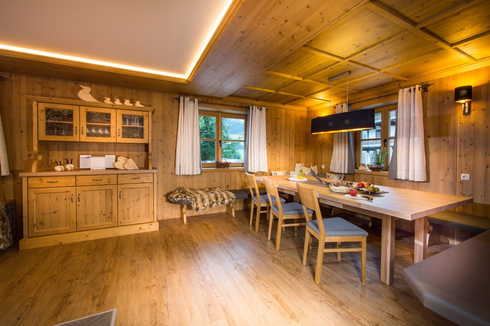 In the brand new, sunny Bachgut Jagdhaus Chalet, a luxurious cabin holiday in Saalbach Hinterglemm awaits you with a stunning view of surrounding mountains. The traditional hunting lodge was lovingly converted into an exclusive chalet and can accommodate up to twelve people. Here, classic elegance meets expansive modernity, generous dimensions meet playful details - and with direct access to numerous sports and leisure activities in the Saalbach-Hinterglemm region. For Bachgut Jagdhaus Chalet, local, hand-chopped larch wood was used to decorate the exterior facade. Inside, old wood and local spruce ensure a sense of well-being. After a ten-minute walk you can reach the center of Saalbach-Hinterglemm. There are numerous cafes, restaurants and shopping opportunities there. The next après-ski bar and the next inn are a five-minute away. The Bachgut Jagdhaus Chalet is located directly on the ski slopes of the Skicircus Saalbach-Hinterglemm. A guarantee for unlimited skiing fun. Long hikes can also start directly from the chalet. The Bachgut-Jagdhaus-Chalet can be reached by car all year round. Parking spaces are available directly at the chalet. Pets are welcome.