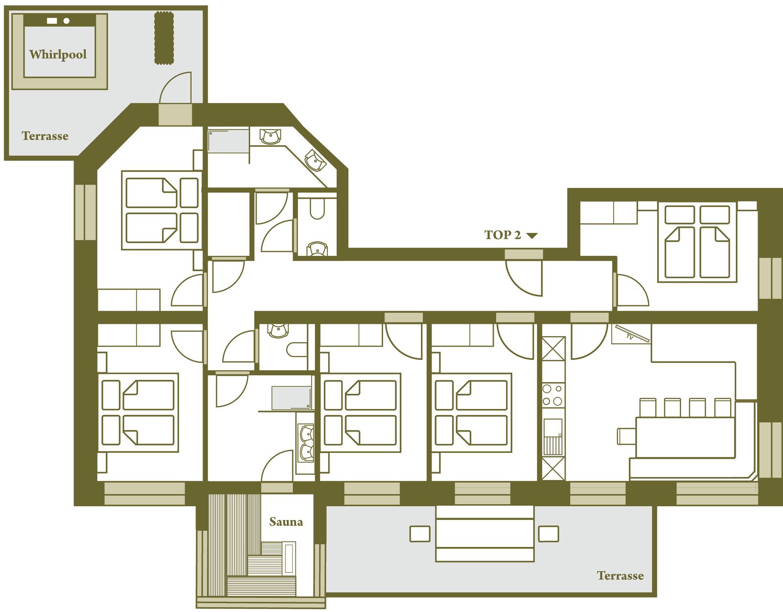 - living area of 120m² for 10 persons