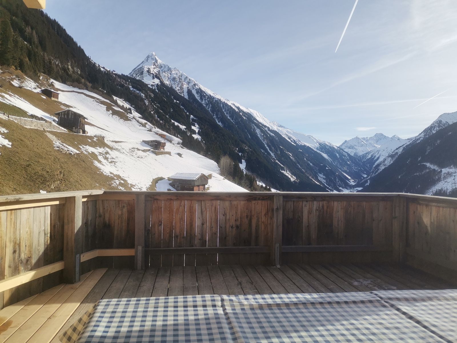 The rustic Brandberg farmhouse is located high above the Zillertal in a sunny location with a breathtaking view of the surrounding mountains. The rustic atmosphere of the farmhouse invites you to linger and relax in the middle of untouched nature. Surrounded by the wonderful mountains of the Zillergrund, the Brandberg farmhouse offers unique views. The Zillergrund in the Zillertal is the easternmost of the four side valleys. It is around 25 kilometers long and extends from the Austrian-Italian border to Mayrhofen. The town center of Mayrhofen is approx. 10 kilometers away from the farmhouse. Here you will find grocery stores as well as restaurants and cafes. The down-to-earth Thanner inn is only one kilometer away from the house. The Bauernhaus Brandberg can be reached by car all year round. The owner lives on the farm next to the farmhouse and is happy to help and advise you during your cabin holiday. There are three parking spaces directly at the farmhouse. Pets are welcome.