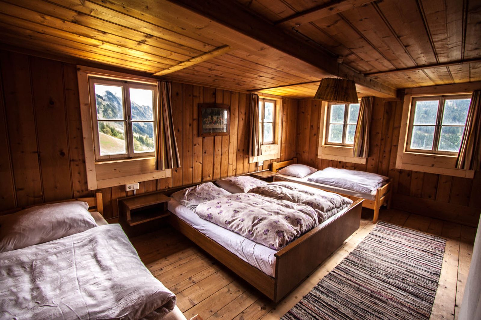 - 1 bedroom with two single beds and a double bed