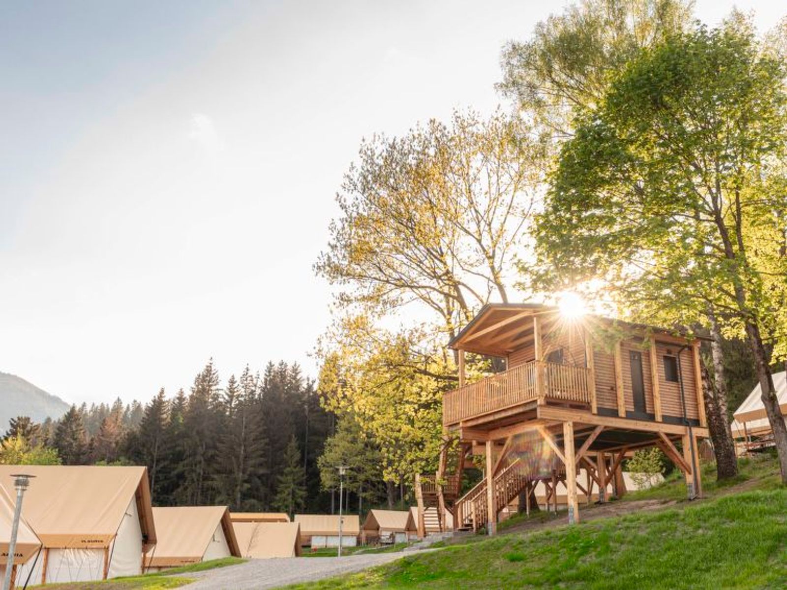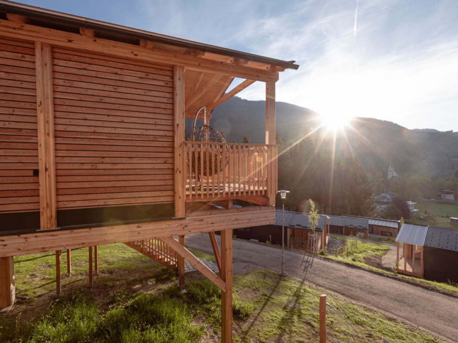 Kötschach-Mauten: Car free modern resort "Chalets/Glamping Nassfeld by AlpsR.", 700 m a.s.l.. 500 m from the centre, in a sunny position on a slope, directly by the skiing area. For shared use: children's playground. In the complex: reception, kiosk. Parking. E-charging station. Supermarket 850 m. Golf course (18 hole) 20 km, skisport facilities, ski rental 200 m. Well-known ski regions can easily be reached: Nassfeld 25 km. Well-known lakes can easily be reached: Pressegger See. Hiking paths: Nassfeld-Pressegger See. The holiday properties may differ in living space, floorplan, equipment and furnishing.