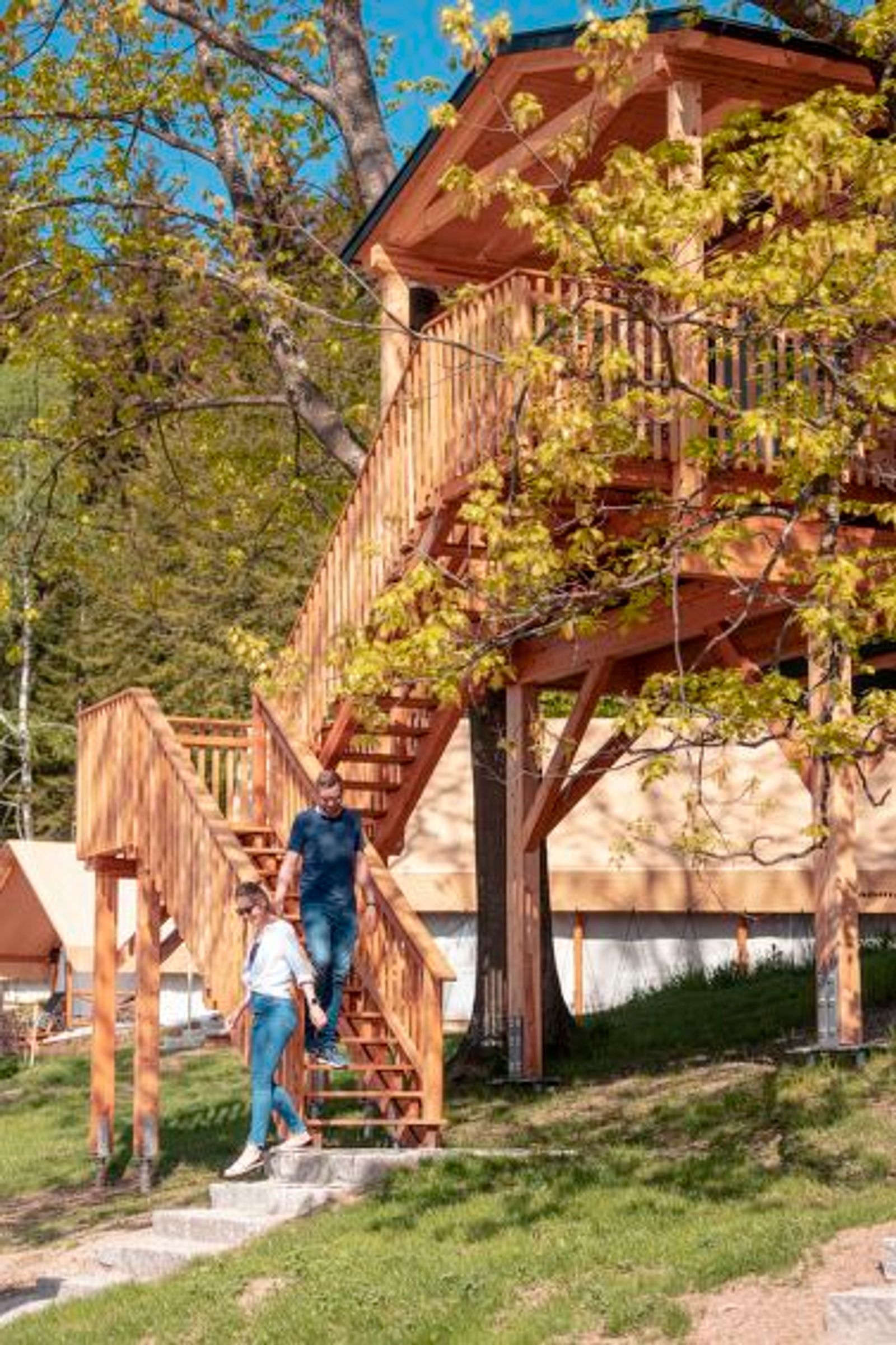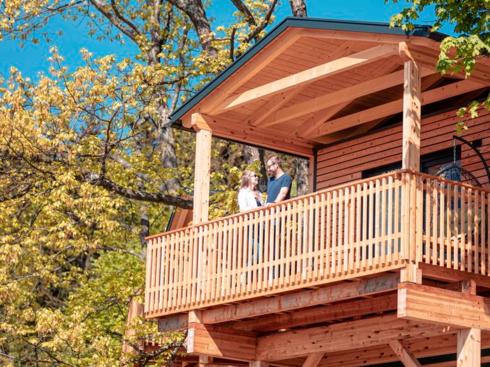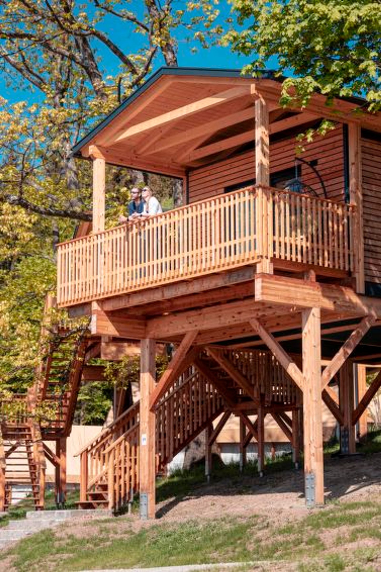 "Premium Baumhaus mit 1 Schlafzimmer", 2-room house 23 m2. Bright, tasteful and cosy furnishings: living/dining room with dining table, satellite TV and flat screen. 1 double bedroom. Open kitchen (oven, dishwasher, 4 ceramic glass hob hotplates, toaster, kettle, microwave, electric coffee machine). Shower/WC. Heating. Small terrace. Terrace furniture. Very beautiful view of the mountains and the resort. Facilities: Internet (WiFi, free). Please note: non-smokers only. The property is one of a type of property or apartment.
