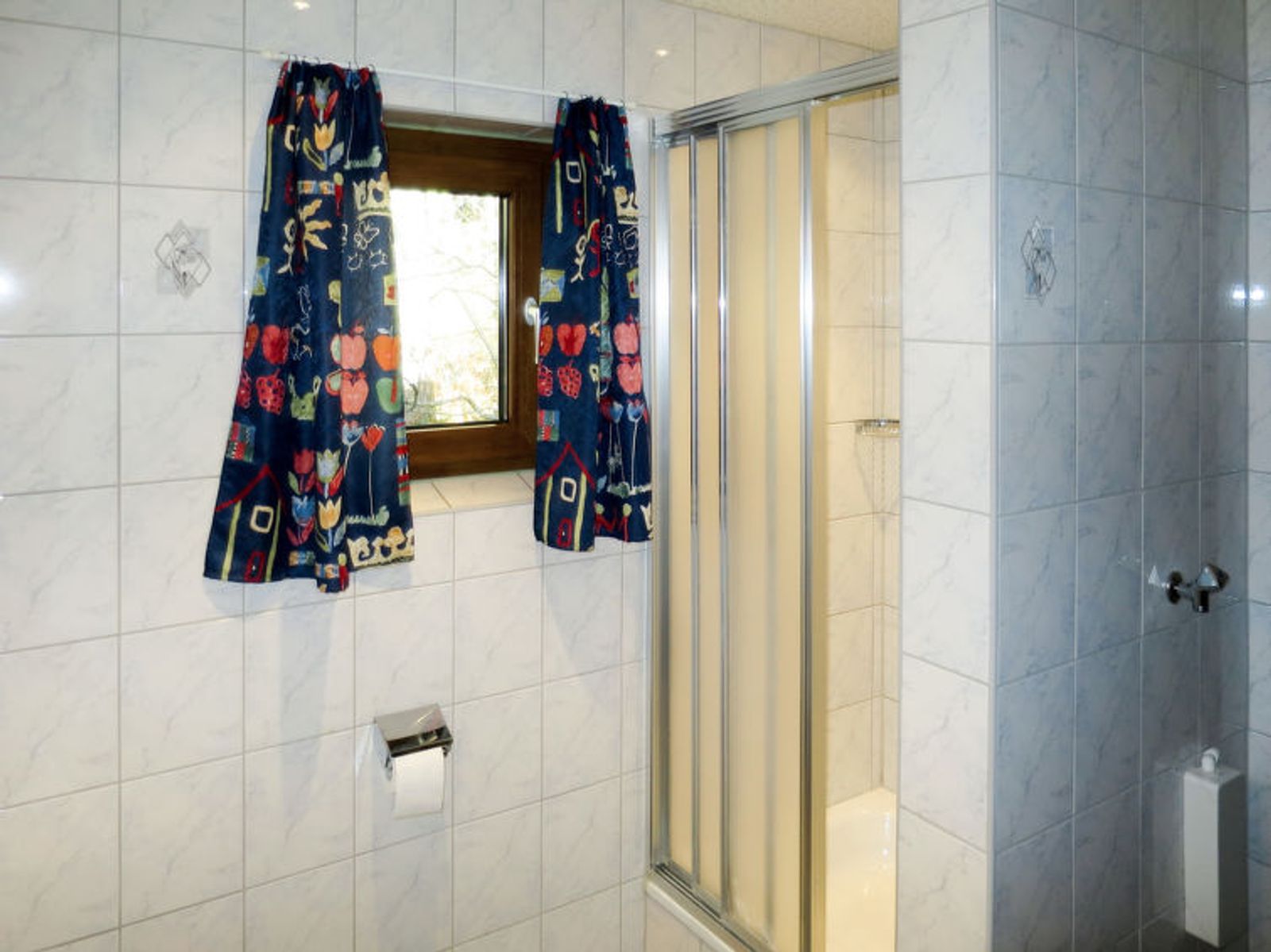 "Waldruh", 4-room house 120 m2 on 2 levels. Tasteful and wooden furniture furnishings: living/dining room with dining table and satellite TV. 1 double bedroom. Open kitchen (oven, dishwasher, 4 ceramic glass hob hotplates, toaster, kettle, microwave, electric coffee machine). Bath/WC, Sauna. Electric heating. Upper floor: 1 double bedroom. 1 room with 1 double bed. Open gallery with 1 sofabed. Exit to the balcony. Shower/WC. Oil heating. Carpet. Large balcony, terrace roofed. Terrace furniture, barbecue (portable), deck chairs (2). Facilities: children's high chair, baby cot. Internet (WiFi, free). Please note: non-smoking house. Maximum 2 pets/ dogs allowed. Instead of an enclosed bedroom, some sleeping areas are located in an open-plan area (gallery, alcove, etc.).