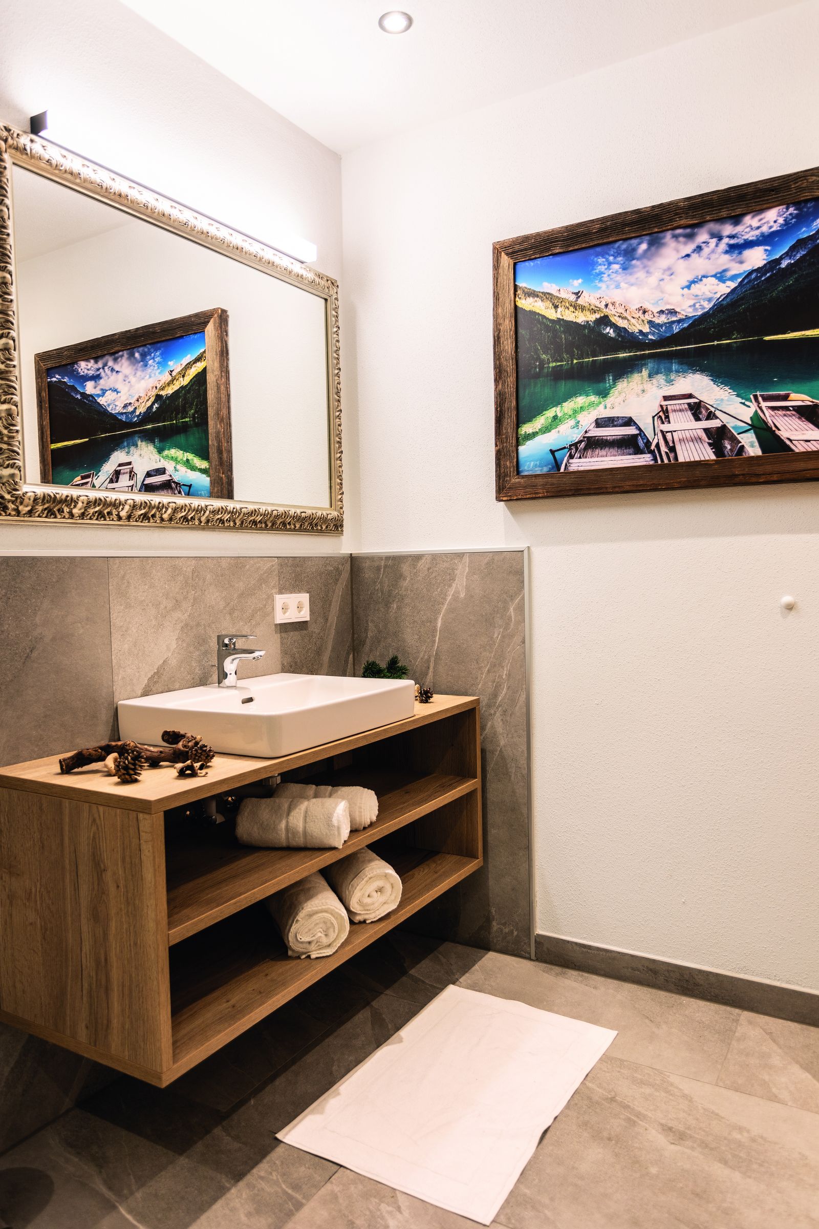 Sustainability paired with the highest level of comfort - this is how the Bergseegut Appartment was created. The Bergseegut Appartement has its own mountain spring. As the crystal clear water flows, feeds the lake and also supplies the apartment with electricity. Only wood from Austrian forests was used in the construction and furnishing of the apartment. Enjoy relaxing moments in the sauna with panoramic views. In summer you can cool off in the swimming pond as you have direct access from your own terrace. The town center of Wagrain, where you will find numerous cafés, bars and restaurants, is approx. 5 km away. The Bergseegut Appartment can be reached by car all year round. Free parking and a charging station for electric cars are available.
