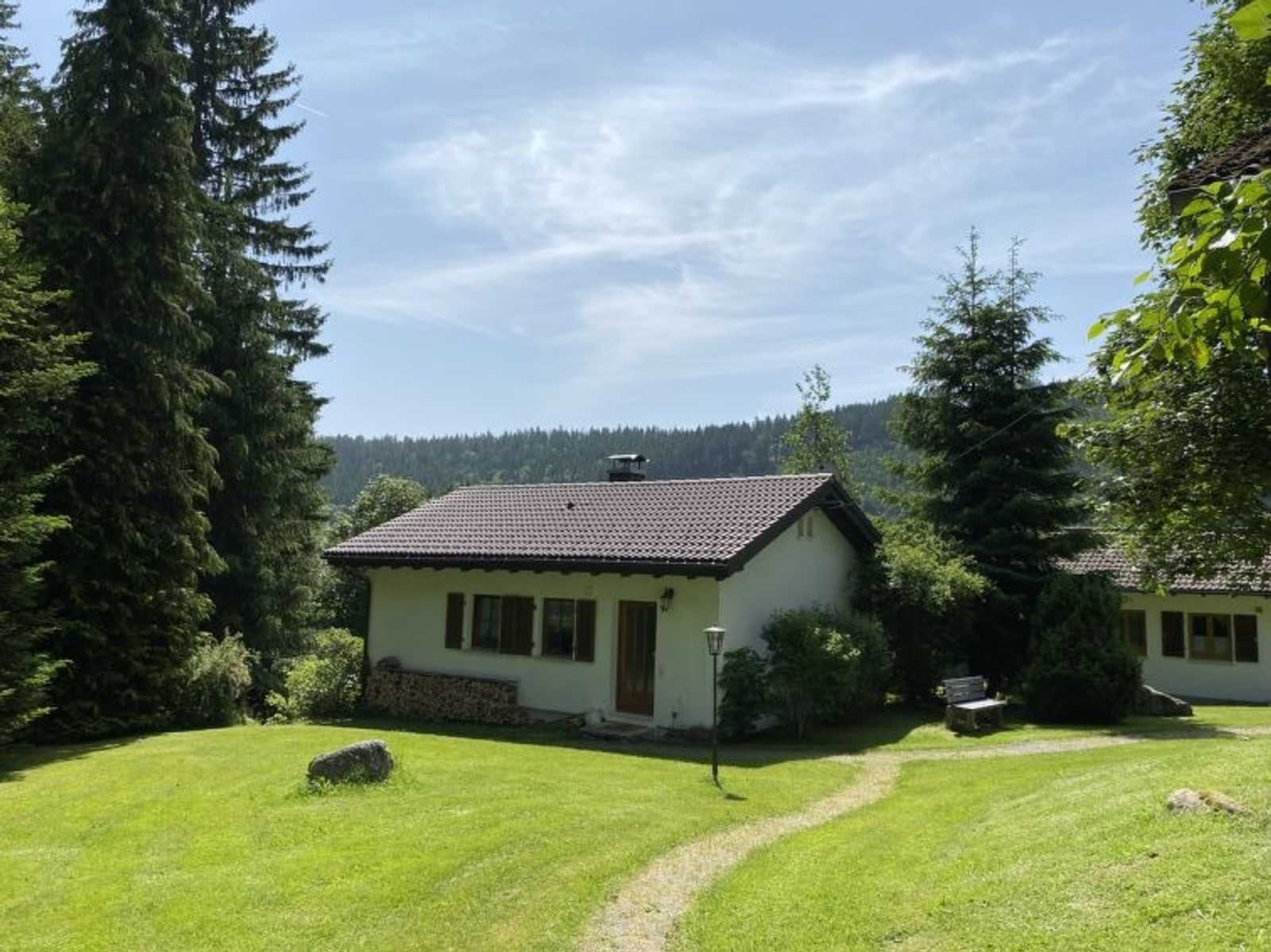 Falkau Feldberg: Cosy single-family house "Black Forest Hideaway", detached. 7 houses in the resort. In the district of Falkau 3 km from the centre of Altglashütten, on the outskirts, 10 km from the centre of Feldberg, 13 km from the centre of Titisee-Neustadt, in a quiet, sunny position, 3 m from the edge of the forest, 4 km from the lake, in a cul-de-sac. For shared use: property 6'000 m2 with meadow. Table tennis, boccia, fireplace, children's playground (slide, swing, sandbox). In the house: sauna. 50 m footpath to the house. Shop 4 km, grocery 4 km, restaurant 500 m, bakery 2 km, café 4 km, bus stop "Falkau Abzw Haslachstrasse" 500 m, railway station "Falkau- Altglashütten" 2 km, bathing lake "Windgfällweiher" 4 km. Nearby attractions: Badeparadies Titisee 8 km, Freiburg 40 km. Well-known ski regions can easily be reached: Feldberg 10 km. Well-known lakes can easily be reached: Schluchsee 10 km, Titisee 8 km. Hiking paths: Südschwarzwald 10 m. Please note: car recommended.