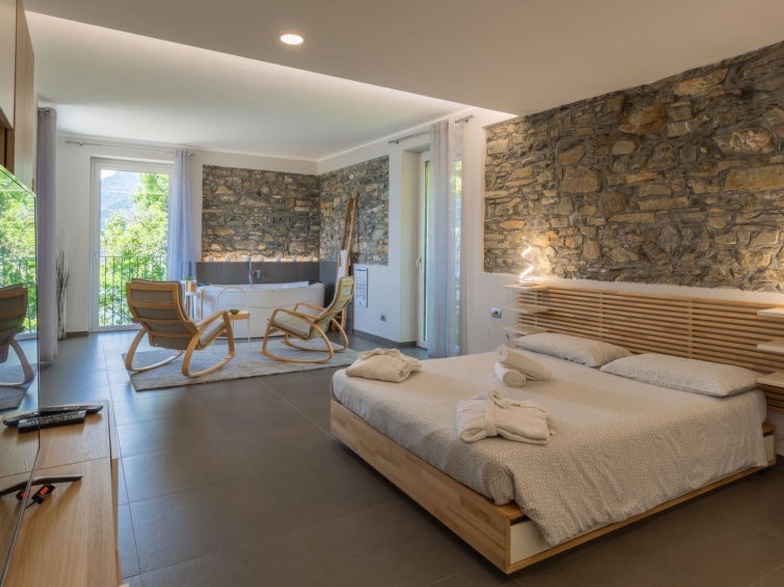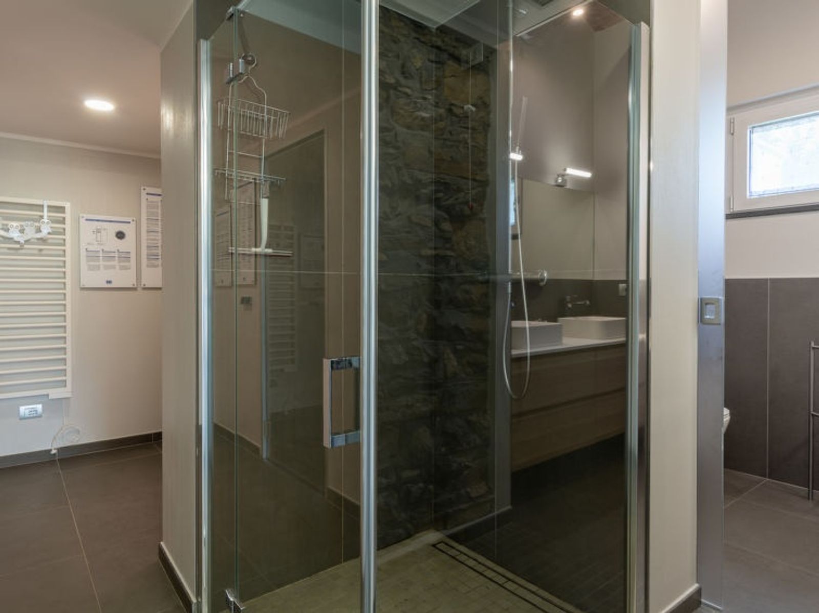 Comfortable house "Lacum Lux Resort", 300 m a.s.l., built in 2018. Above Varenna 3.4 km from the centre of Varenna, 24 km from the centre of Lecco, 55 km from the centre of Como, in a secluded, elevated position on a slope, along the wooded area, 1 km from the lake, in the countryside. Private: property 300 m2, terraced garden (fenced), meadow, swimming pool angular (6 x 3 m, seasonal availability: 01.May. - 01.Oct.). Patio, garden furniture. In the house: sauna, steam room. 1.5 km long bumpy, narrow motor access (150 m via unmade road). 150 m footpath to the house. Public parking 150 m on the road. Shop 3.4 km, supermarket 3 km, bus stop 2.8 km, pebble beach "Riva Gittana" 1 km, shingle beach "Bau Bau Beach" 4.5 km. Marina 3.4 km. Please note: 1st floor is closed and not occupied.