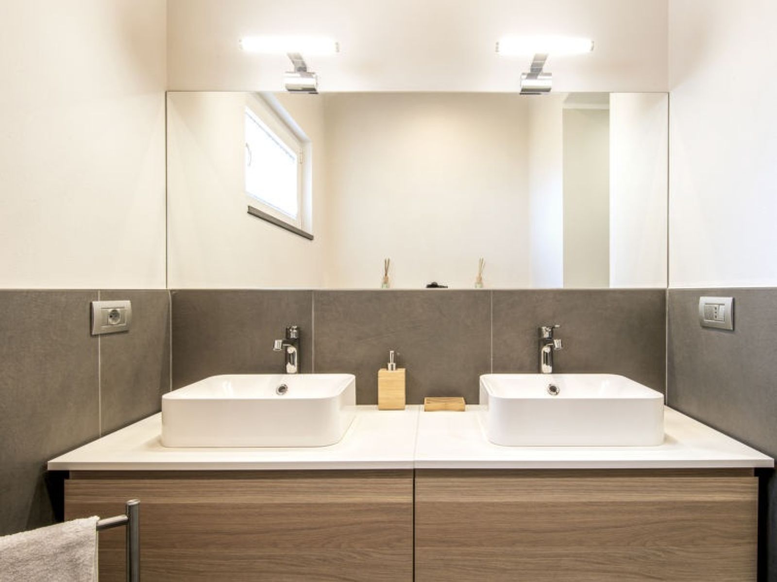 2-room house 150 m2. Bright, modern and tasteful furnishings: living/sleeping room with 1 double sofabed (160 cm), satellite TV. Exit to the garden, to the terrace. 1 double bedroom with panoramic window with hydro massage bath and heating stove. Open kitchen (oven, dishwasher, 2 induction hot plates, toaster, kettle, microwave, freezer, electric coffee machine) with dining table (160 cm). Shower/WC. Electric heating, solar energy heating, air-conditioning. Terrace. Terrace furniture, barbecue, deck chairs (4). Marvellous view of the lake and the mountains. Facilities: washing machine, hair dryer. Please note: non-smokers only. Maximum 1 pet/ dog allowed. Access to the house possible up to approx. 150 m. Luggage transport is provided by the owner from here on arrival and departure days. IT097067B4BJPPK88V