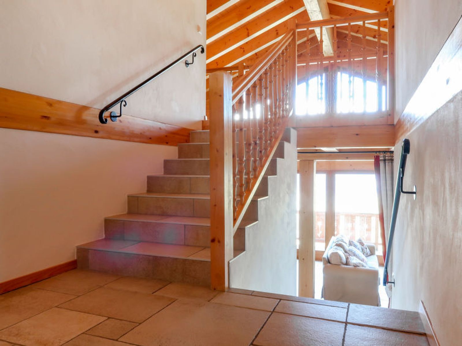 "Altamira", 5-room chalet 240 m2 on 3 levels. Spacious, comfortable and beautiful furnishings: living/dining room with open-hearth fireplace and cable TV. Exit to the balcony, north facing position and east facing position. Open kitchen (oven, dishwasher, 4 ceramic glass hob hotplates, toaster, kettle, microwave, freezer, electric coffee machine, Capsules for coffee machine (nespresso) extra, raclette grill, fondue Set (chinoise, cheese)). Exit to the terrace, west facing position. Heating. On the lower ground floor: 2 rooms, each room with 1 double bed (2 x 90 cm, length 200 cm). 1 room with 2 beds (90 cm, length 200 cm). Shower/WC. Upper floor: entrance hall. Open gallery with sloping ceilings. 1 room with 1 double bed (2 x 90 cm, length 200 cm), shower/WC. Sep. WC. Balcony, north facing position and, east facing position, large terrace, west facing position. Terrace furniture, barbecue. View of the mountains. Facilities: washing machine, dryer, children's high chair, baby cot, hair dryer. Internet (WiFi, free). Parking (2 cars). Please note: non-smoking house.