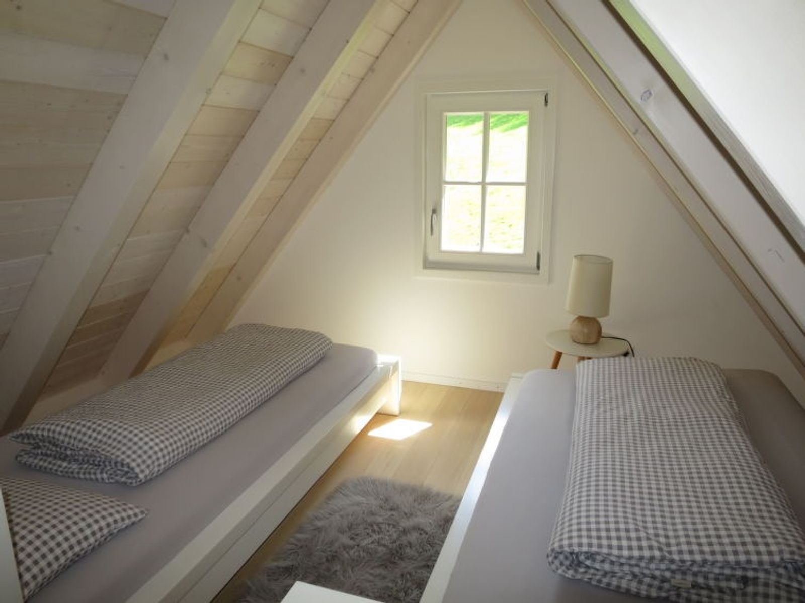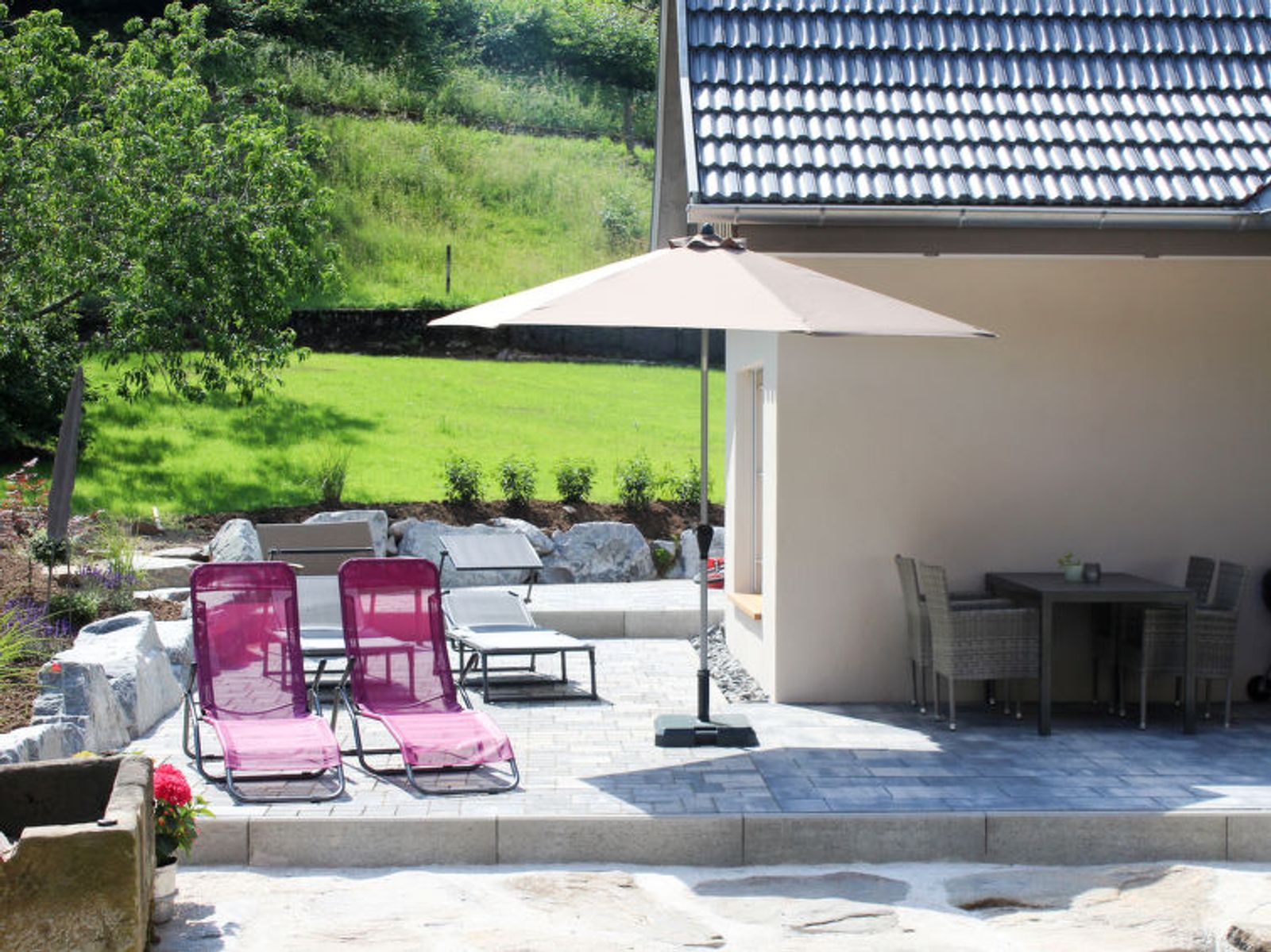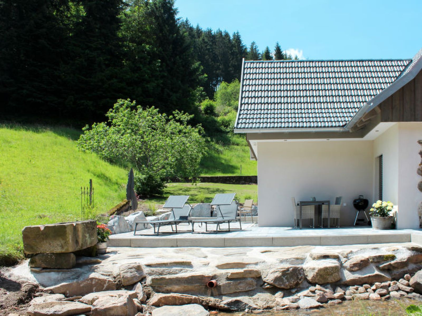 "Haus am Bächle", 3-room house 70 m2 on 2 levels. Spacious and bright, very beautiful and tasteful furnishings: living/dining room with satellite TV and air conditioning. Exit to the terrace. Open kitchen (oven, dishwasher, 4 ceramic glass hob hotplates, toaster, kettle, electric coffee machine). Shower/WC. Heating not available in all rooms. Upper floor: open walk-through room with sloping ceilings with 1 double bed. 1 small room with sloping ceilings with 2 beds. Wooden floors. Terrace 15 m2 partly roofed, patio. Terrace furniture, barbecue (portable), deck chairs (4). Beautiful view of the garden and creek. Facilities: children's high chair, hair dryer. Internet (WiFi, free). Parking at the house. Please note: non-smoking house. Smoke alarm. The house on the Bächle has a history: before it was converted into a holiday home, it was used as a bakery and distillery. Info concerning the Carnival weekend (24/25 February 2026): Due to a carnival anniversary, traffic obstructions as well as increased pedestrian and vehicle traffic in the entire village and on the road passing the house are to be expected on 24/25 February 2026.