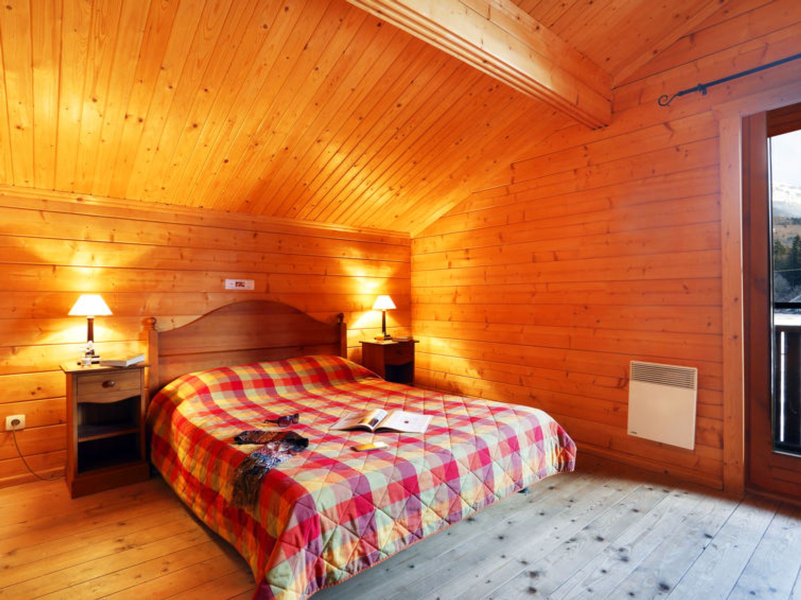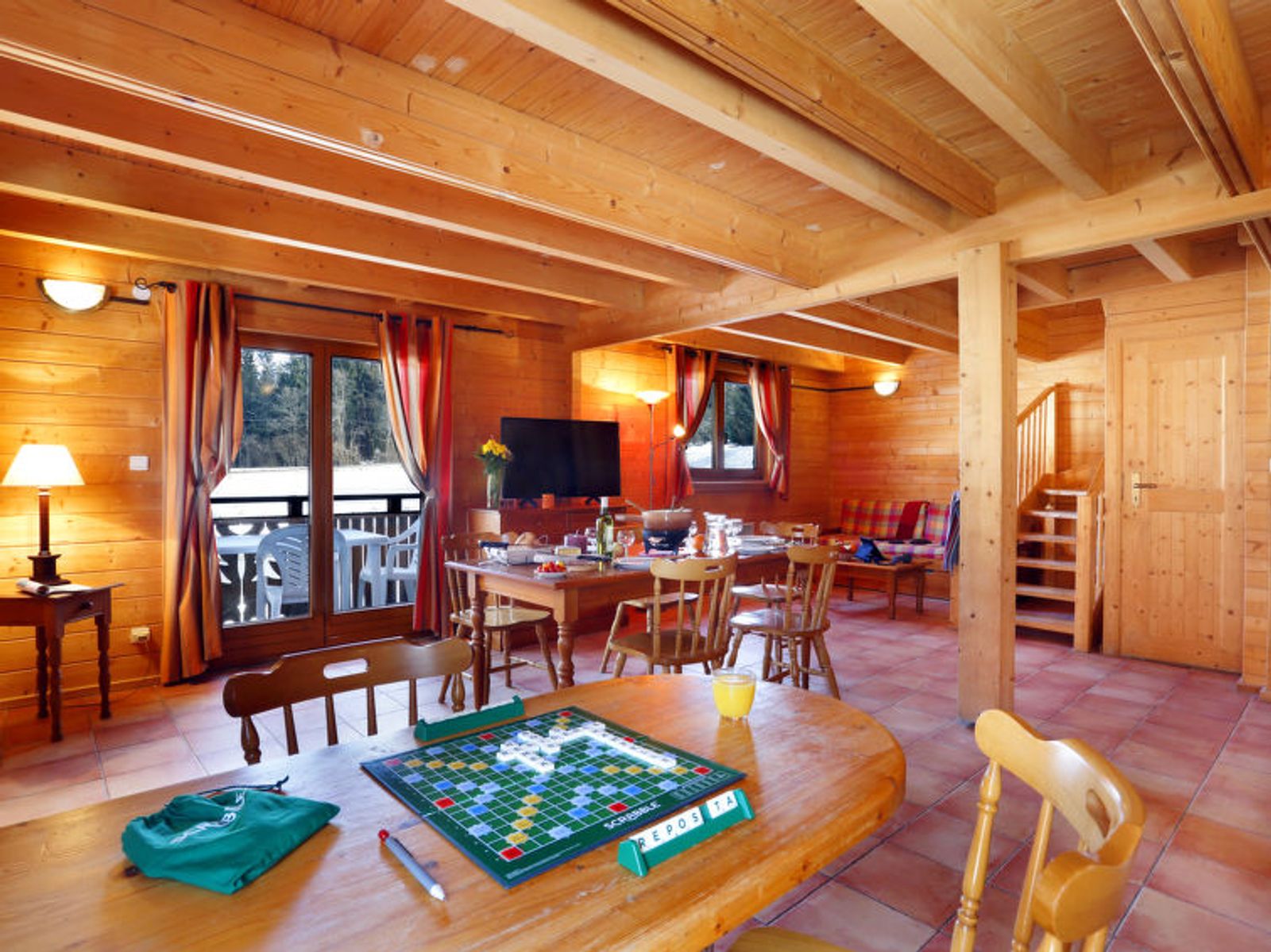"Bois de Champelle", 4-room house 72 m2 on 2 levels. Rustic and cosy furnishings: living/sleeping room with 1 sofabed, dining table, TV and hi-fi system. Exit to the balcony. Kitchenette (4 hot plates, dishwasher, toaster, kettle, microwave, electric coffee machine). Shower/WC. Upper floor: 2 rooms, each room with 2 beds. Exit to the balcony. 1 room with 1 french bed. Bath/WC. Electric heating. 2 small balconies. Balcony furniture. Facilities: children's high chair, baby cot. Internet (WiFi, extra). Parking (roofed, 1 car). Please note: non-smoking house. Maximum 1 pet/ dog allowed.